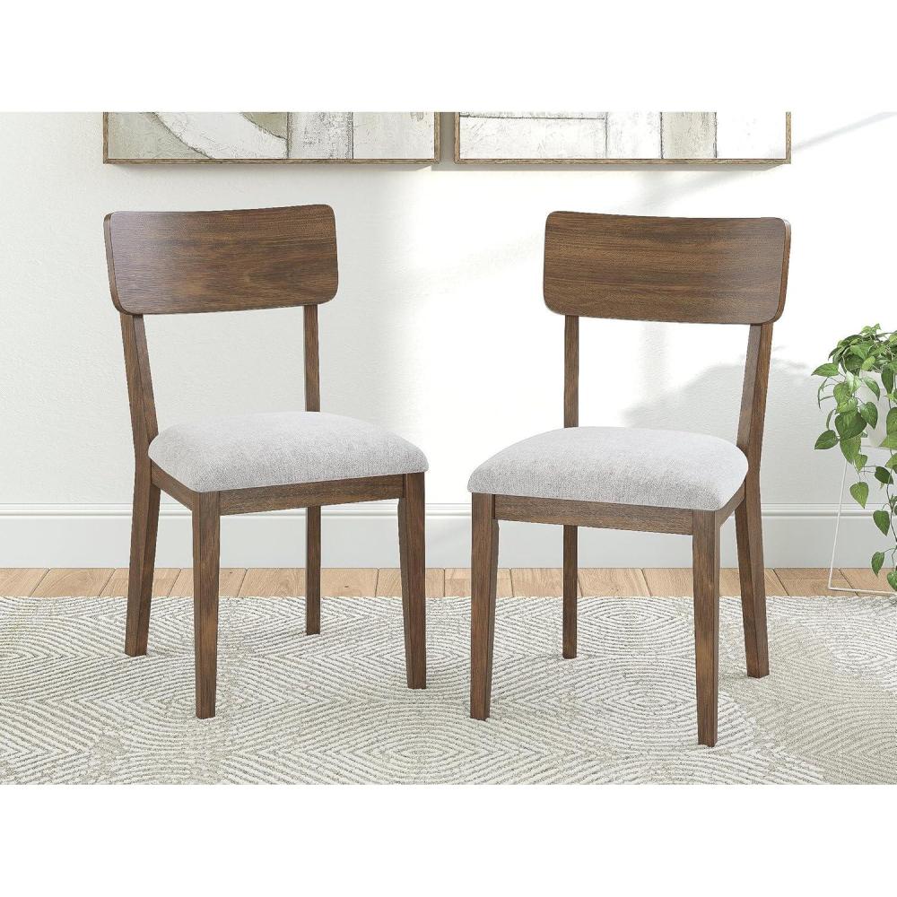 SET OF 2 DINING CHAIRS: A refreshed take on retro aesthetics, this chair set adds playful simplicity to your dining space. Complete with curved backrests and light gray cushions, a casual yet timeless finish on the frames creates visual contrast
