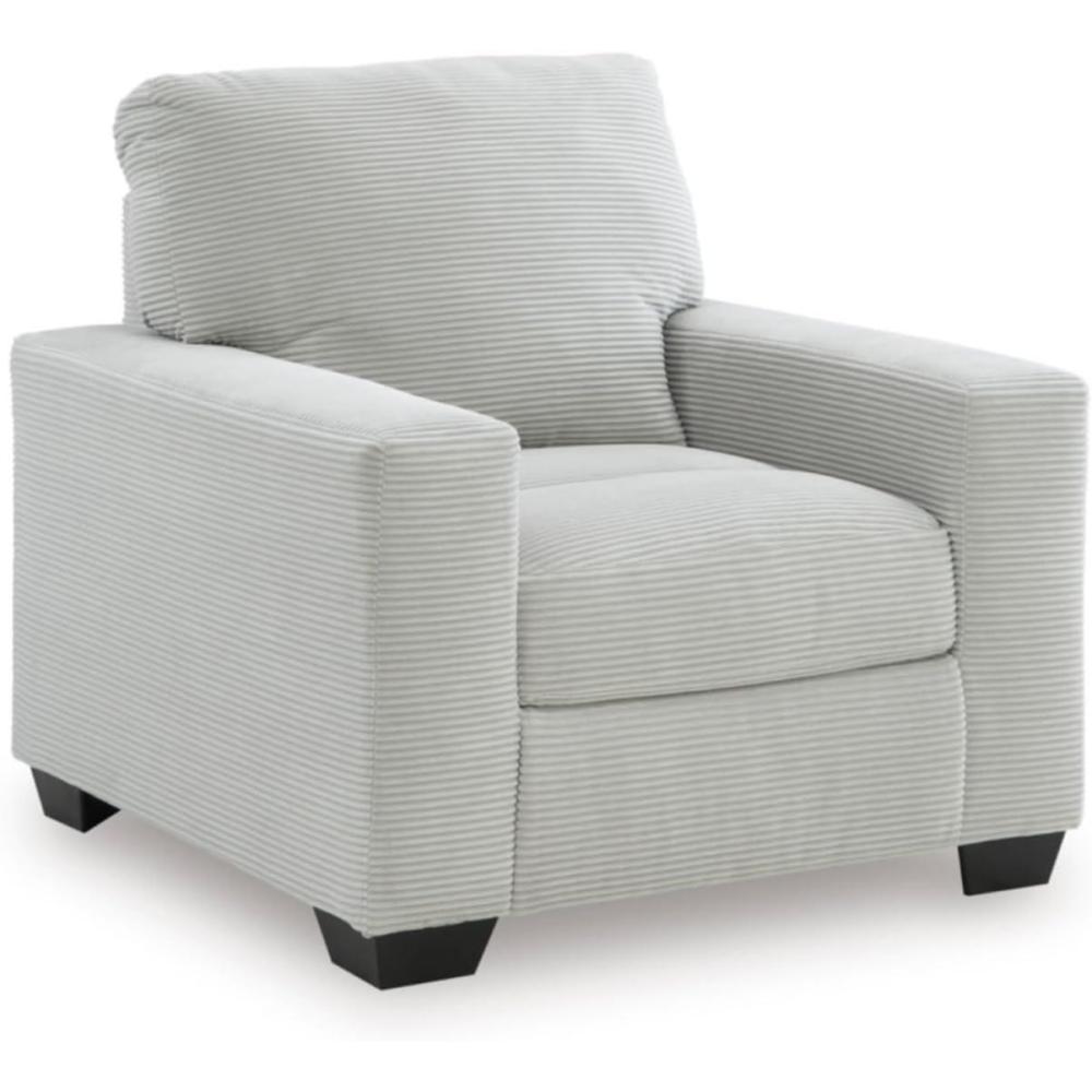 MODERN CHAIR: The crisp neutral hue and striking design details of this chair create a living room that expertly reflects your modern taste. For irresistibly cool textural appeal, the ultra-soft fabric is enhanced by a small-scale corded look