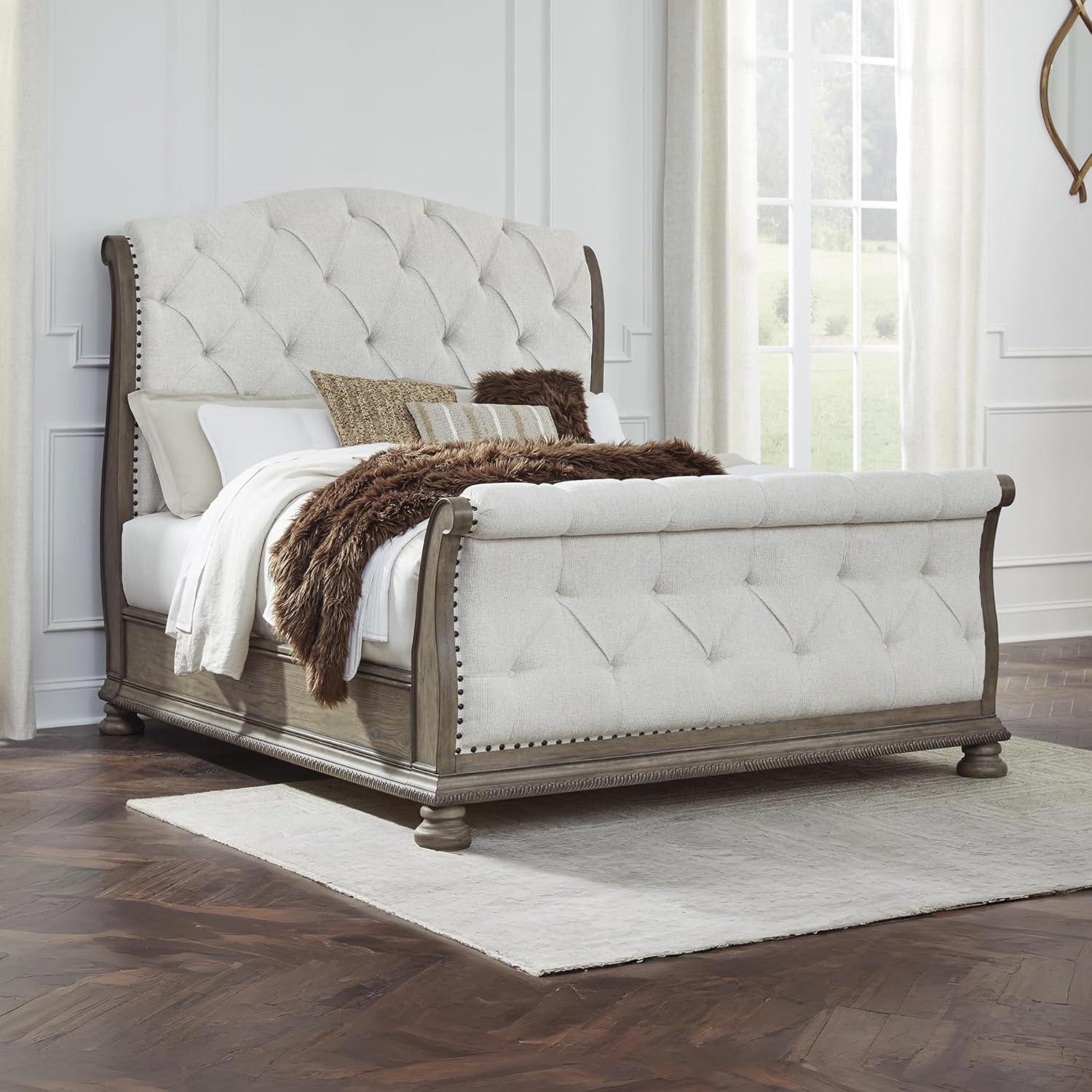 Merging traditional elegance with contemporary comfort, this nightstand takes your bedroom retreat to the next level. Serpentine curves, ash swirl veneer inlays on the top and a glazed antiqued-look finish radiate timeless sophistication. Drawers are packed with ample bedside storage possibilities. A convenient 110V power supply and USB charging add a modern touch to this stunningly refined piece.