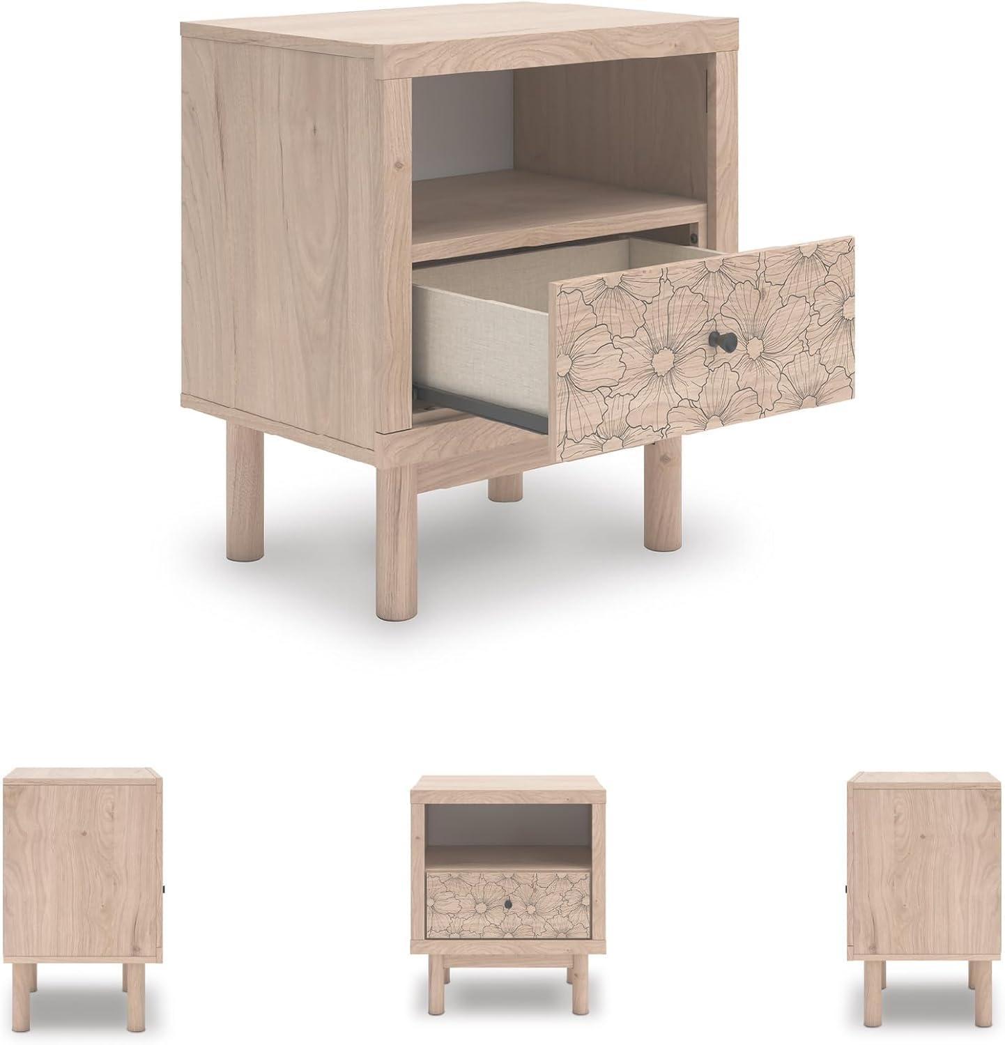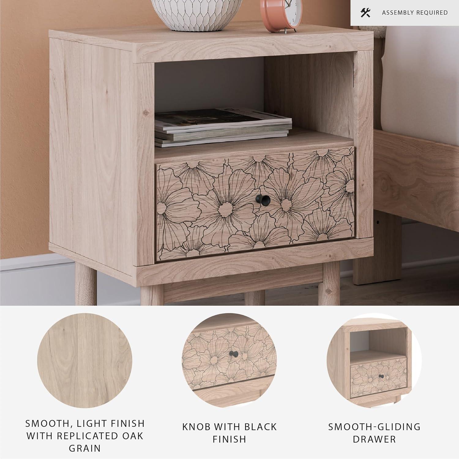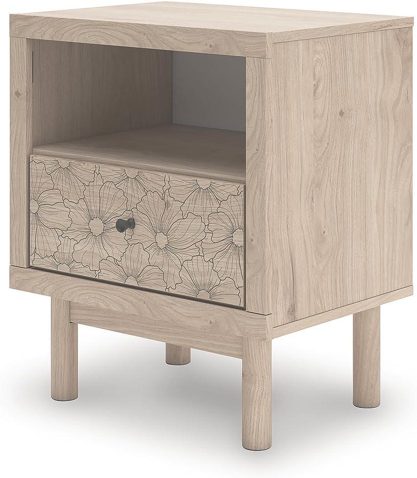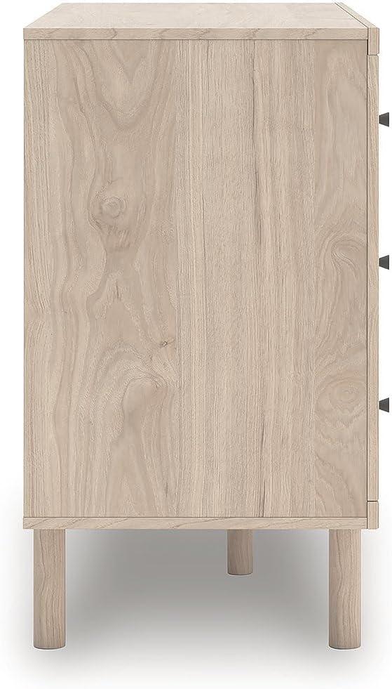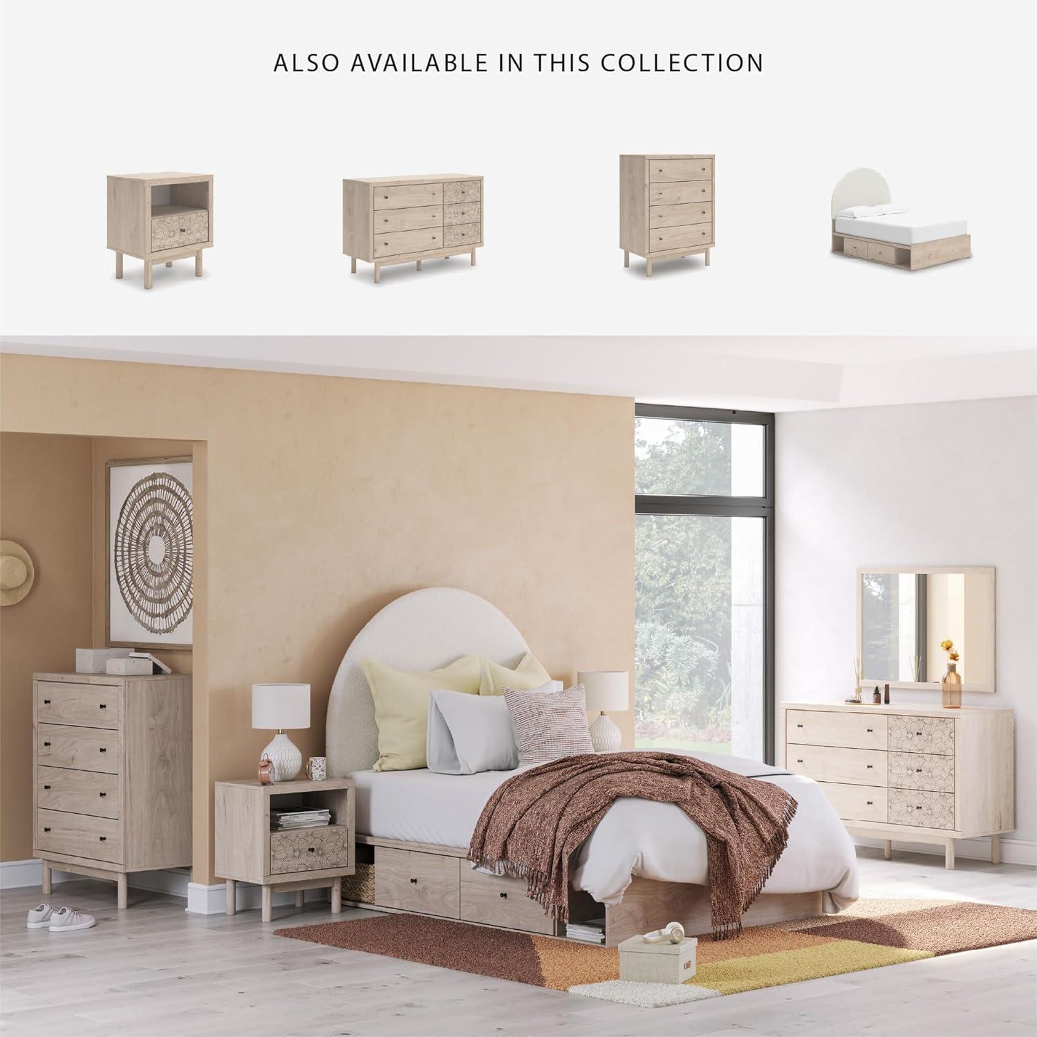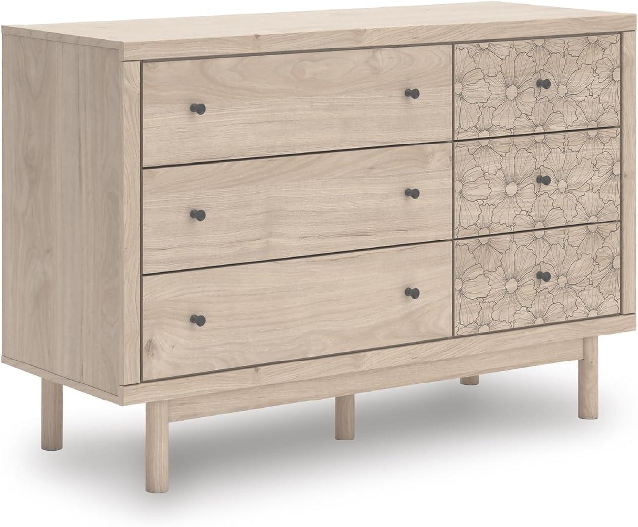 Signature Design by Ashley Birkmore Mid-Century Modern 6-Drawer Dresser with Floral Pattern, Easy Glide and Safety Stop for Bedroom, Light Brown(Tan)