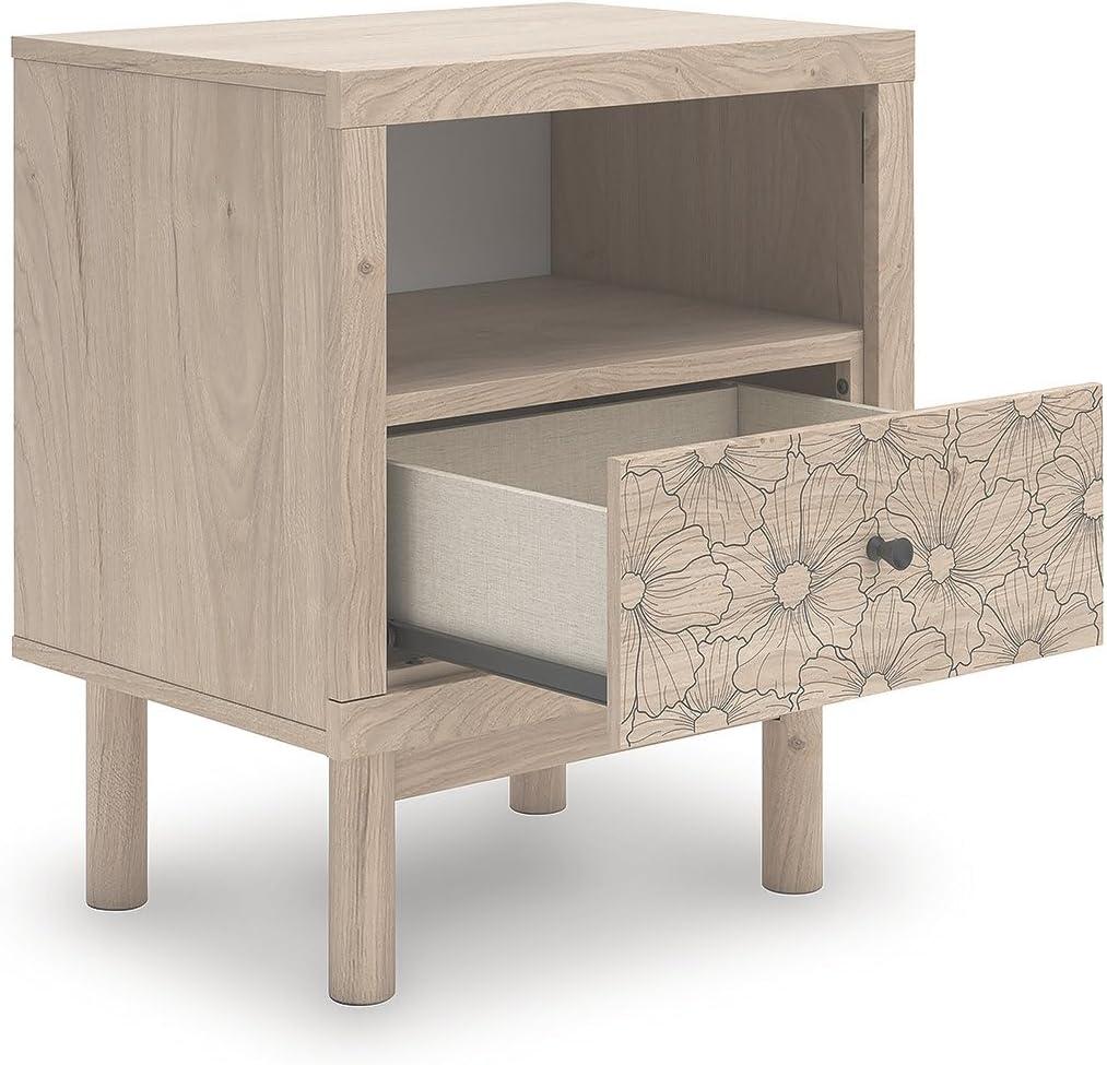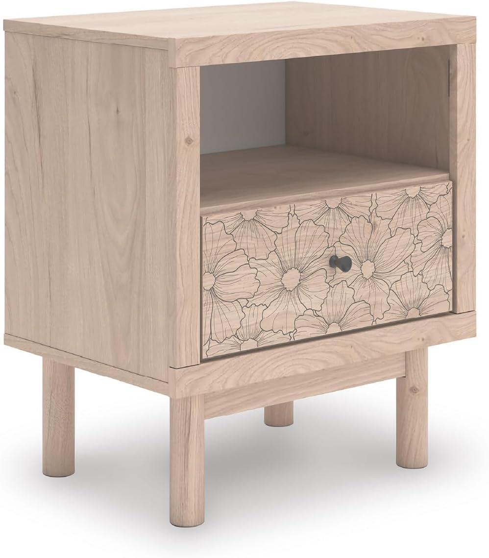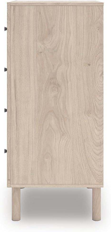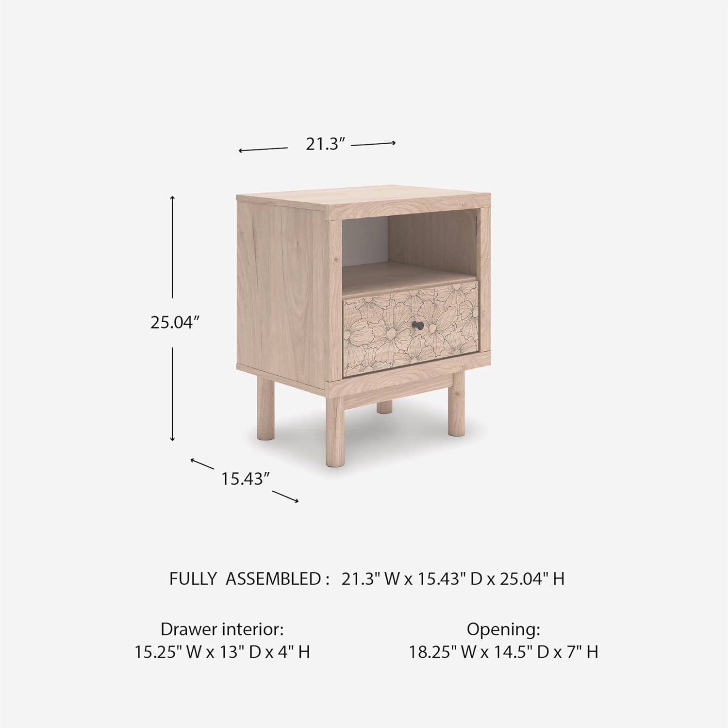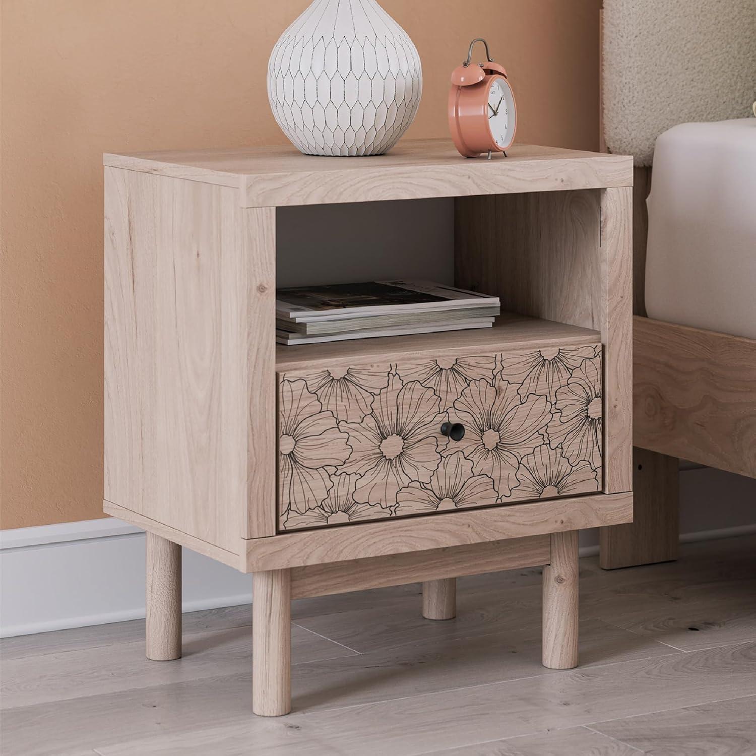 Signature Design by Ashley Birkmore Mid-Century Modern 6-Drawer Dresser with Floral Pattern, Easy Glide and Safety Stop for Bedroom, Light Brown(Tan)