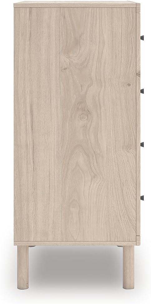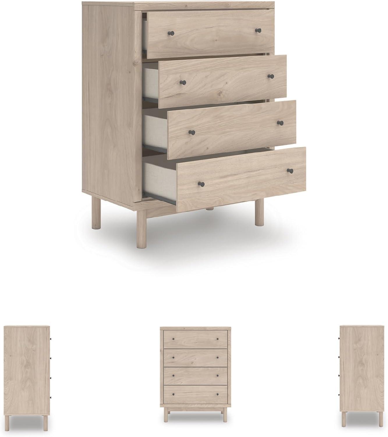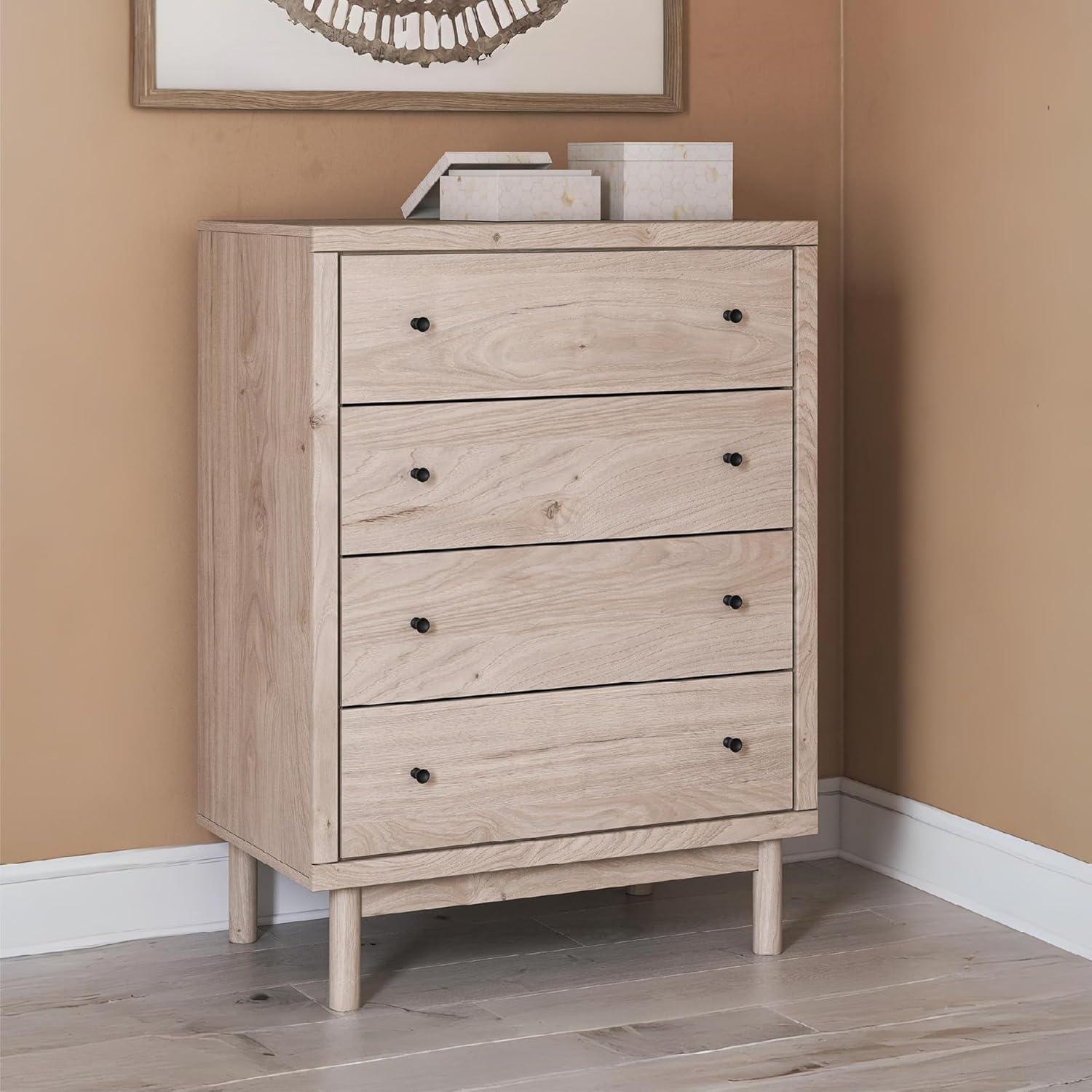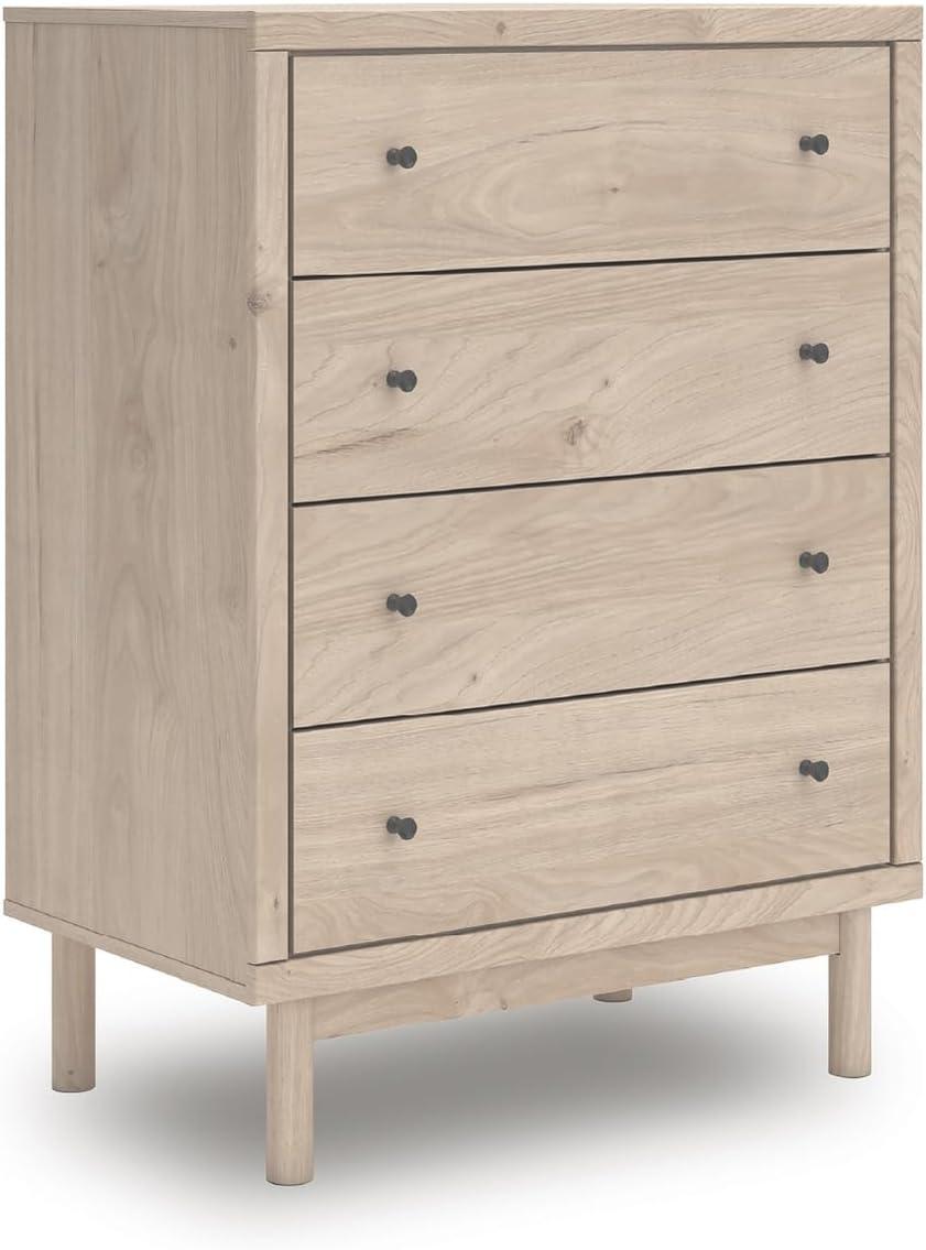 QUALITY CRAFTED: Made with engineered wood and decorative laminate. Smooth, light finish with replicated oak grain. Knobs with black finish. Smooth-gliding drawers lined with faux linen laminate for a clean, finished look