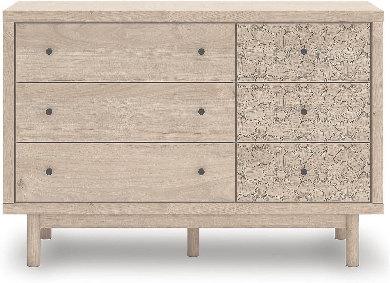 Looking for a dresser that's both playful and practical for your little one? This piece is just the ticket. Its charming design and light wood finish create a whimsical and inviting atmosphere. Drawers accented with a floral pattern add a free-spirited vibe and plenty of storage, so there's no excuse for a messy room.