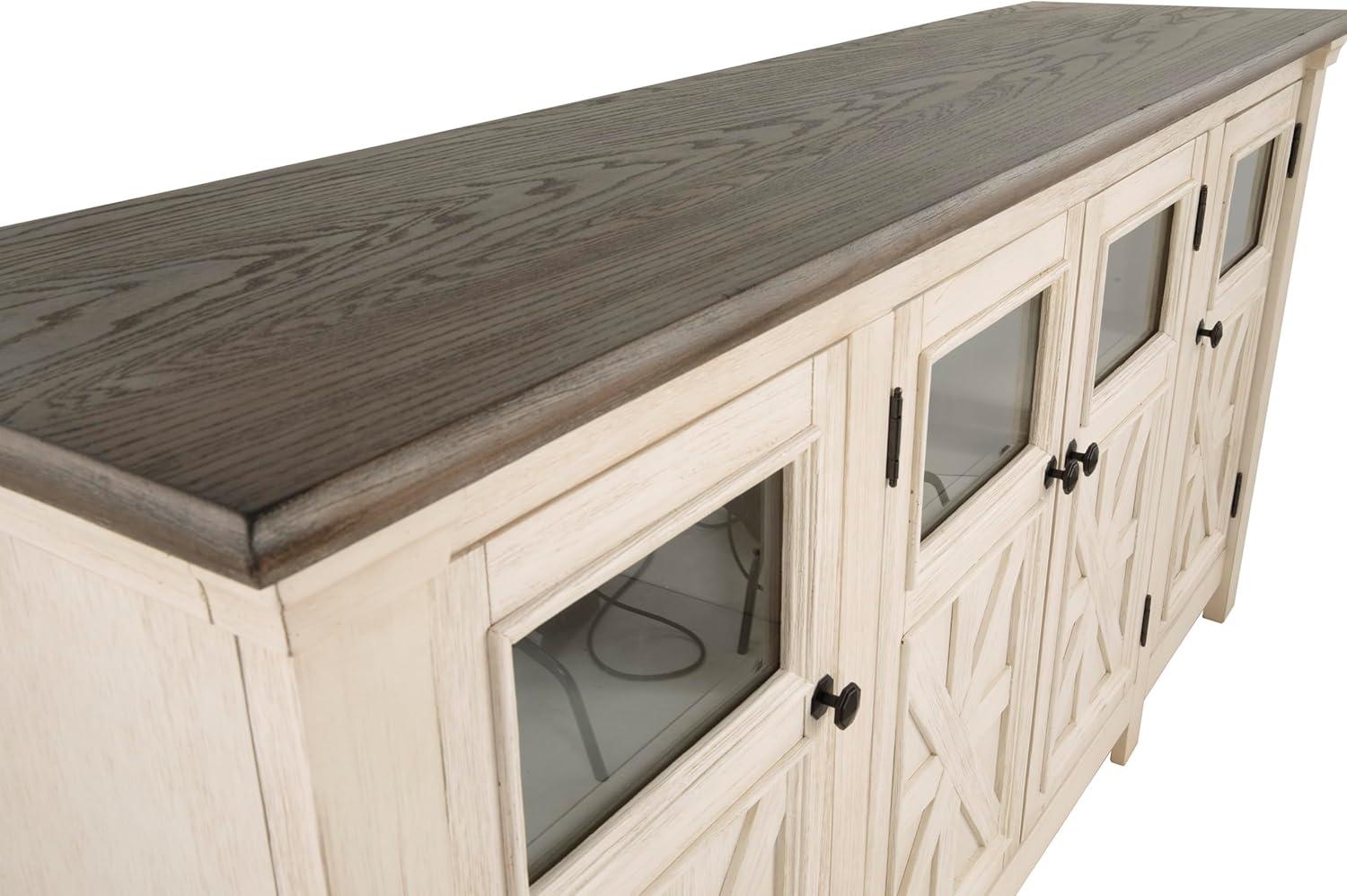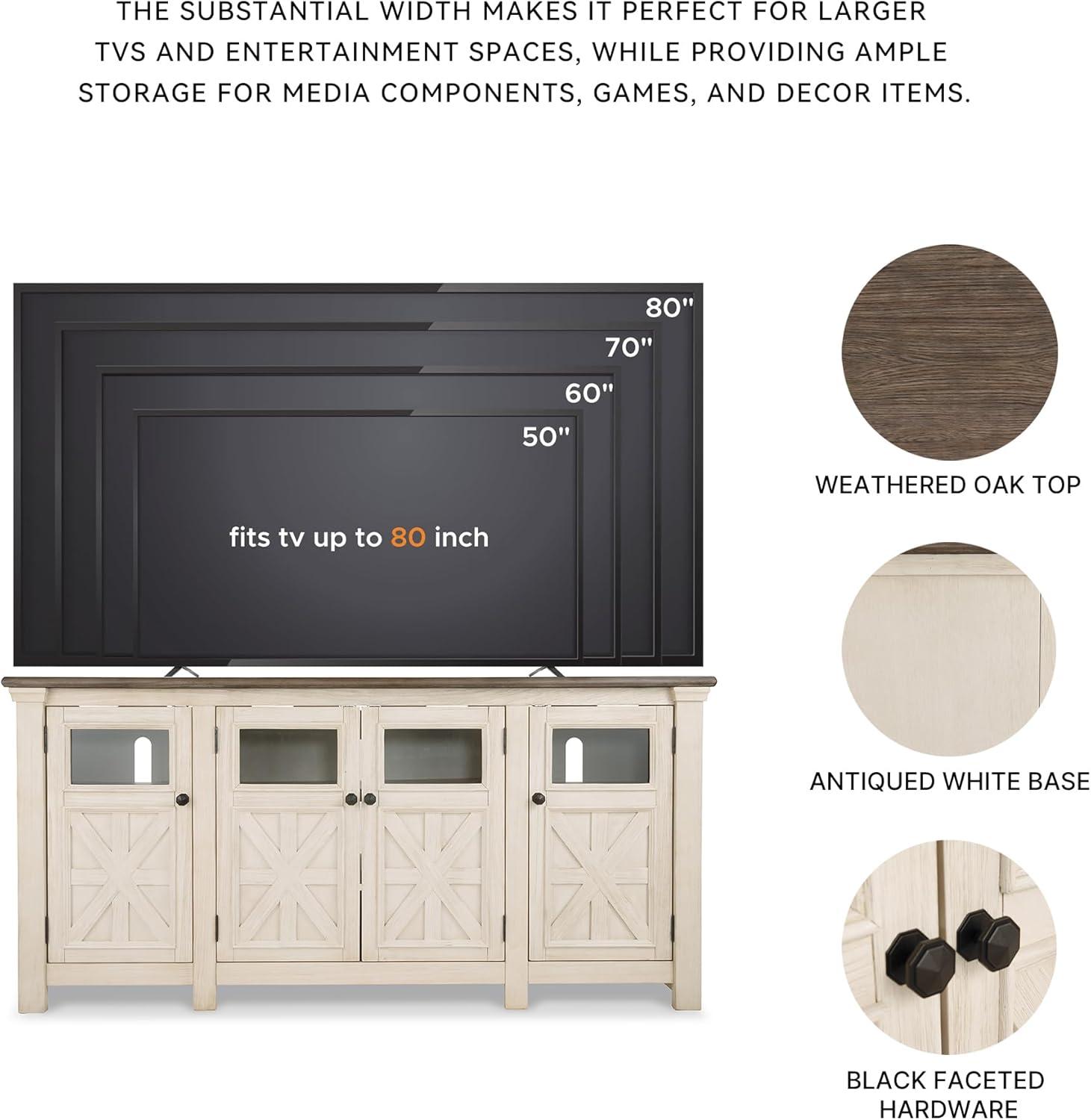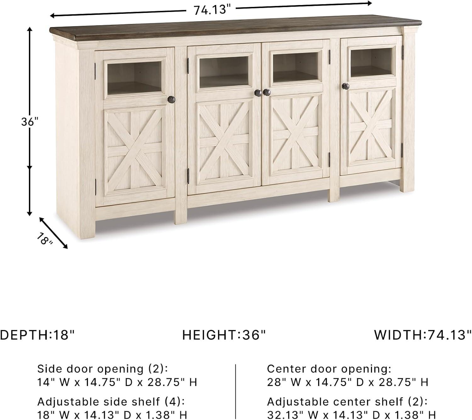 Signature Design by Ashley Bolanburg Extra Large TV Stand, Fits TVs up to 72″, 3 Cabinets, Adjustable Storage Shelves, 74.13″, Whitewash & 2-Tone Finish(X-Large)