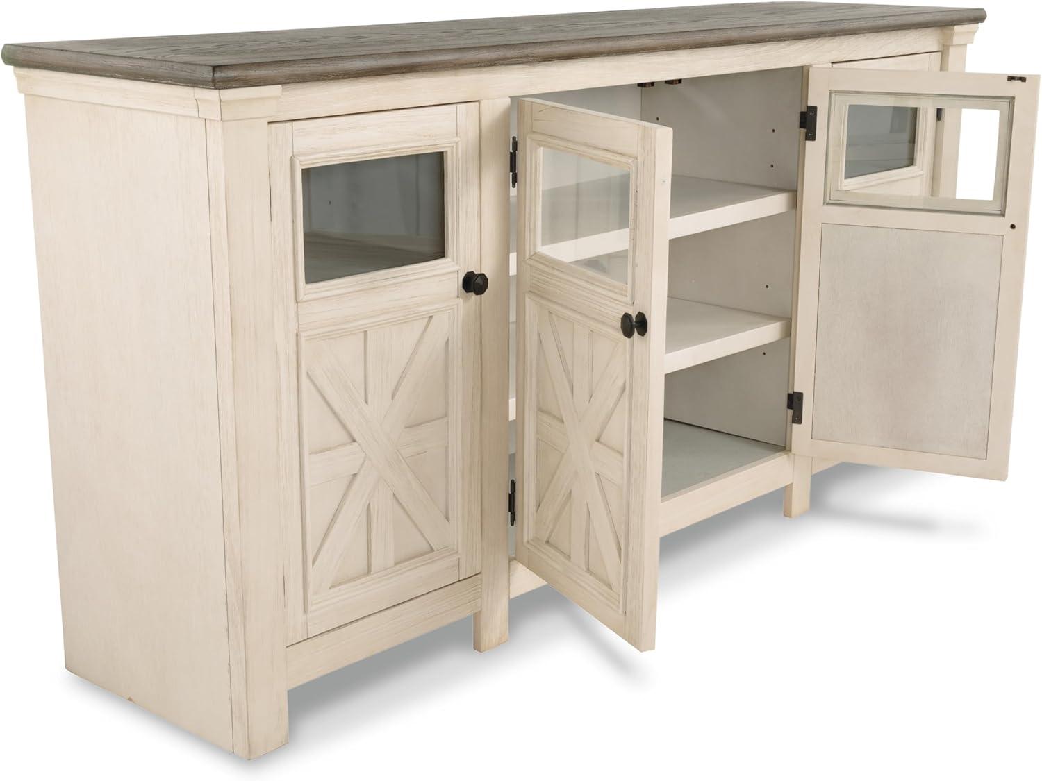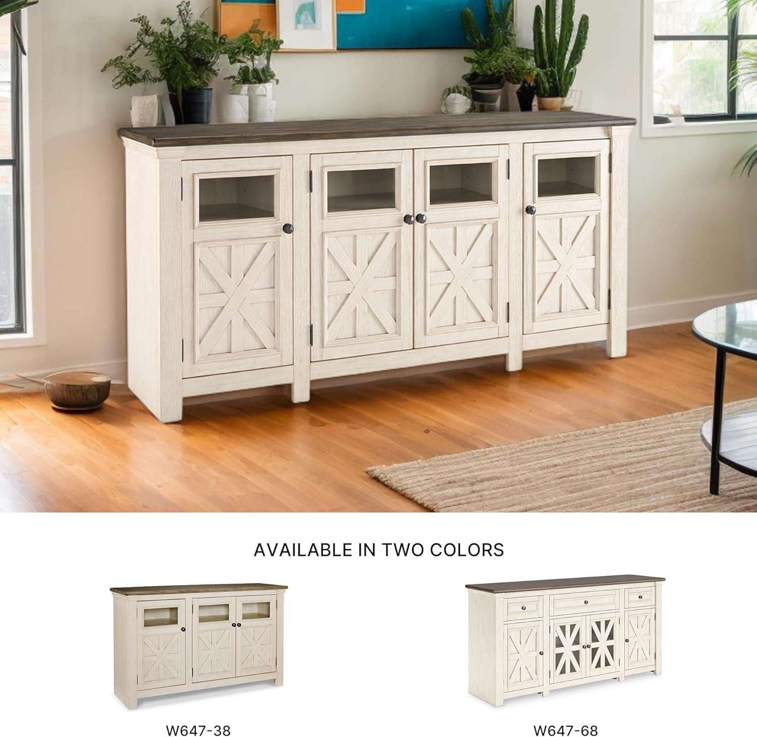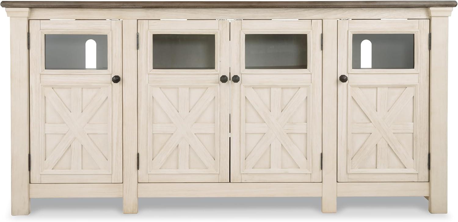 Signature Design by Ashley Bolanburg Extra Large TV Stand, Fits TVs up to 72″, 3 Cabinets, Adjustable Storage Shelves, 74.13″, Whitewash & 2-Tone Finish(X-Large)