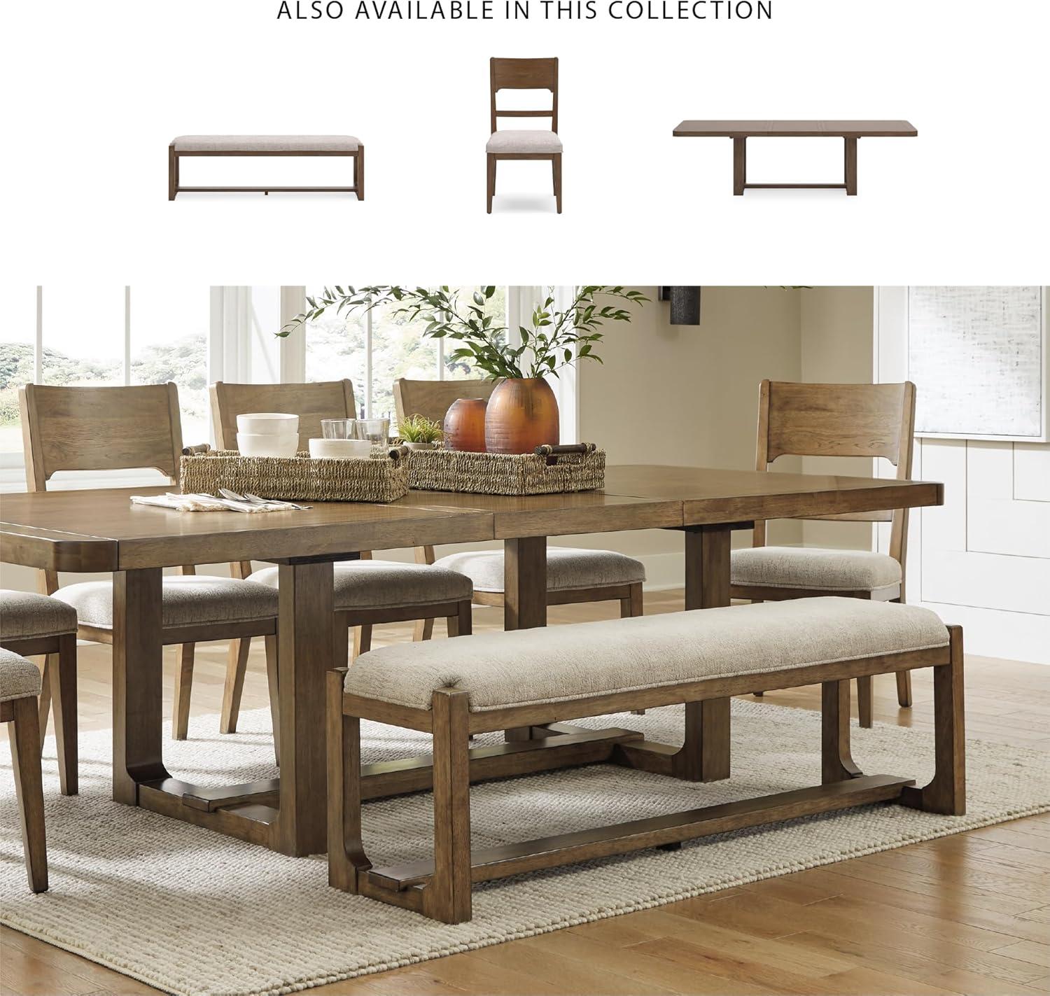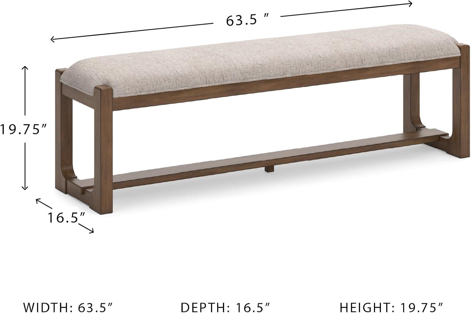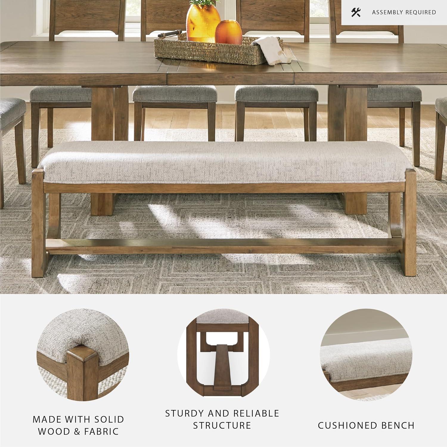 Signature Design by Ashley Cabalynn Farmhouse Upholstered Dining Bench, Foam Cushion, Hardwood Solids, 63.5″ W x 16.5″ D x 19.75″ H, Beige & Light Brown