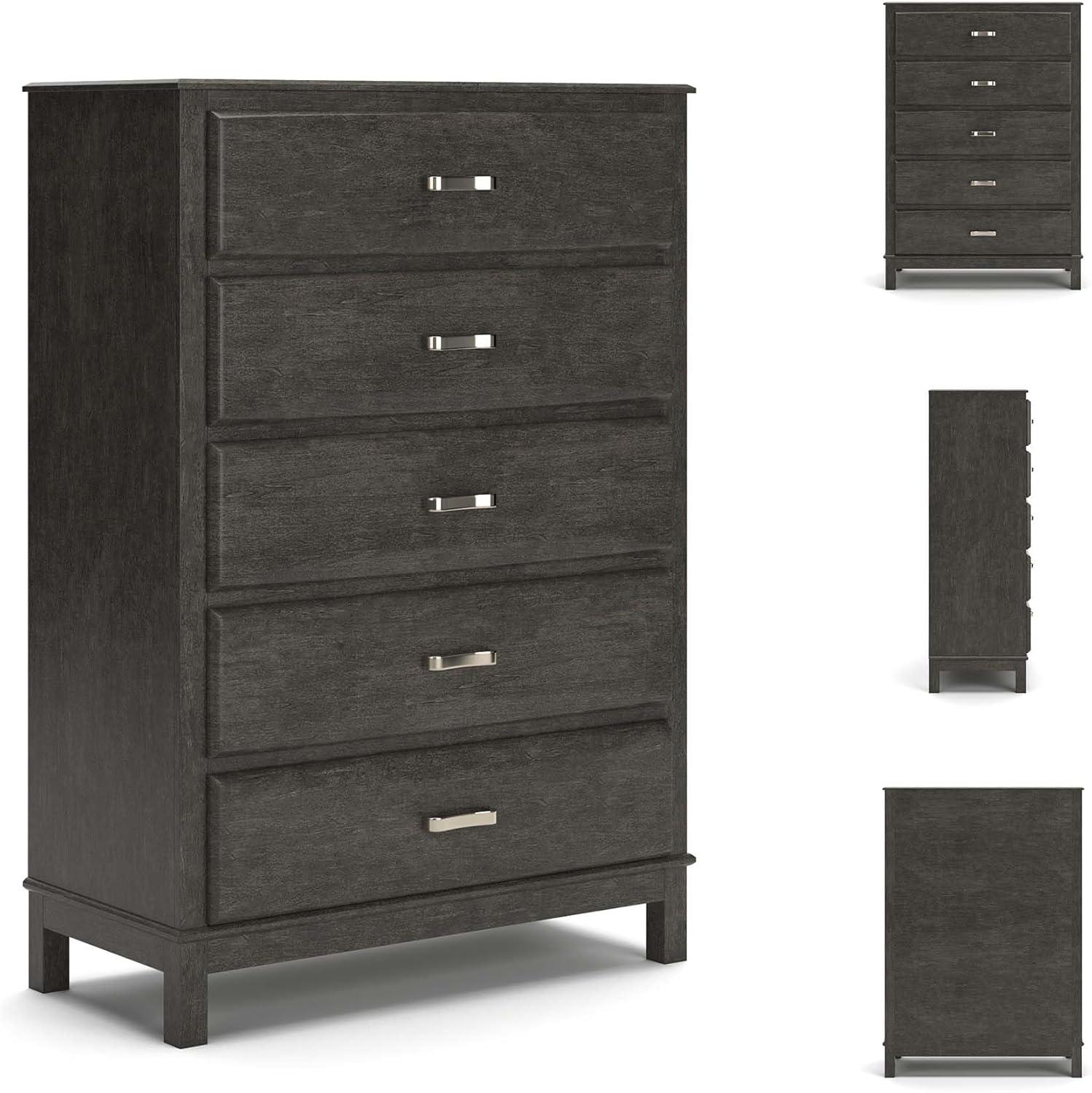Signature Design by Ashley Caitbrook Contemporary 5 Drawer Chest with Dovetail Construction, Weathered Gray(5 Drawer Chest)