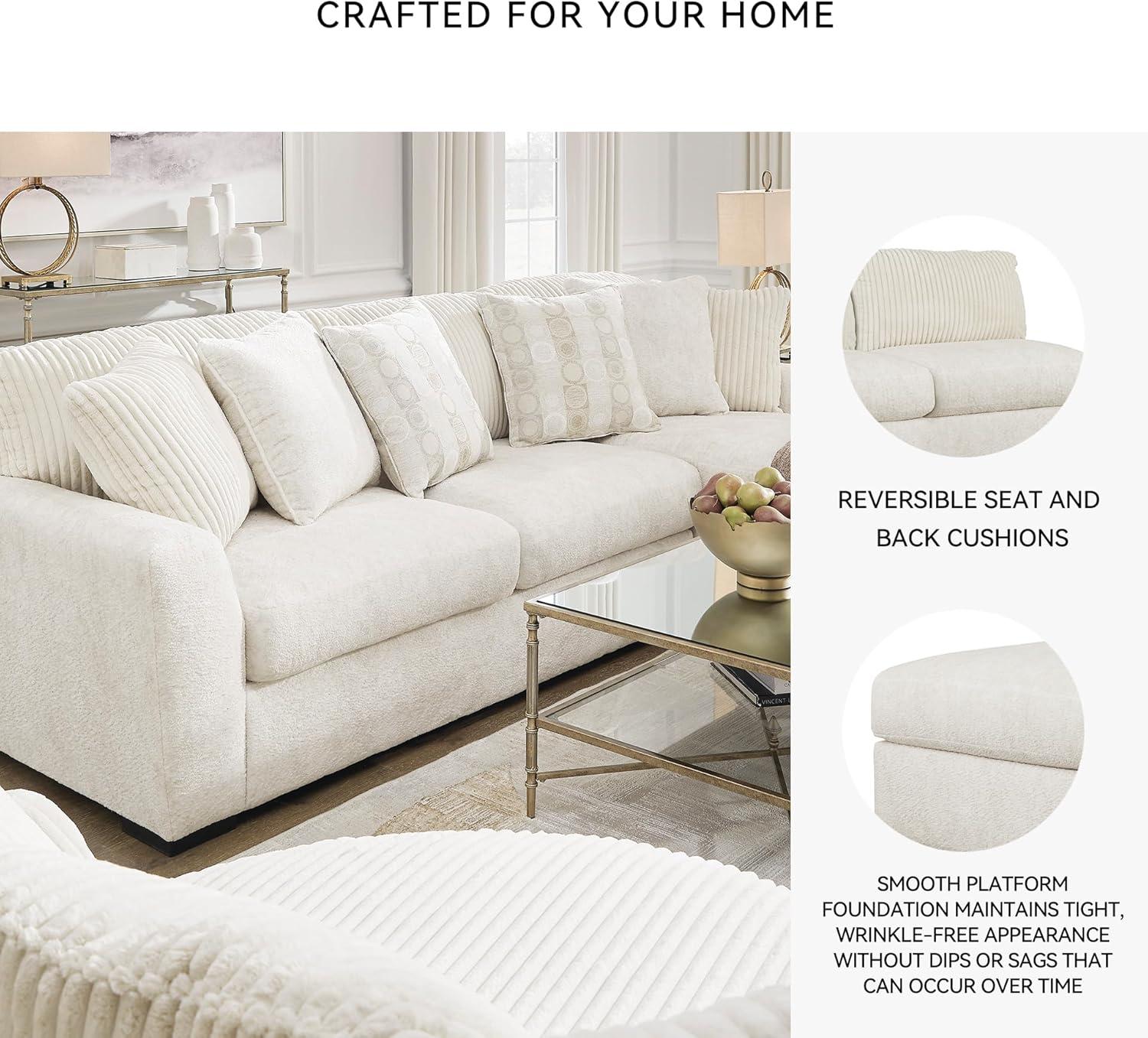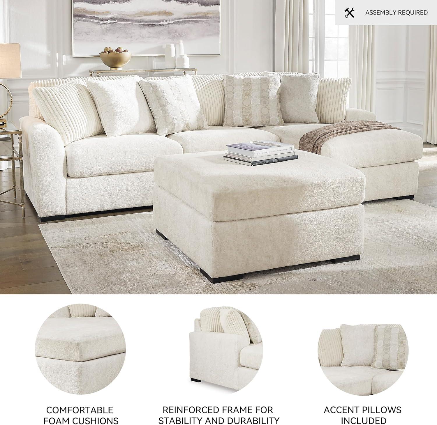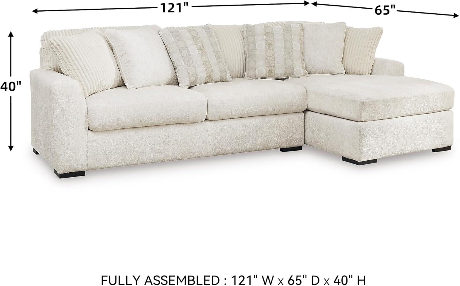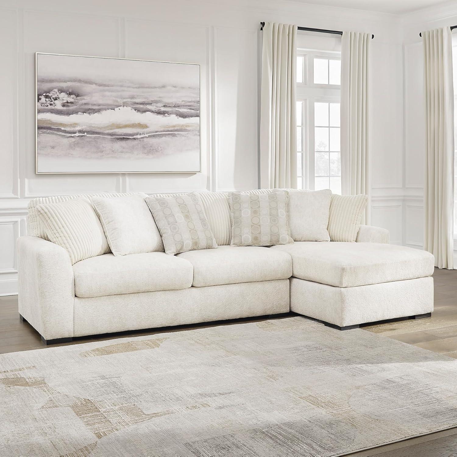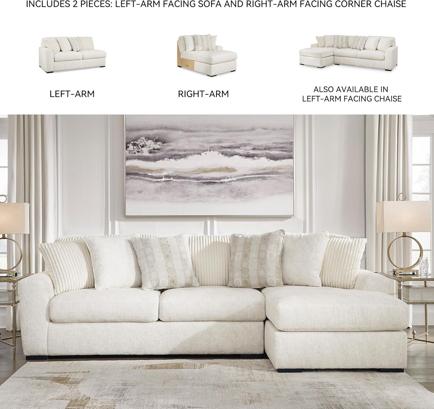 Signature Design by Ashley Chessington L-Shaped 2-Piece Sectional with Chaise, Reversible Cushions, 6 Accent Pillows, Fabric Upholstery, 120″ W x 65″ D x 40″ H, White(2-Piece Sectional with Chaise)