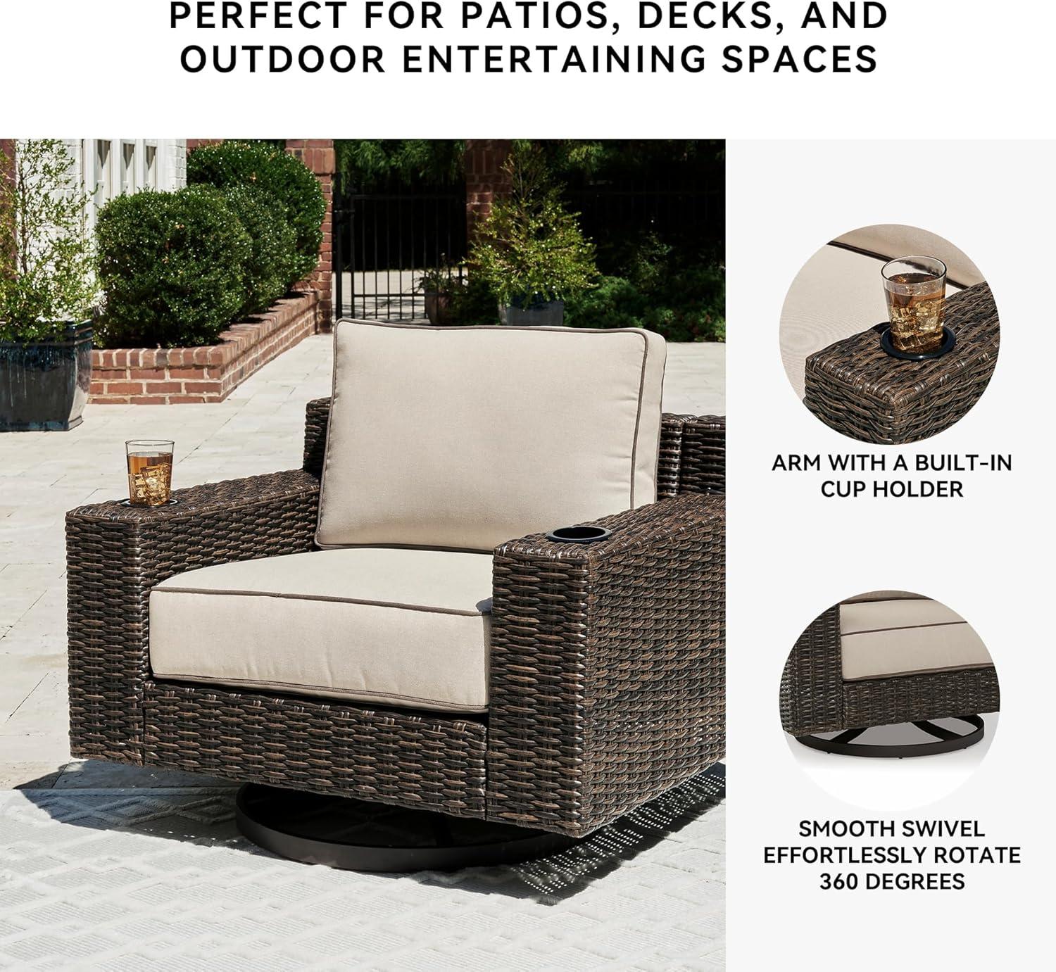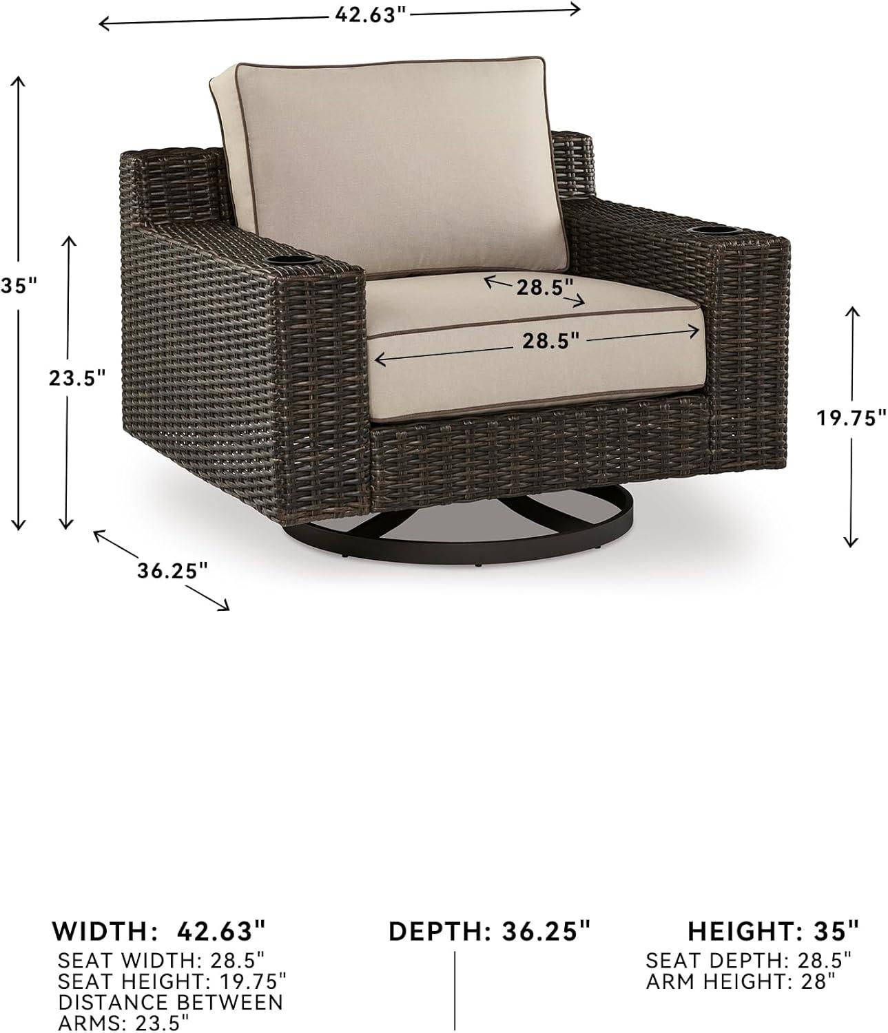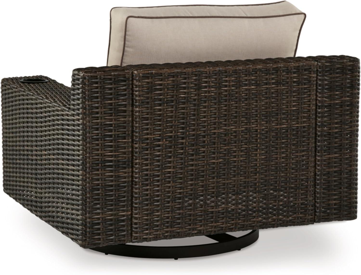 Signature Design by Ashley Coastline Bay Casual Outdoor Swivel Lounge with Cushion and 2 Cup Holders, Nuvella Weather Resistant Fabric, Beige & Dark Brown(Outdoor Swivel Lounge with Cushion)