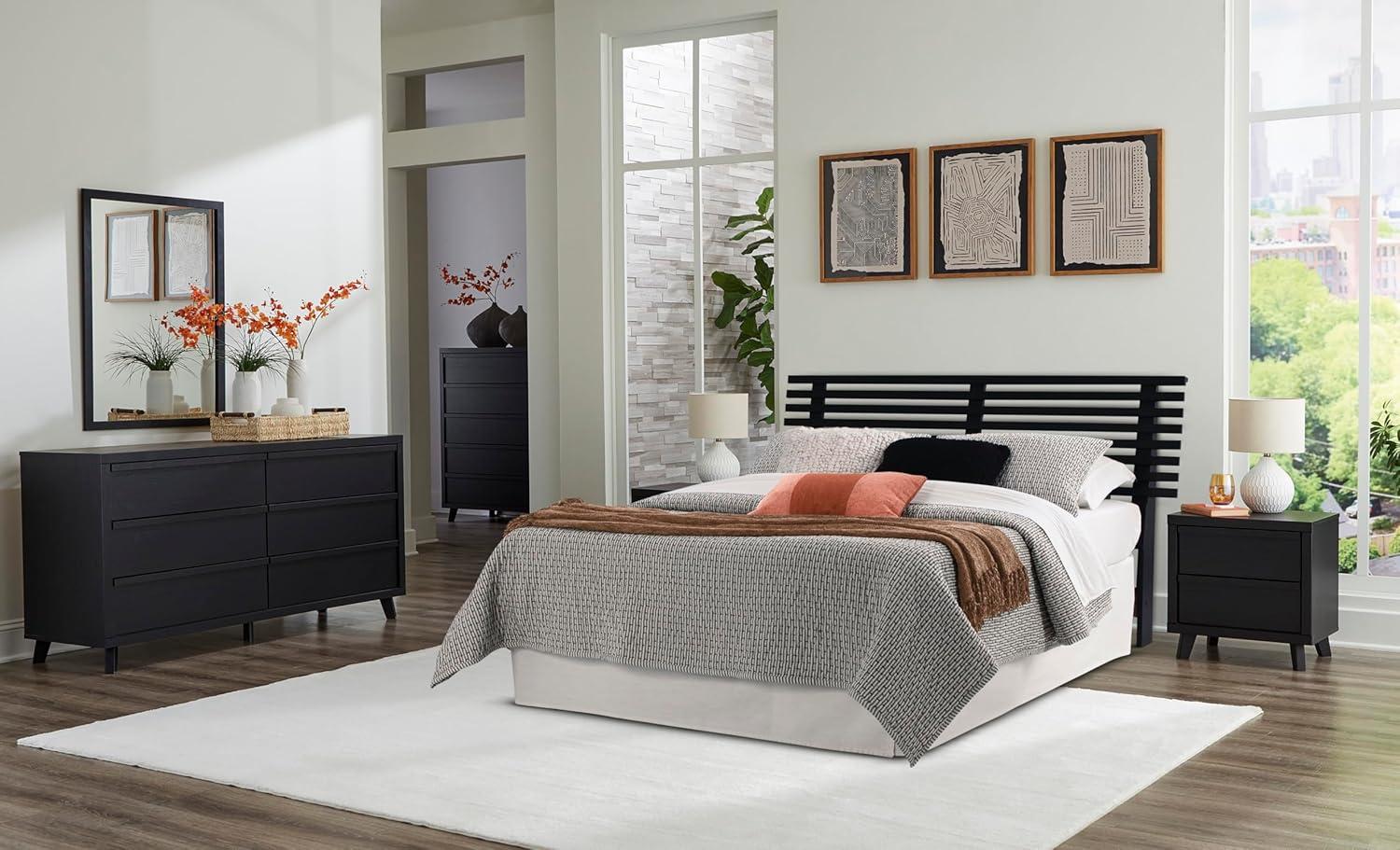 MODERN VERSATILITY: Its subtle replicated texture recalls the natural beauty of wood. A matte black finish savvily suits different approaches to modern bedroom aesthetics