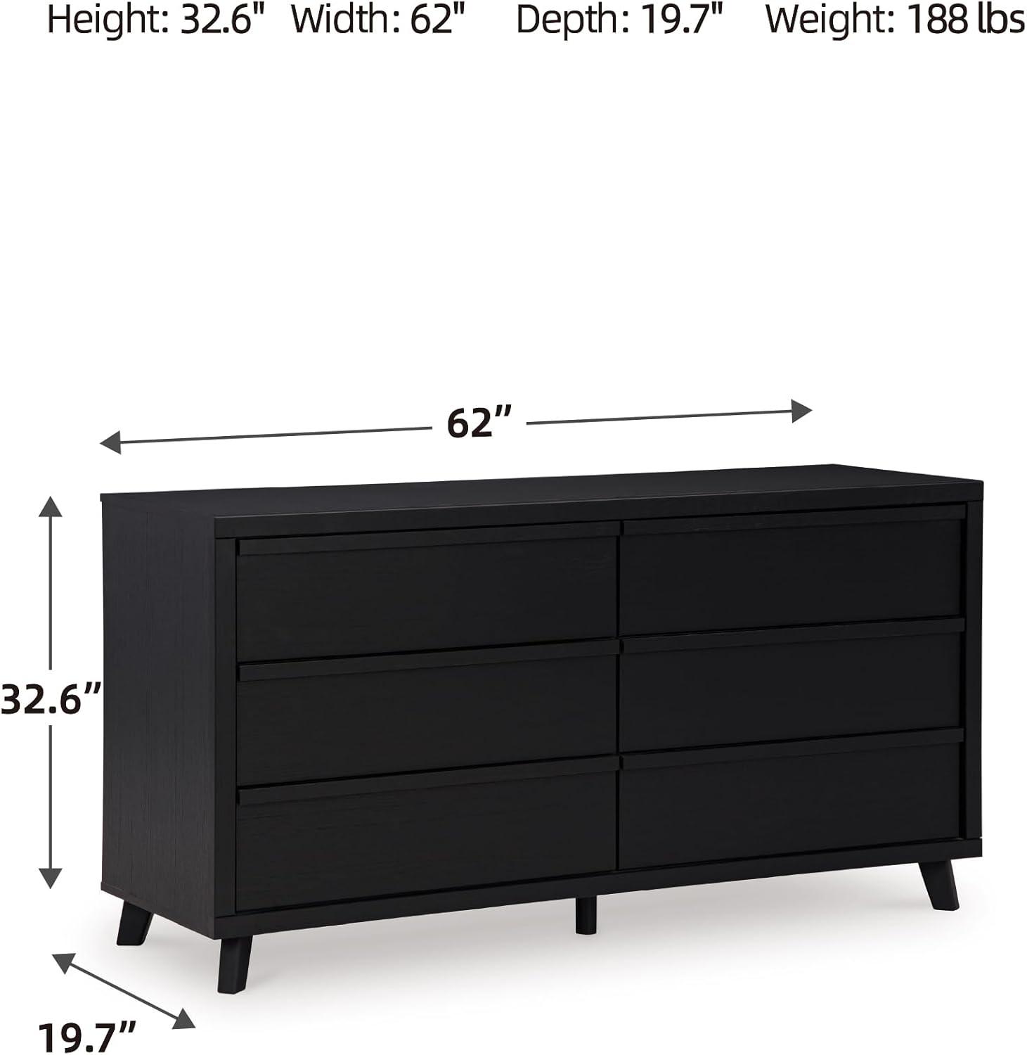 Signature Design by Ashley Danziar Modern 6 Drawer Dresser with Safety Stop for Bedroom, Black
