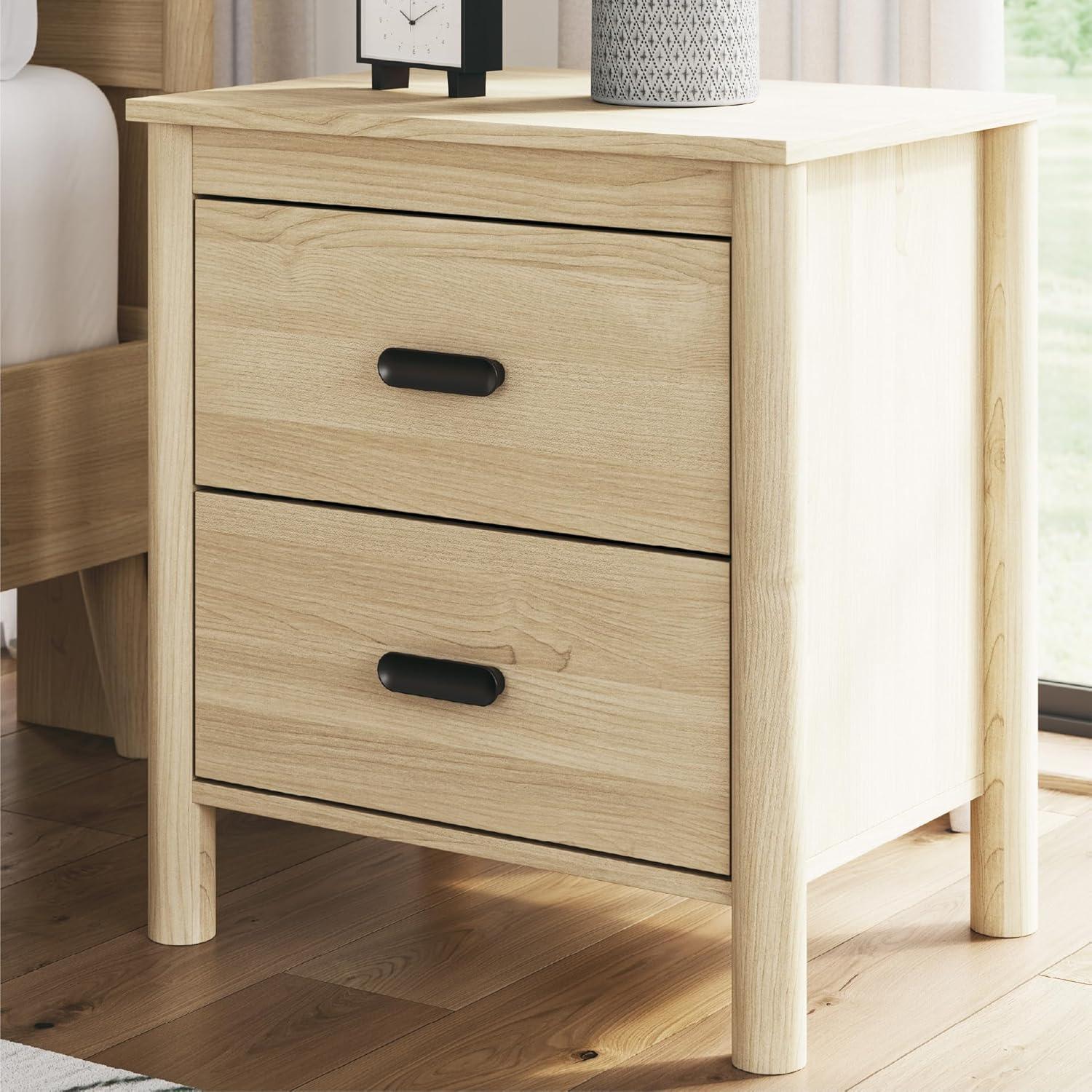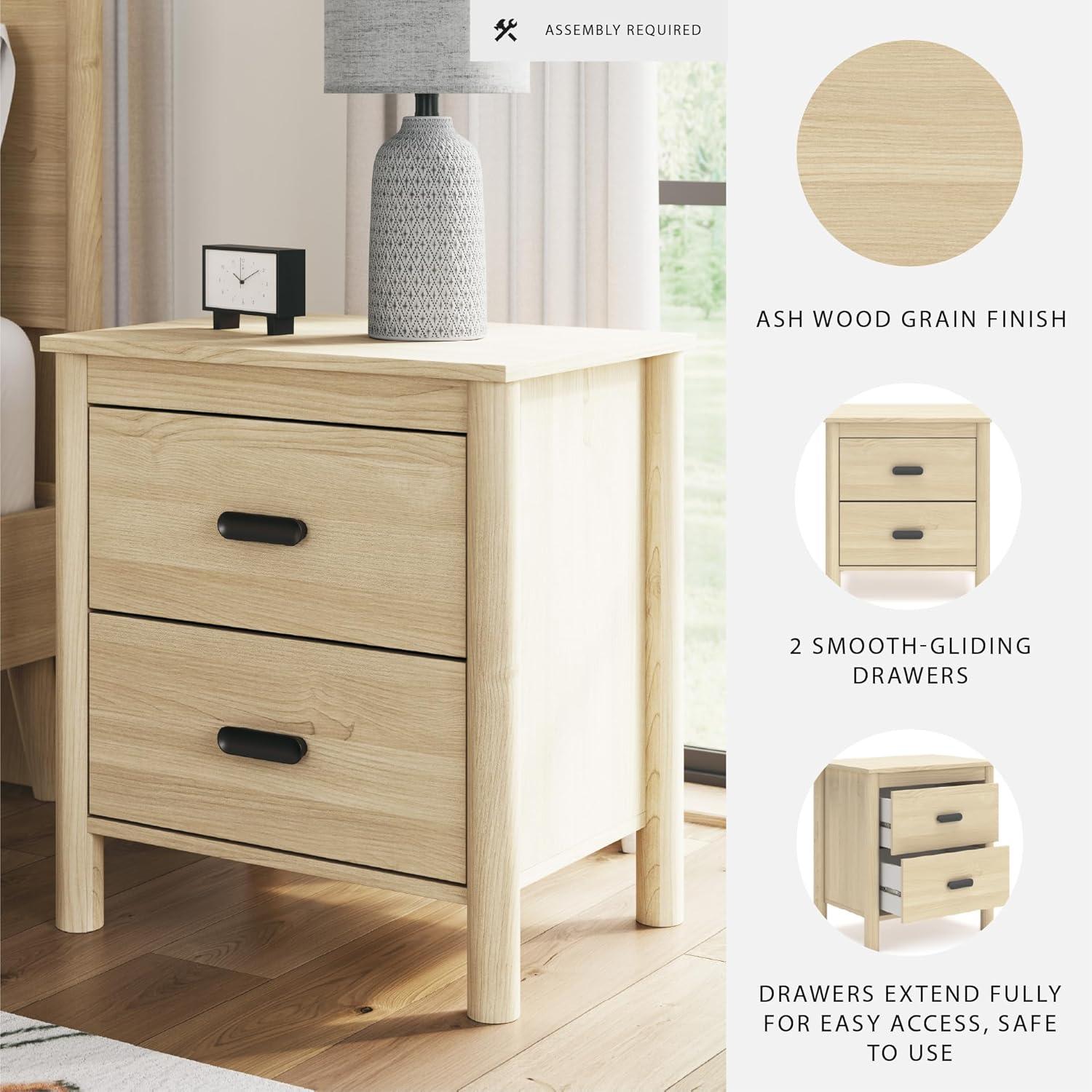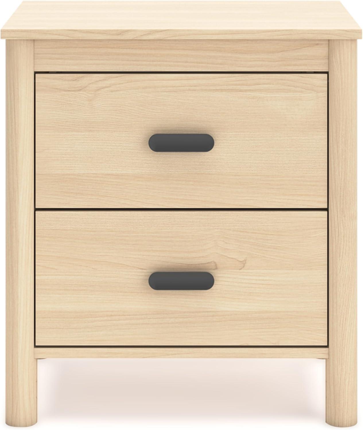 Signature Design by Ashley Hallityn Minimalist 2 Drawer Nightstand, Smooth-Gliding Drawers, Wood, 21.34″ W x 15.94″ D x 24.37″ H, Matte White Finish(Beige)