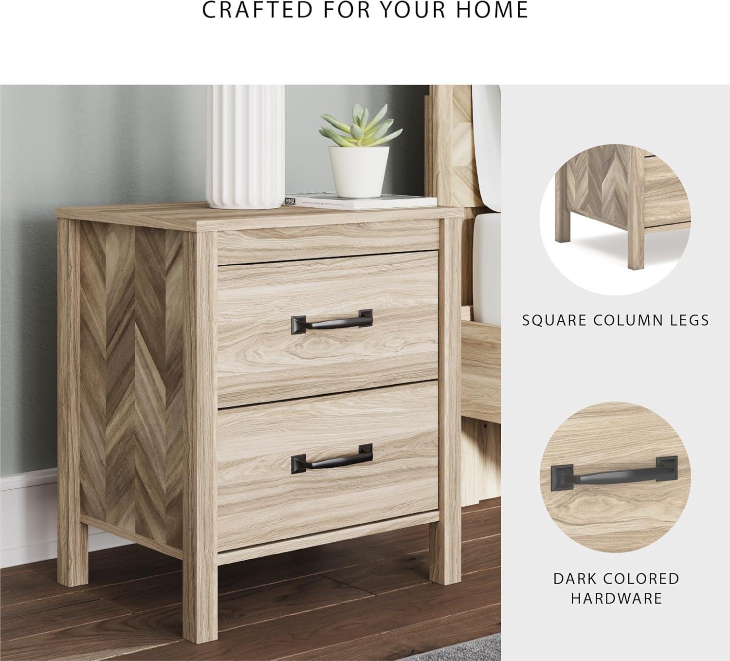 Signature Design by Ashley Hallityn Minimalist 2 Drawer Nightstand, Smooth-Gliding Drawers, Wood, 21.34″ W x 15.94″ D x 24.37″ H, Matte White Finish(Natural)