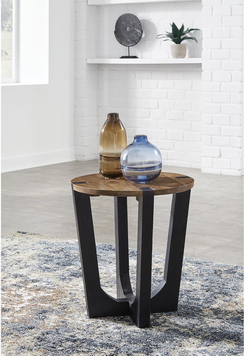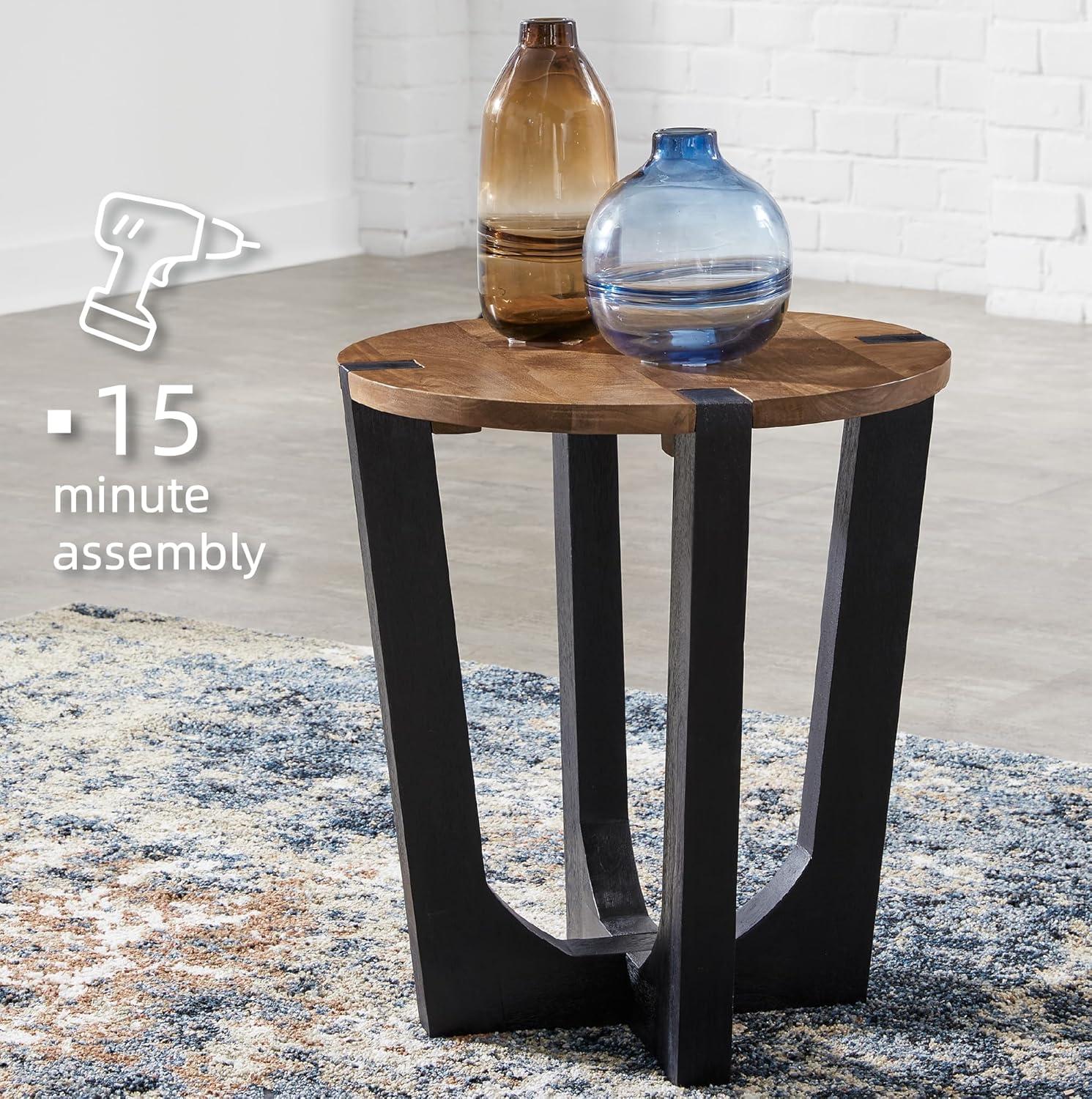 Signature Design by Ashley Hanneforth Farmhouse End Table with Angled Solid Wood Legs, Light Brown & Black