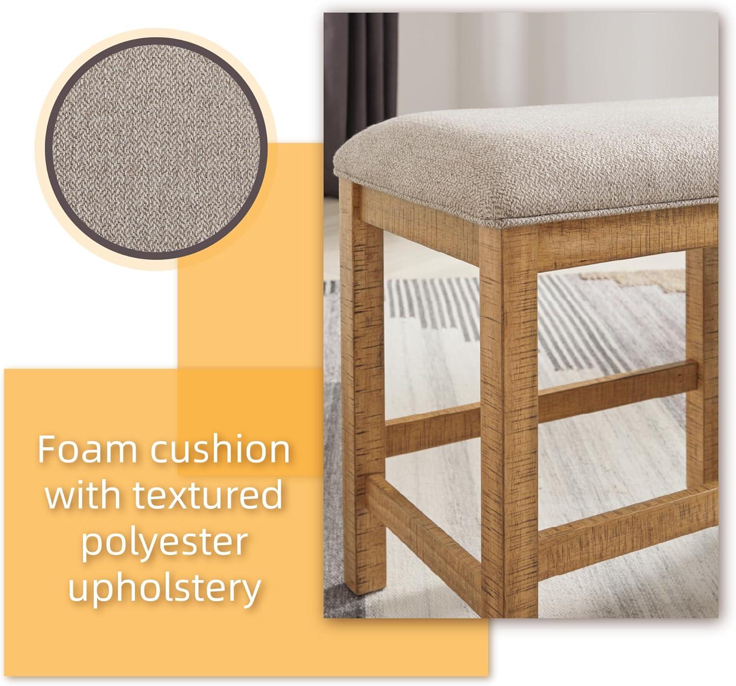 This counter height dining bench is a favorite choice for casual rustic interiors. Offering a great seating alternative, it's your answer for impromptu guests. And the textured upholstered seating? Deliciously versatile and comfortable.