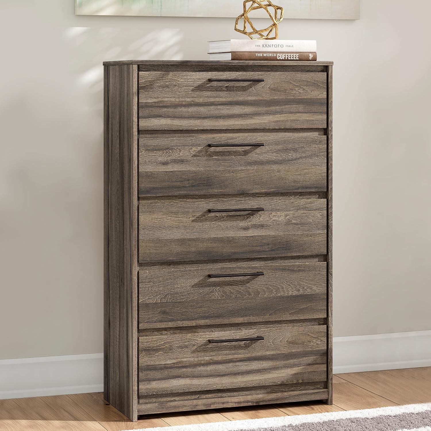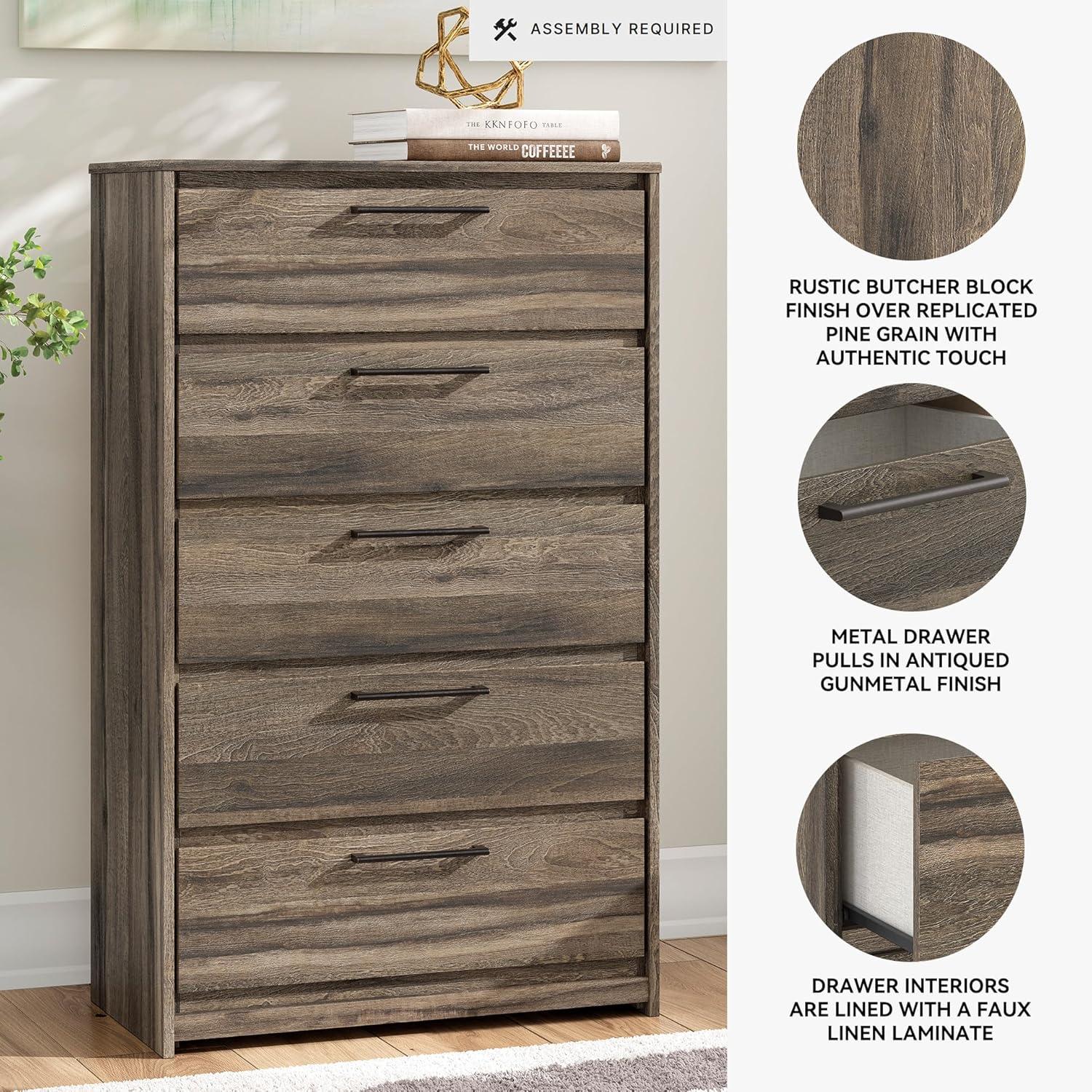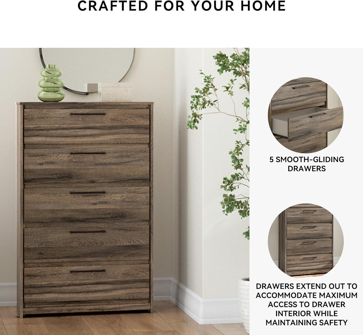 Signature Design by Ashley Jusika Rustic 5-Drawer Chest with Easy Glide and Safety Stop for Bedroom, Dark Brown