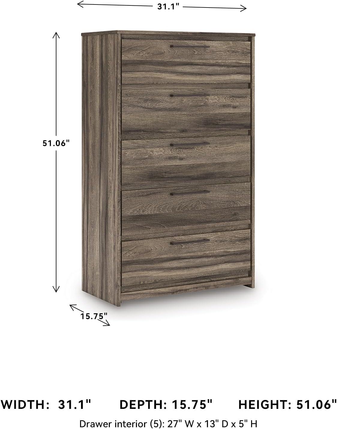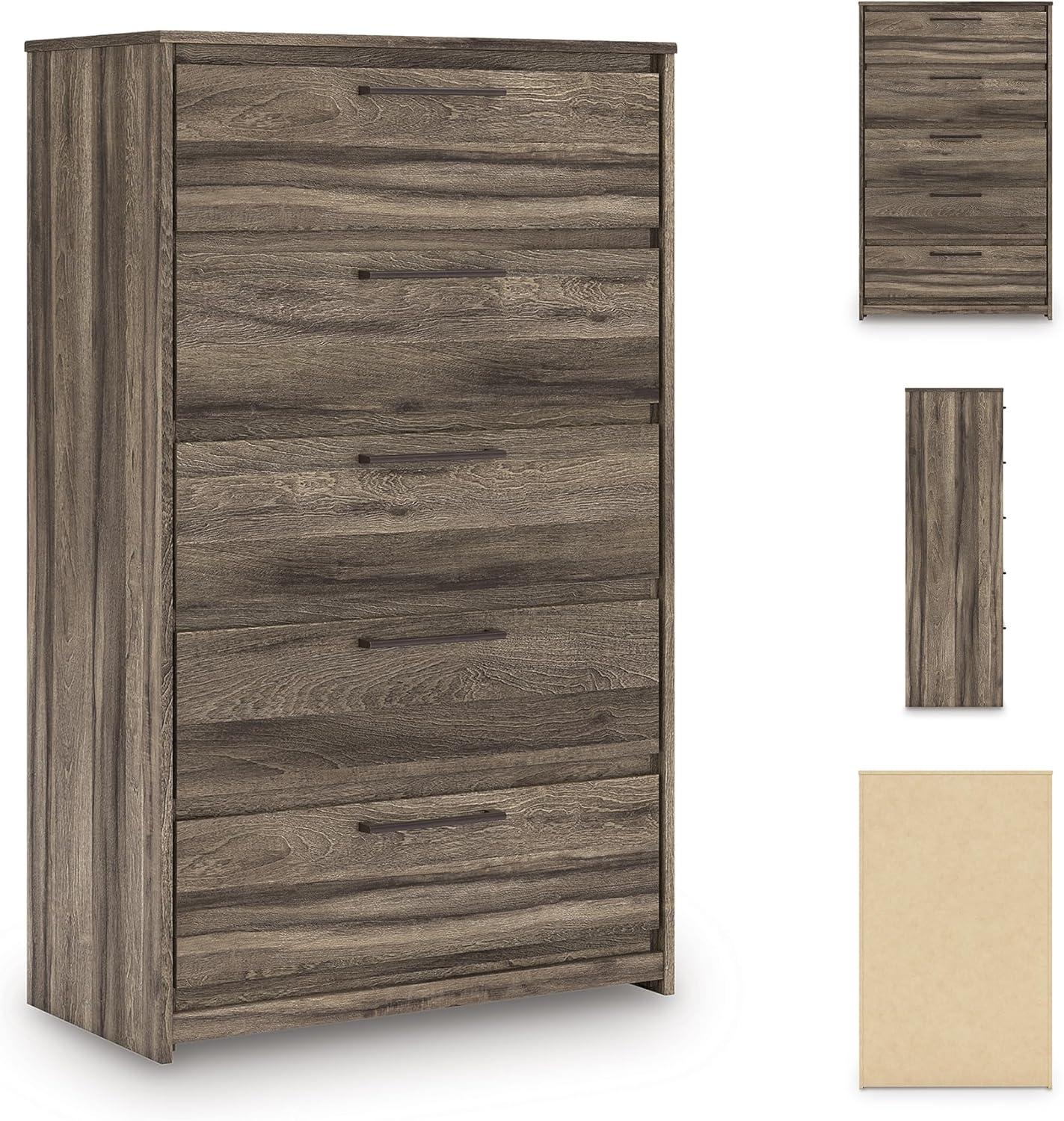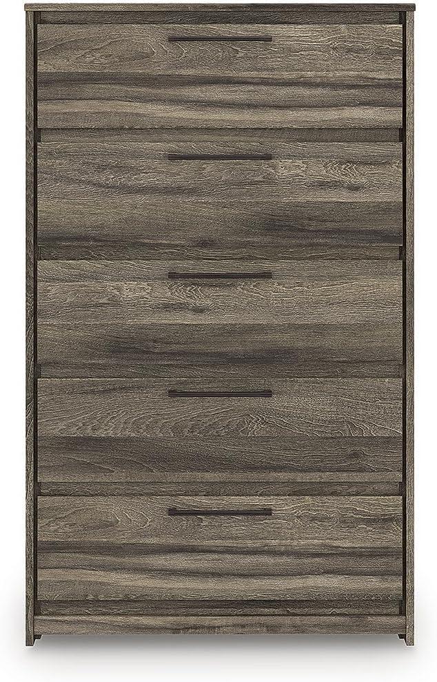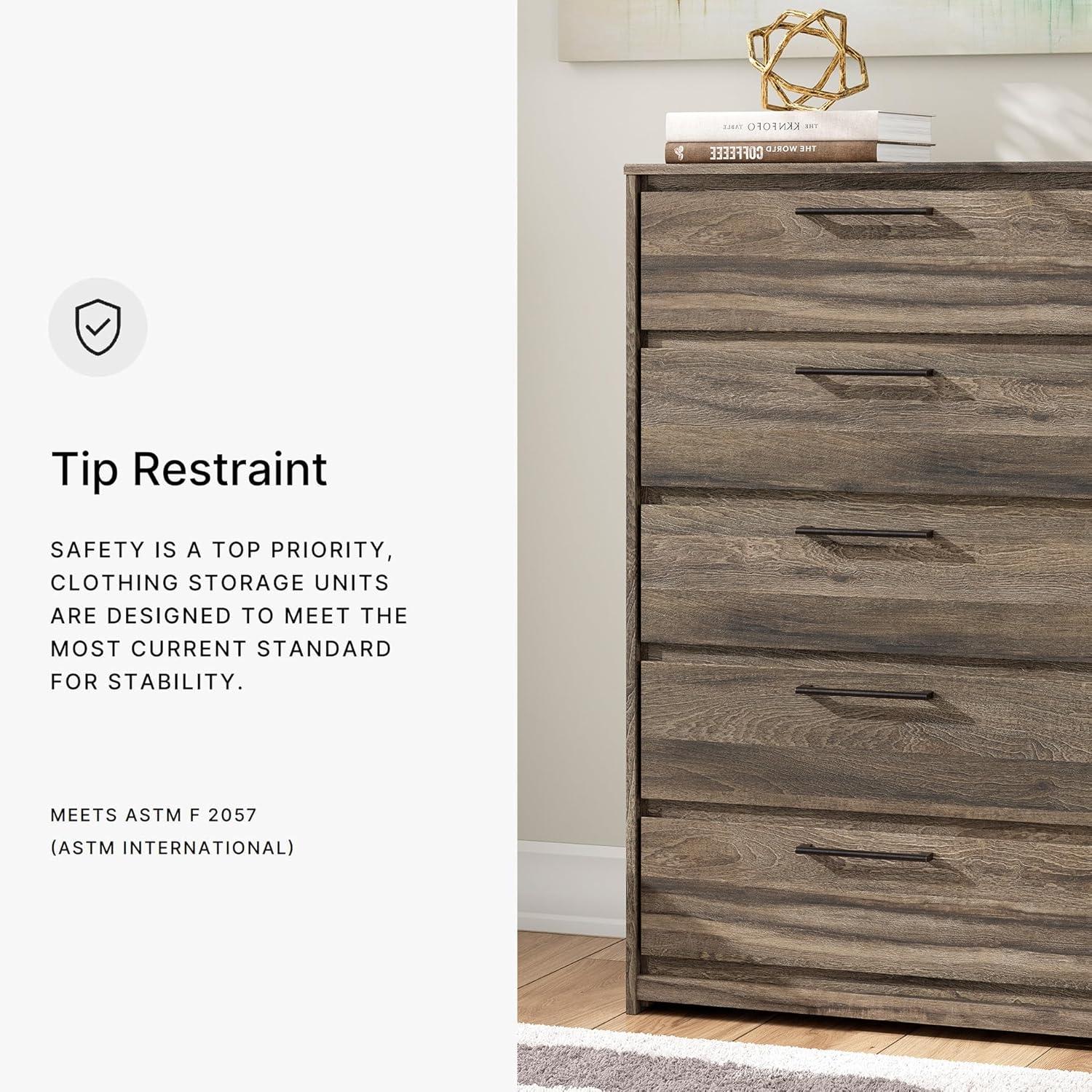 Signature Design by Ashley Jusika Rustic 5-Drawer Chest with Easy Glide and Safety Stop for Bedroom, Dark Brown