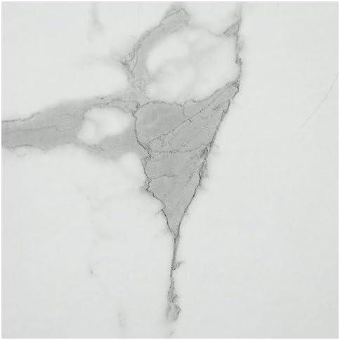 QUALITY MADE: Tabletop made with faux Carrara marble laminate and MDF substrate. Tubular metal frame with dark powder coat finish. Ottoman with black faux leather upholstery. Nesting design