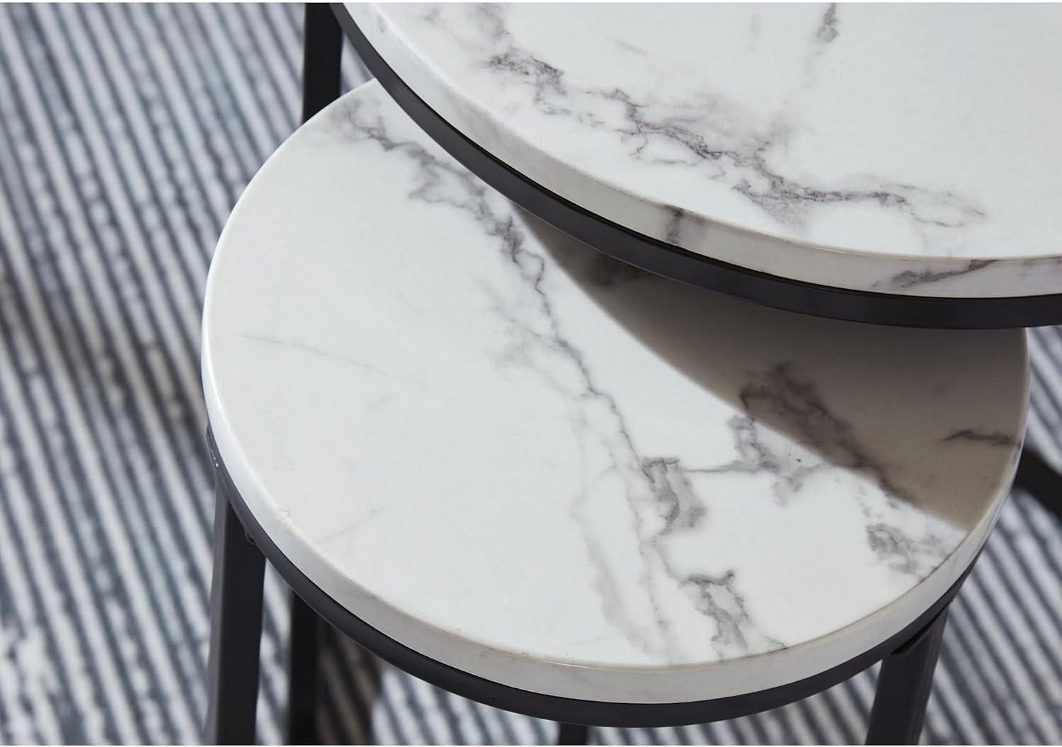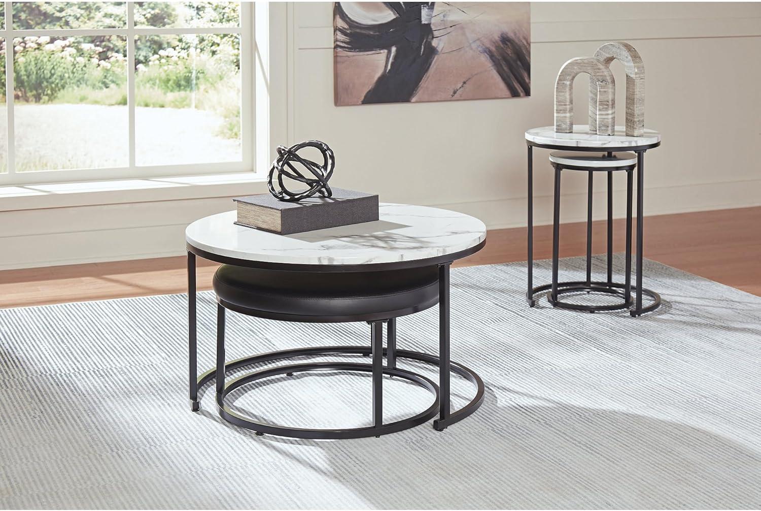 Signature Design by Ashley Jusmour Modern Nesting Table Set with Faux Leather Upholstered Ottoman, Set of 4, Black & White
