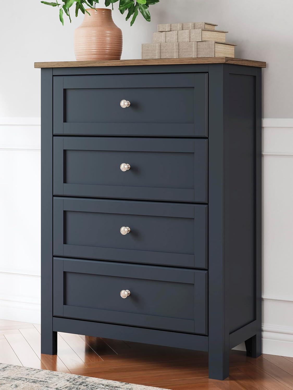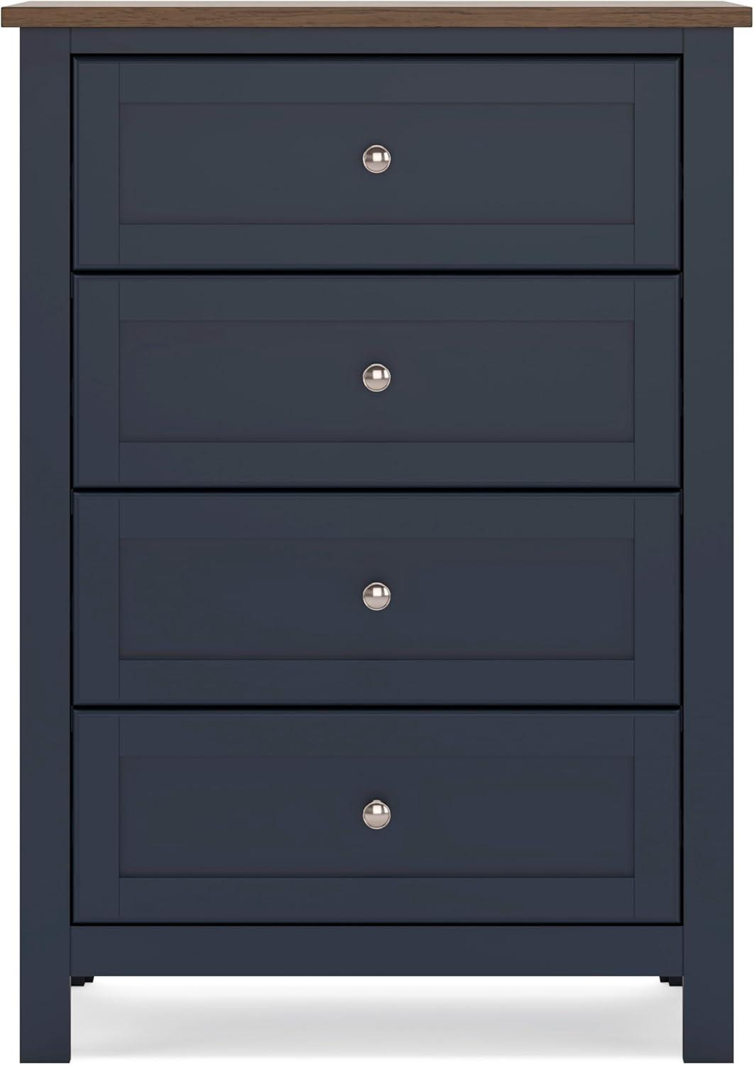 Signature Design by Ashley Landocken Shaker 6-Drawer Dresser with Metal Knobs, Light Brown & Blue(4 Drawer Chest)