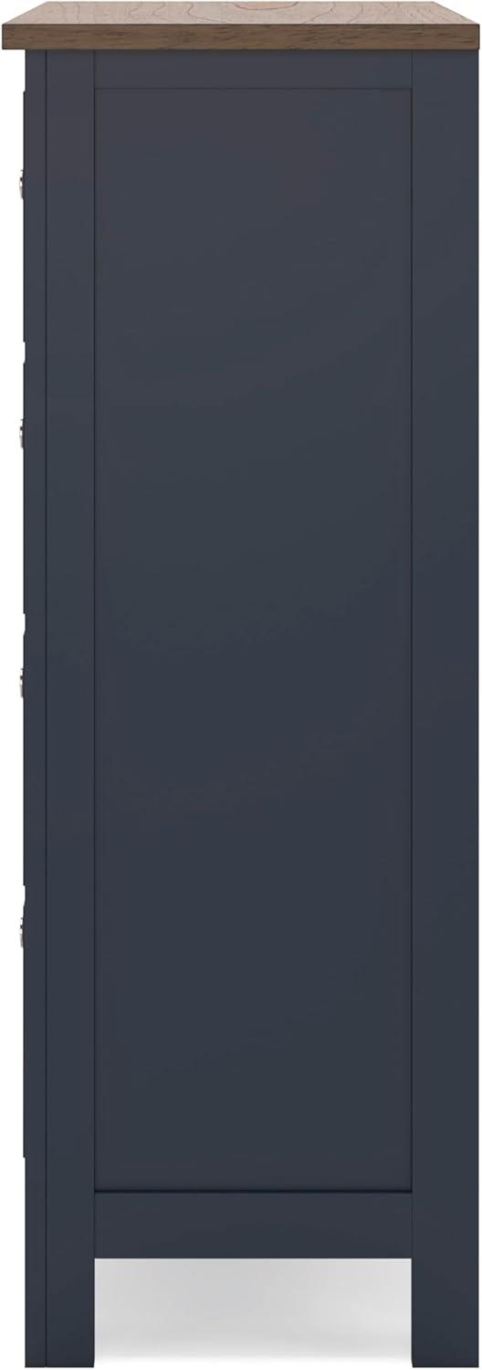 Add homespun charm to your restful retreat. A modern take on a timeless silhouette, this dresser pairs a dark slate blue finish with a light brown top. Drawer fronts and legs in a classic Shaker style bring an air of beautiful simplicity to the bedroom. Whether it's part of a charmingly curated guest suite or a casually carefree kids room, this dresser is a welcome addition.