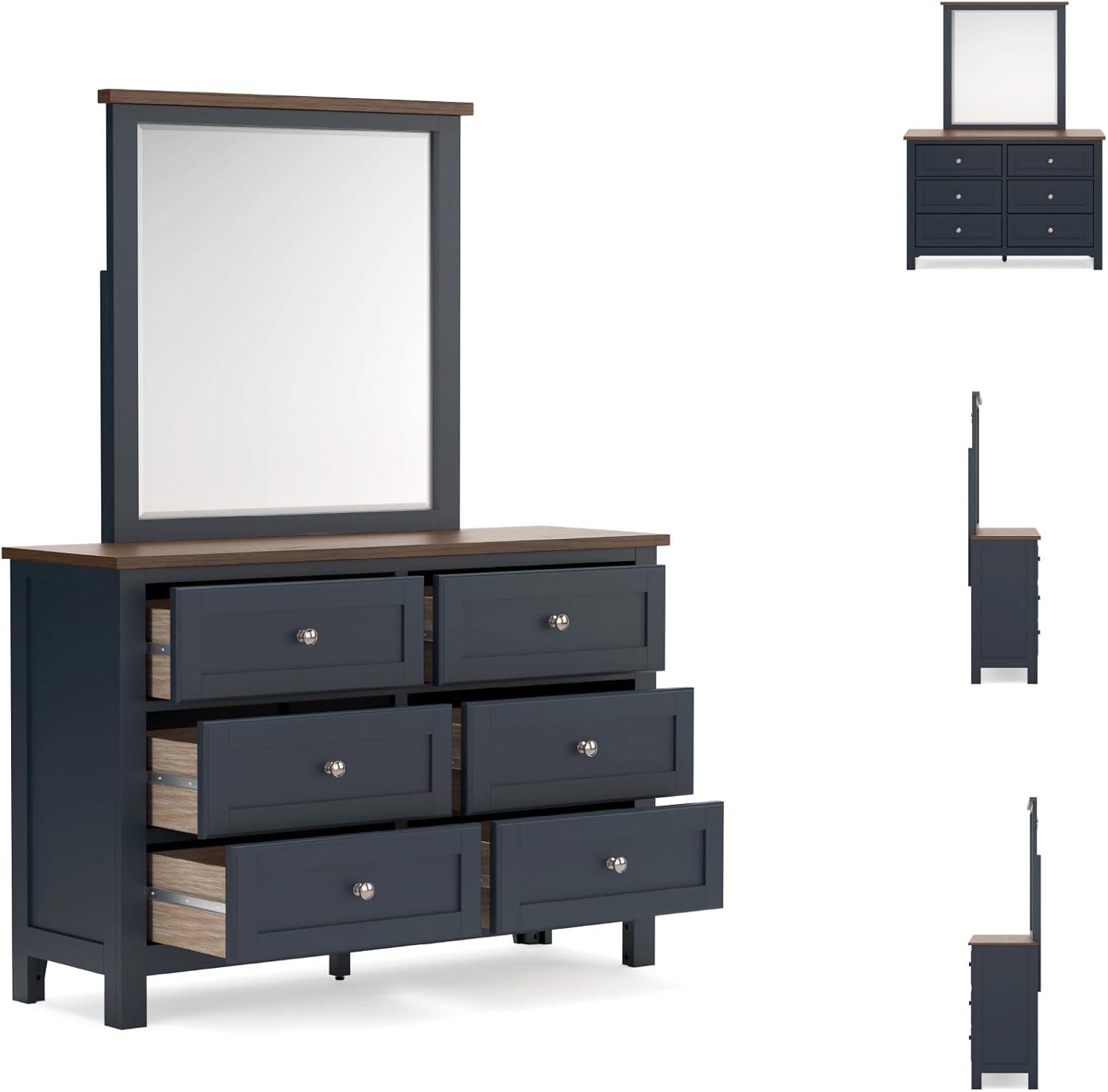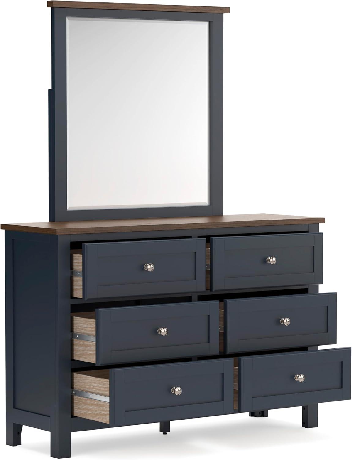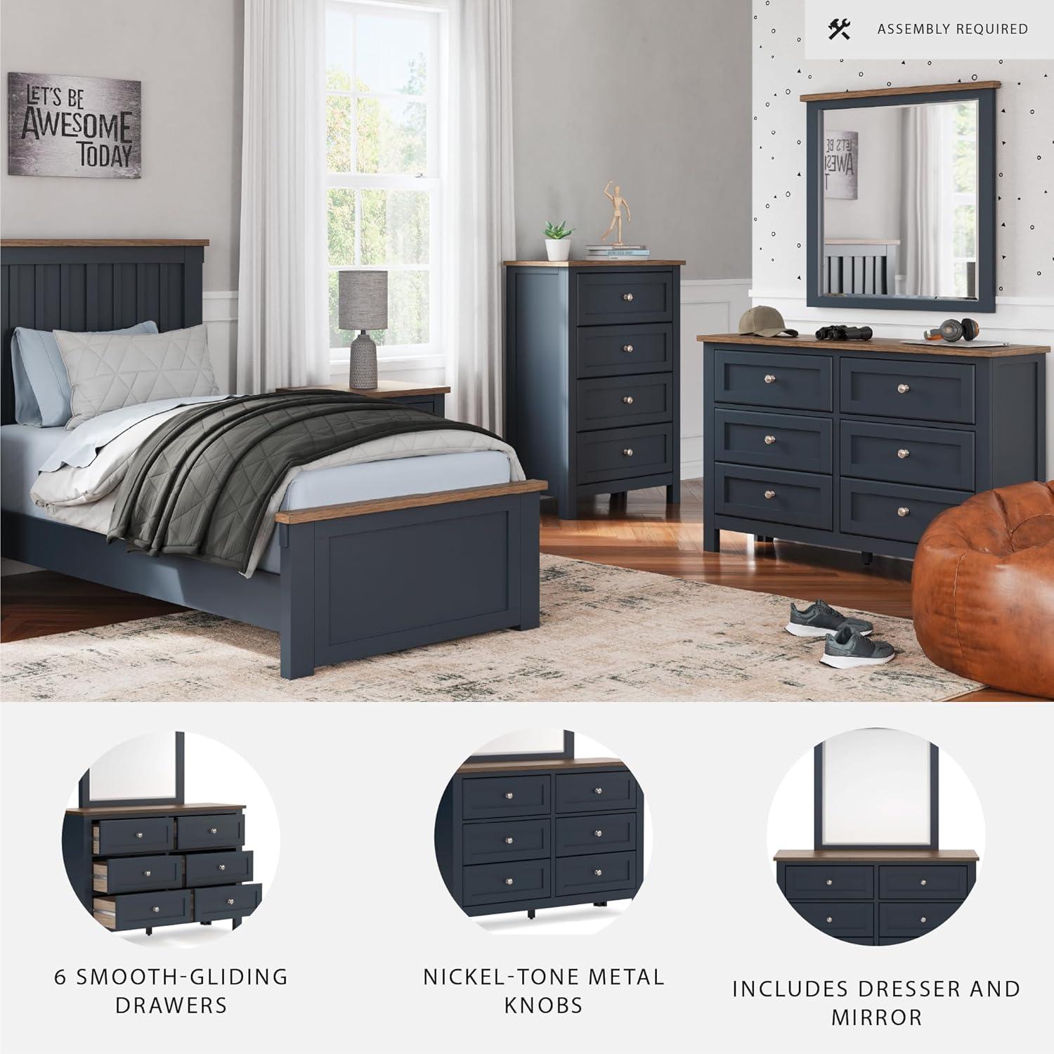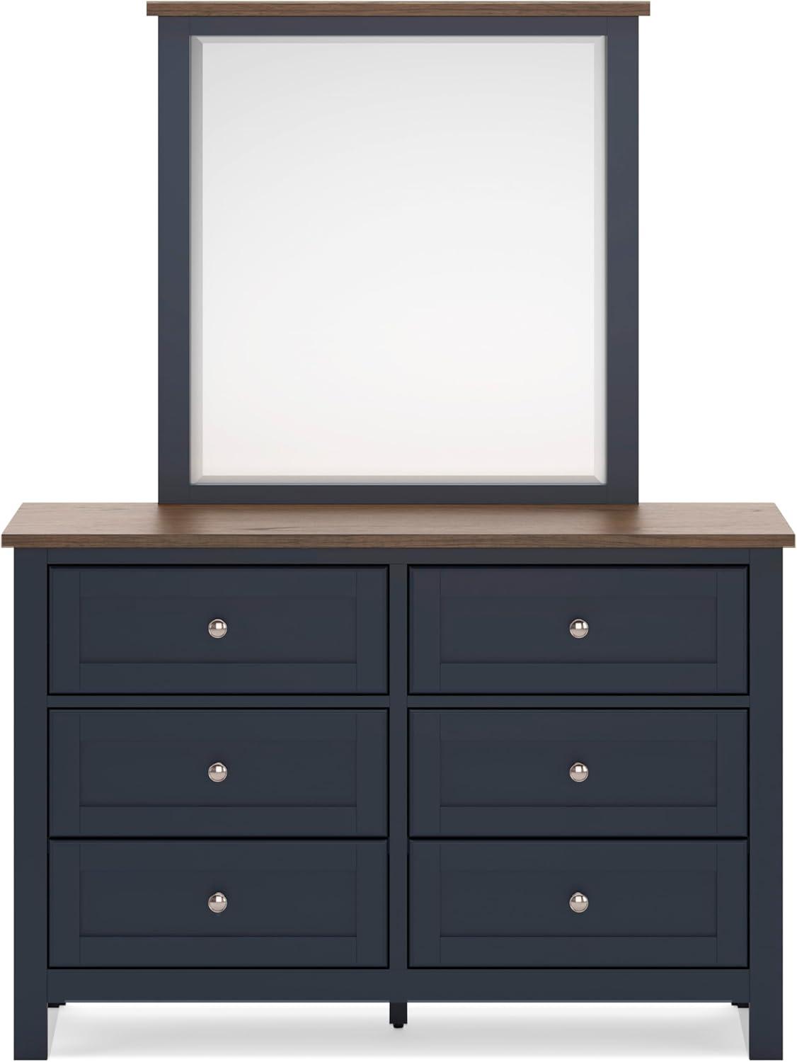 Signature Design by Ashley Landocken Shaker 6-Drawer Dresser with Metal Knobs, Light Brown & Blue(Dresser and Mirror)