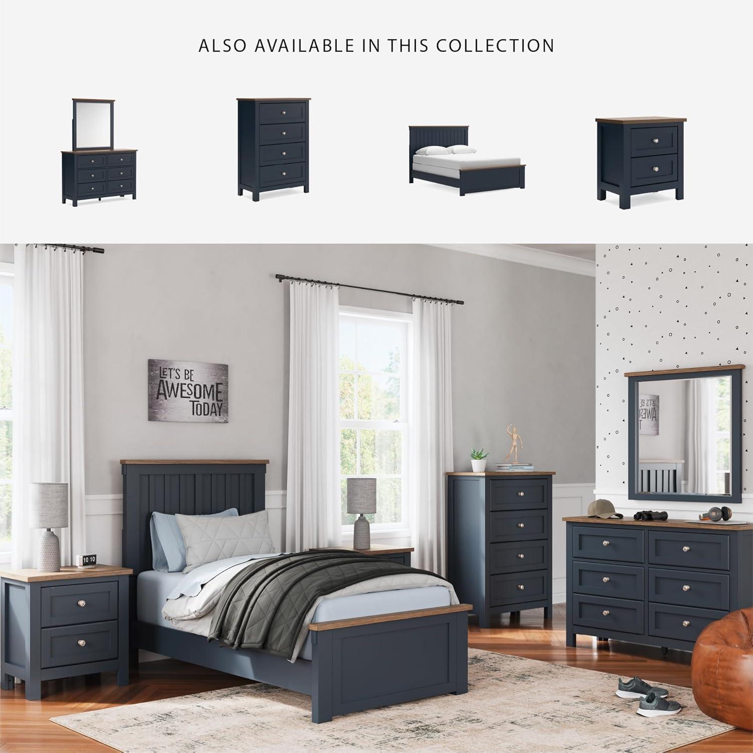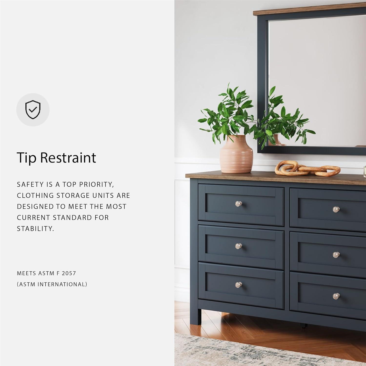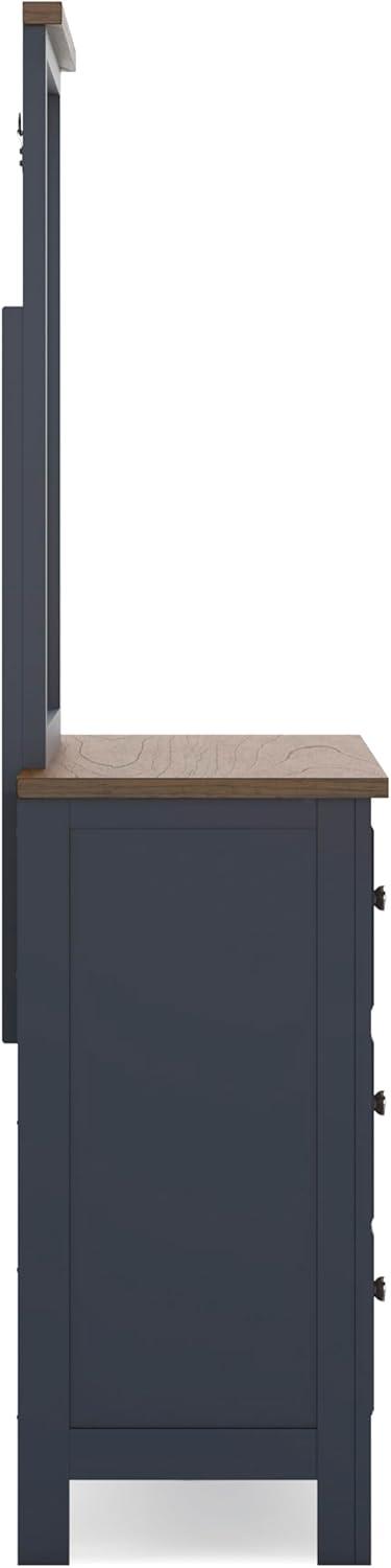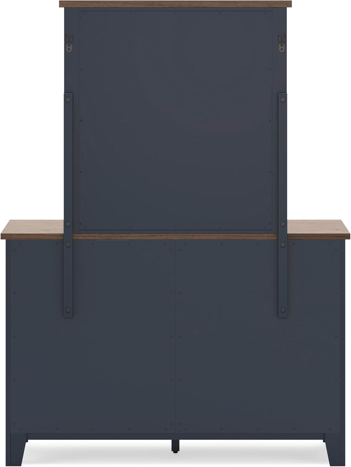 Signature Design by Ashley Landocken Shaker 6-Drawer Dresser with Metal Knobs, Light Brown & Blue(Dresser and Mirror)