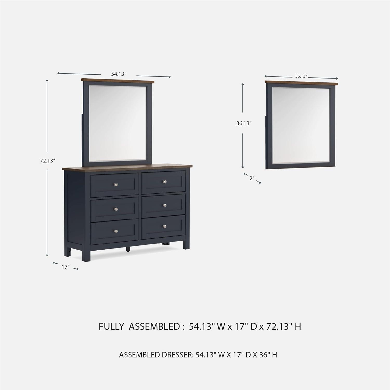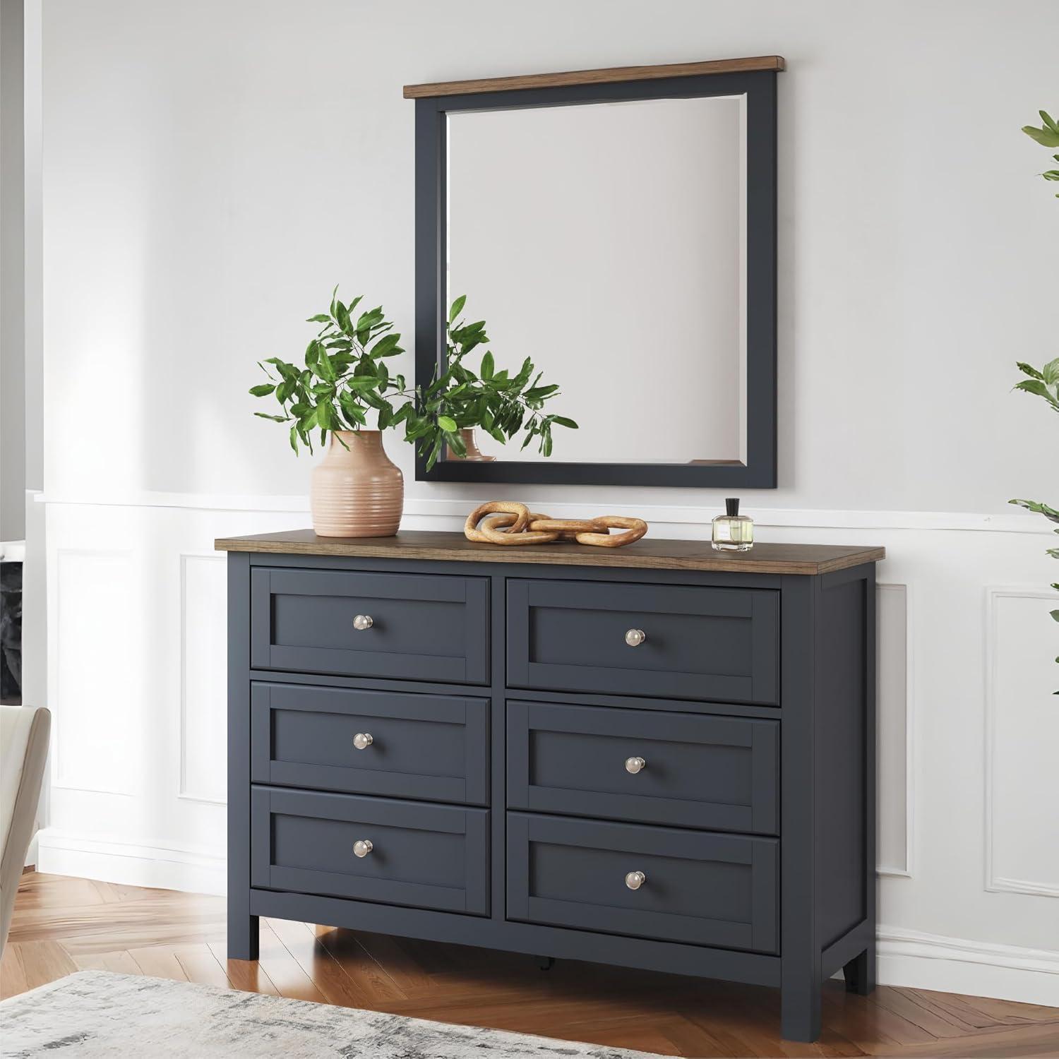 Add homespun charm to your restful retreat. A modern take on a timeless silhouette, this dresser pairs a dark slate blue finish with a light brown top. Drawer fronts and legs in a classic Shaker style bring an air of beautiful simplicity to the bedroom. Whether it's part of a charmingly curated guest suite or a casually carefree kids room, this dresser is a welcome addition.