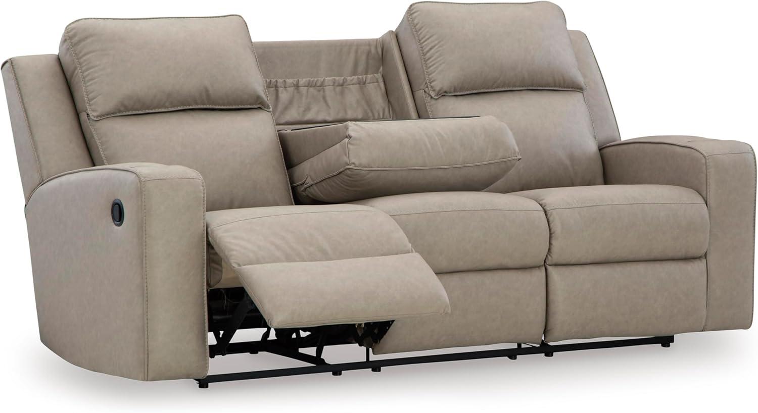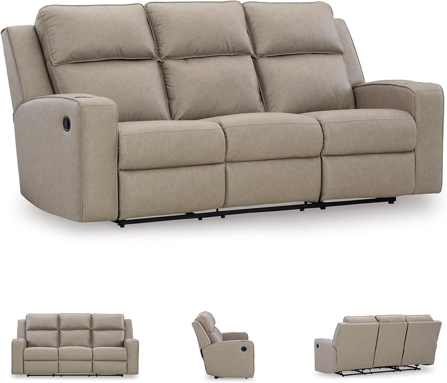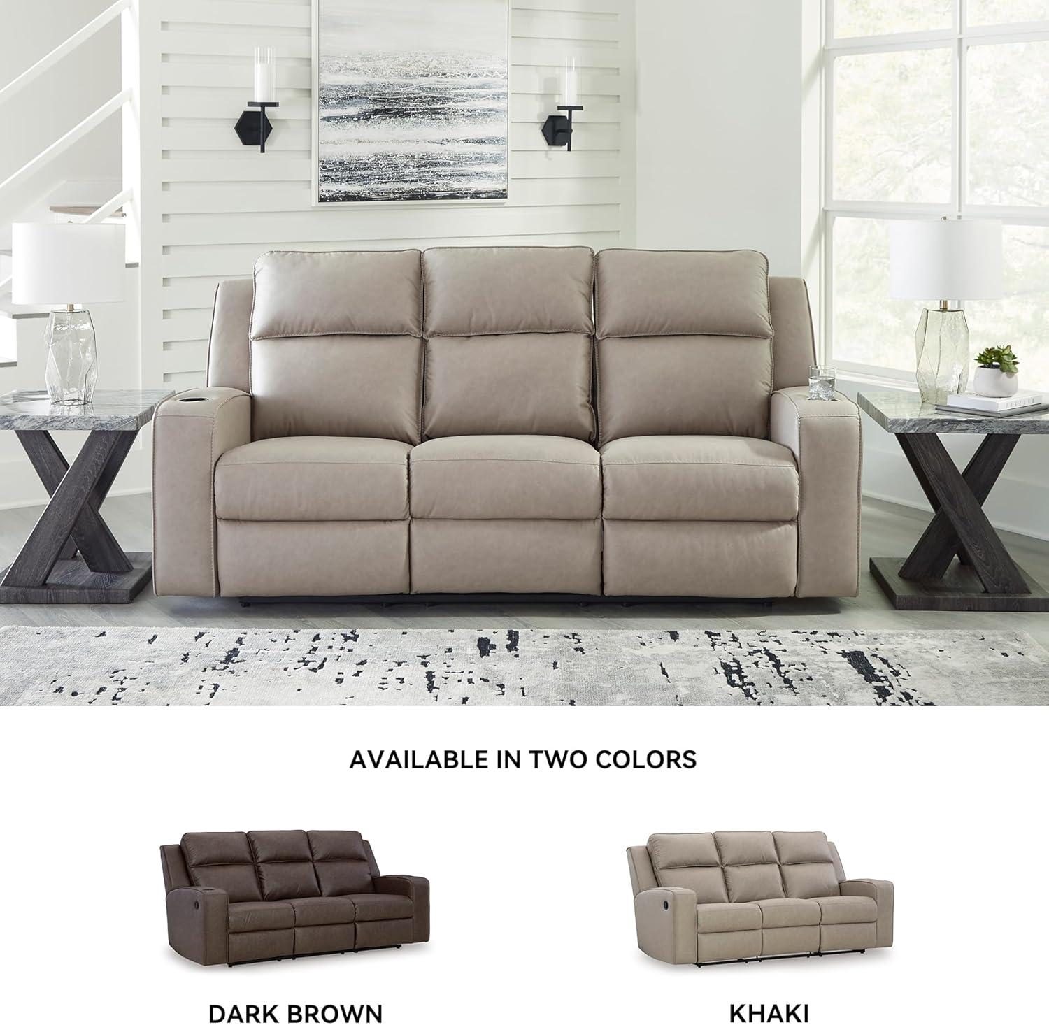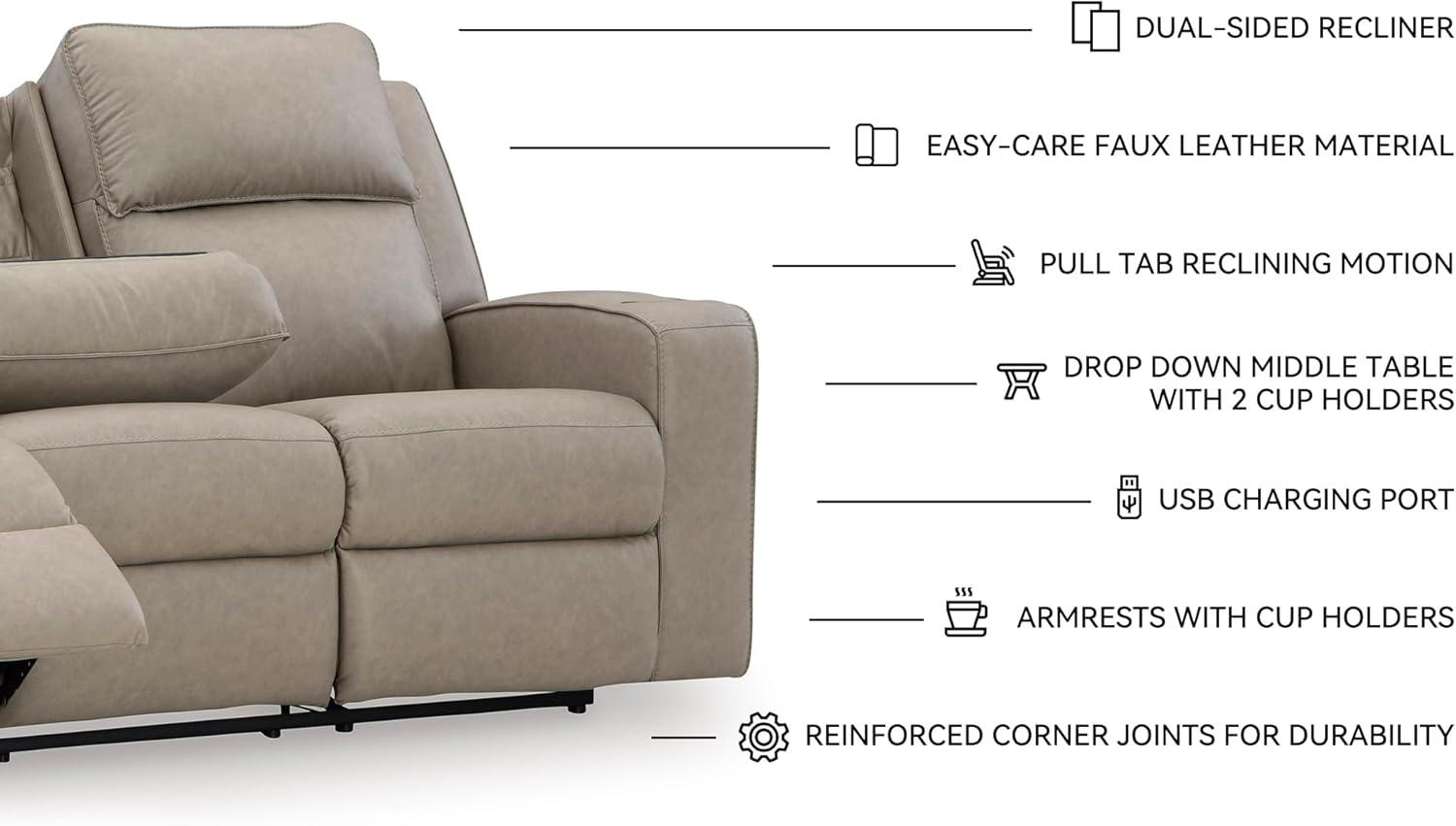 Signature Design by Ashley Lavenhorne Modern Faux Leather Manual Reclining Sofa with Drop Down Table, Cup Holders and USB Ports, Dark Brown(Beige)
