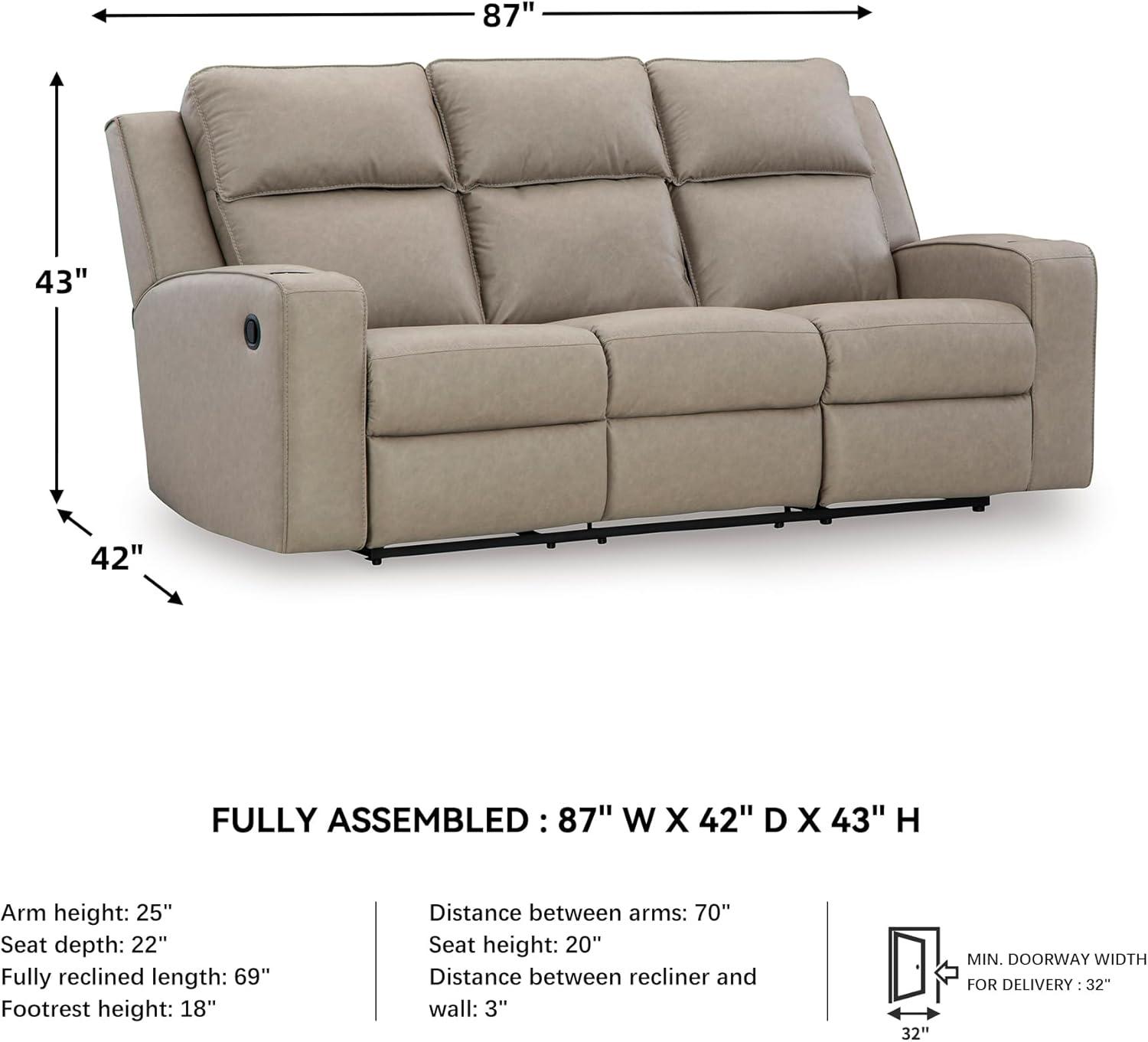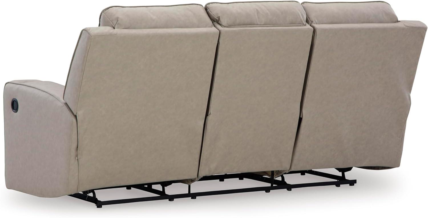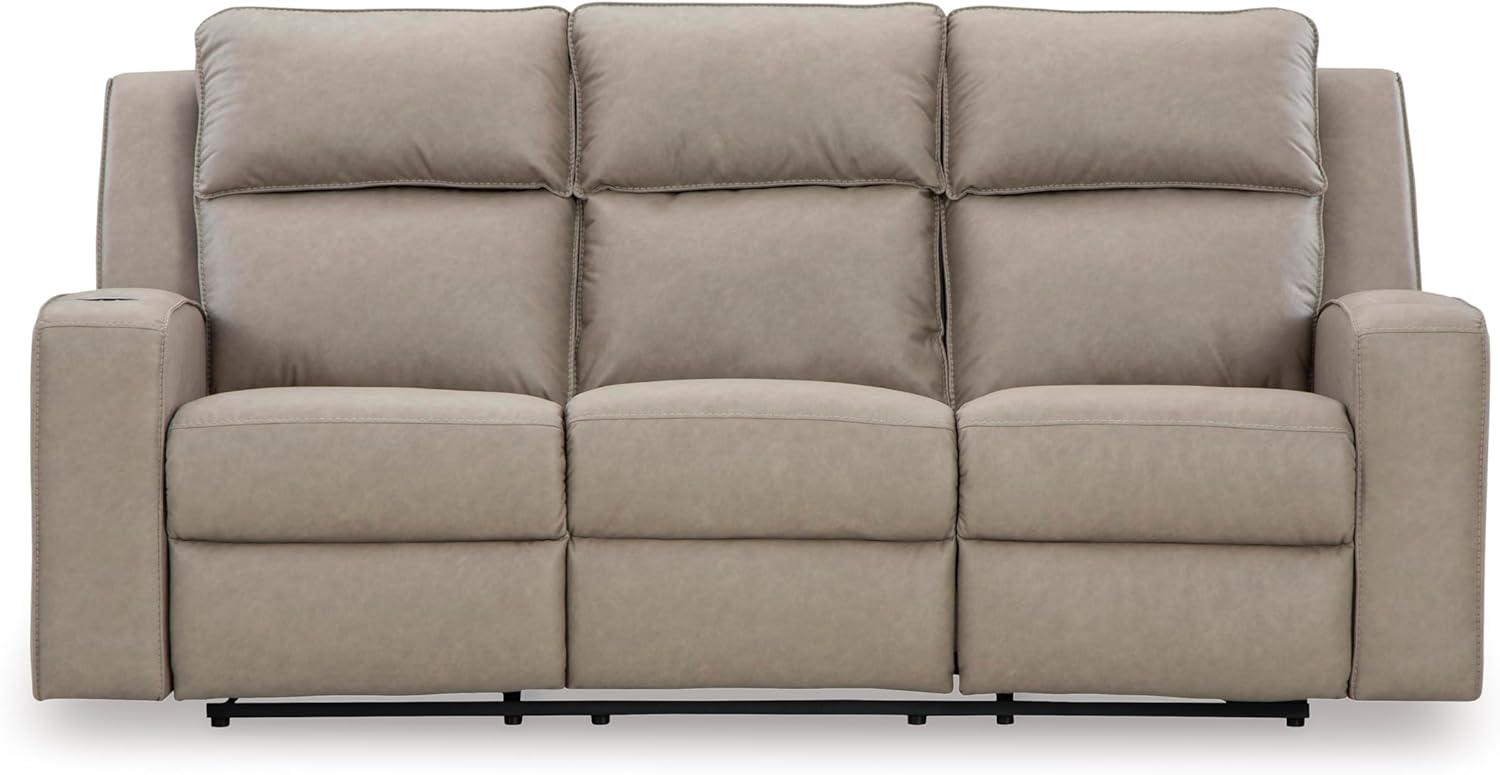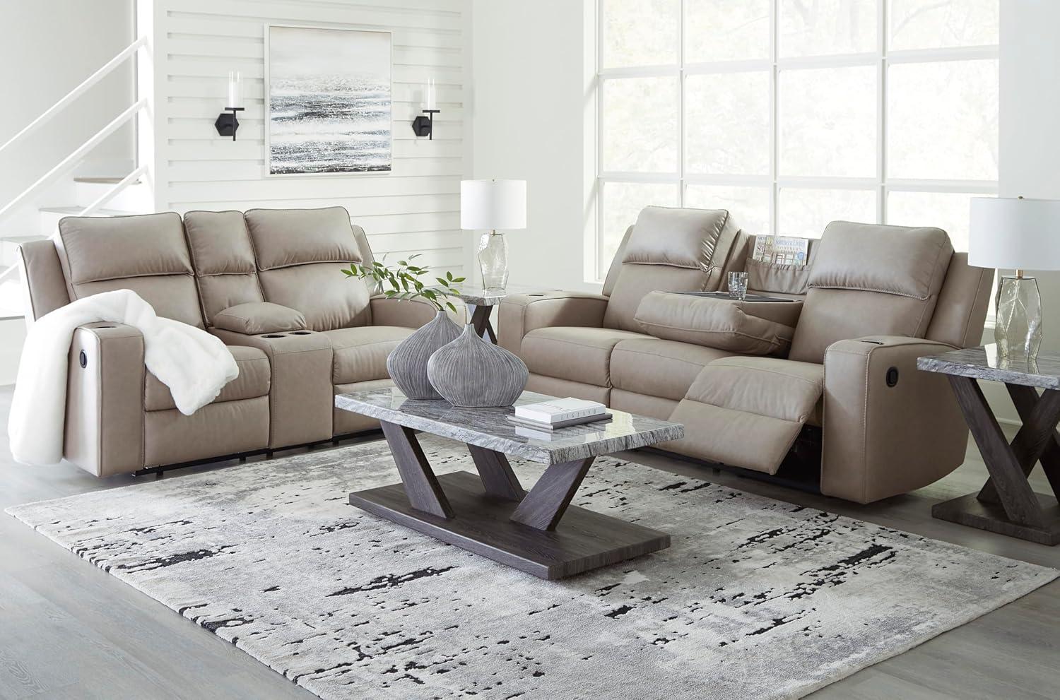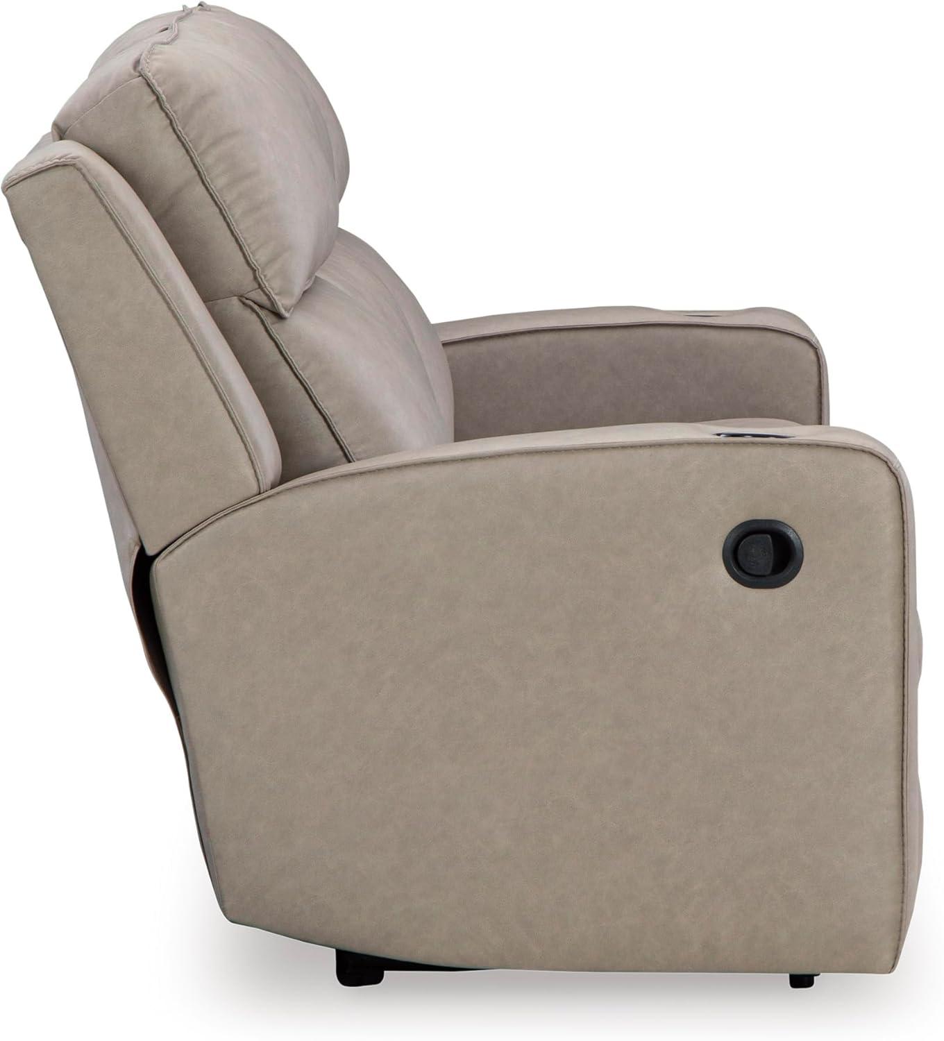 Signature Design by Ashley Lavenhorne Modern Faux Leather Manual Reclining Sofa with Drop Down Table, Cup Holders and USB Ports, Dark Brown(Beige)