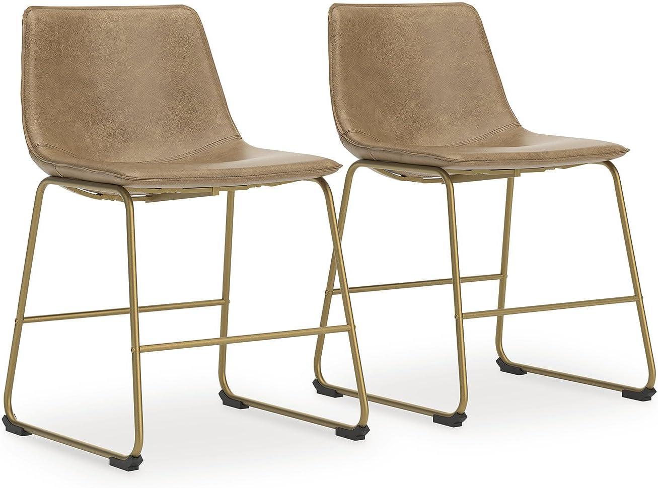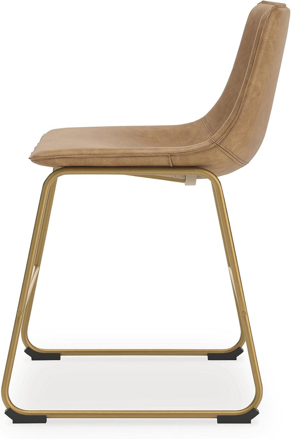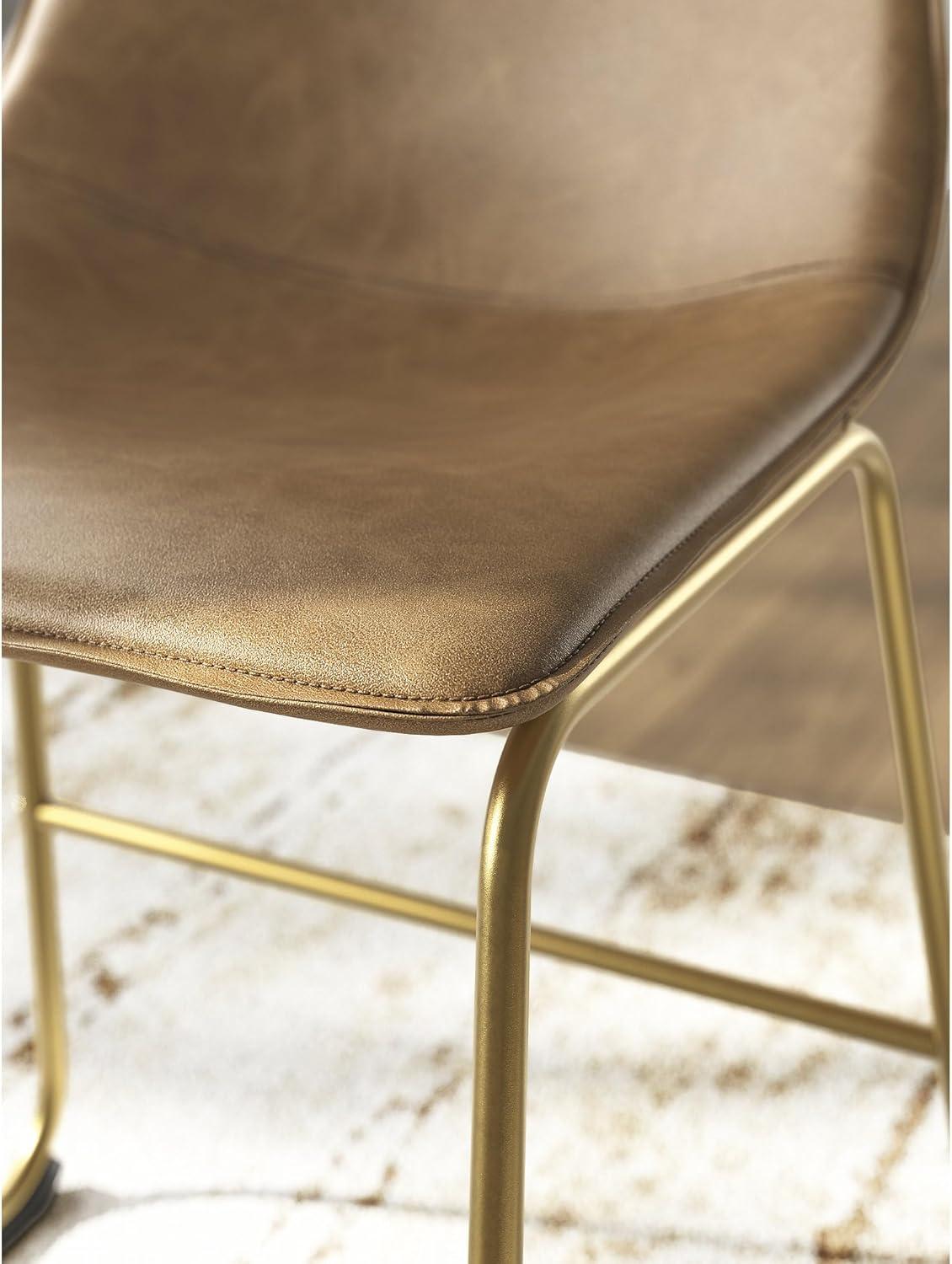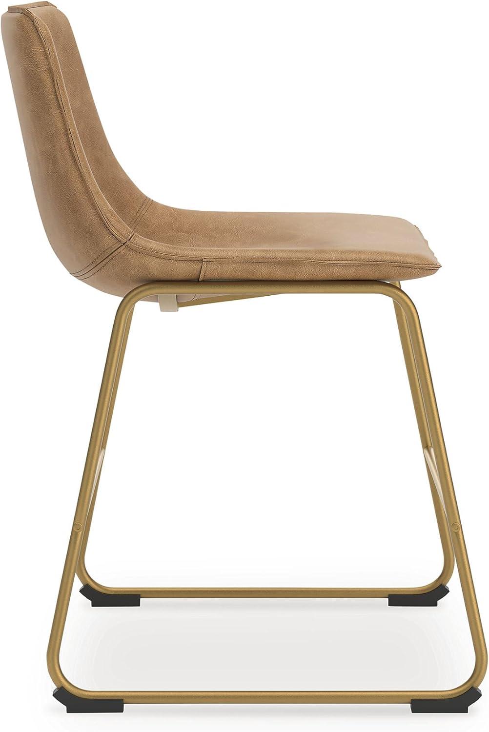 Signature Design by Ashley Lexadine Contemporary Upholstered Faux Leather Dining Chair, Set of 2, Light Brown & Gold