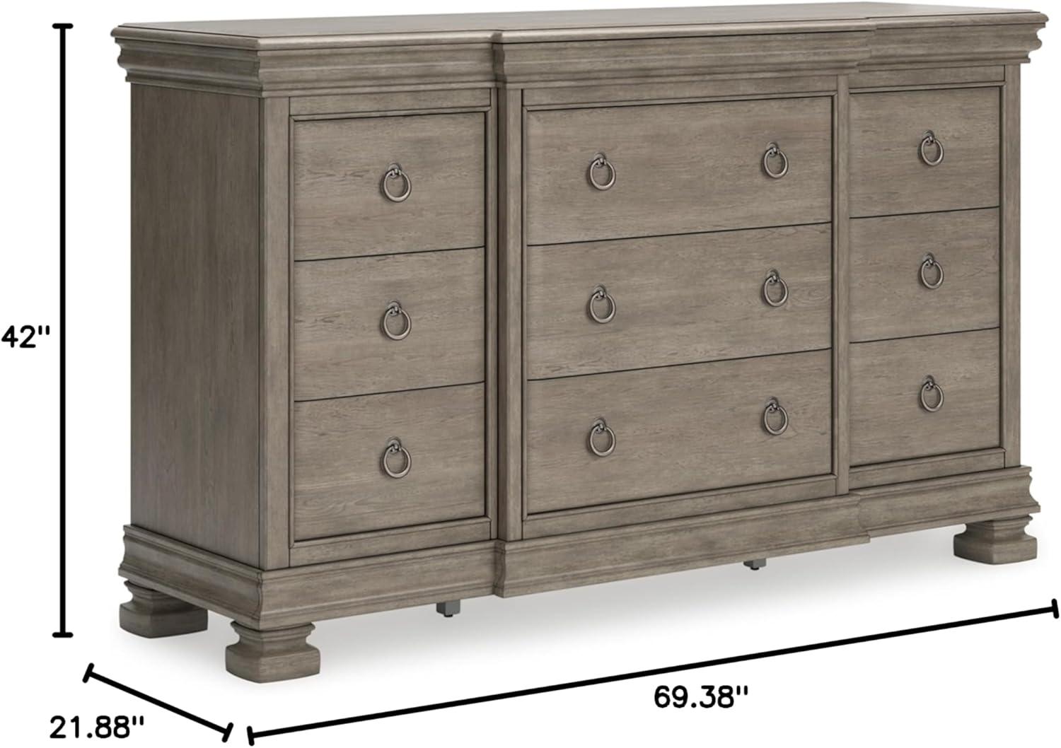 Signature Design by Ashley Lexorne Traditional 7 Drawer Dresser with 1 Jewelry Tray and Felt-lined Top Drawer for Bedroom, Gray(7 Drawer Dresser)