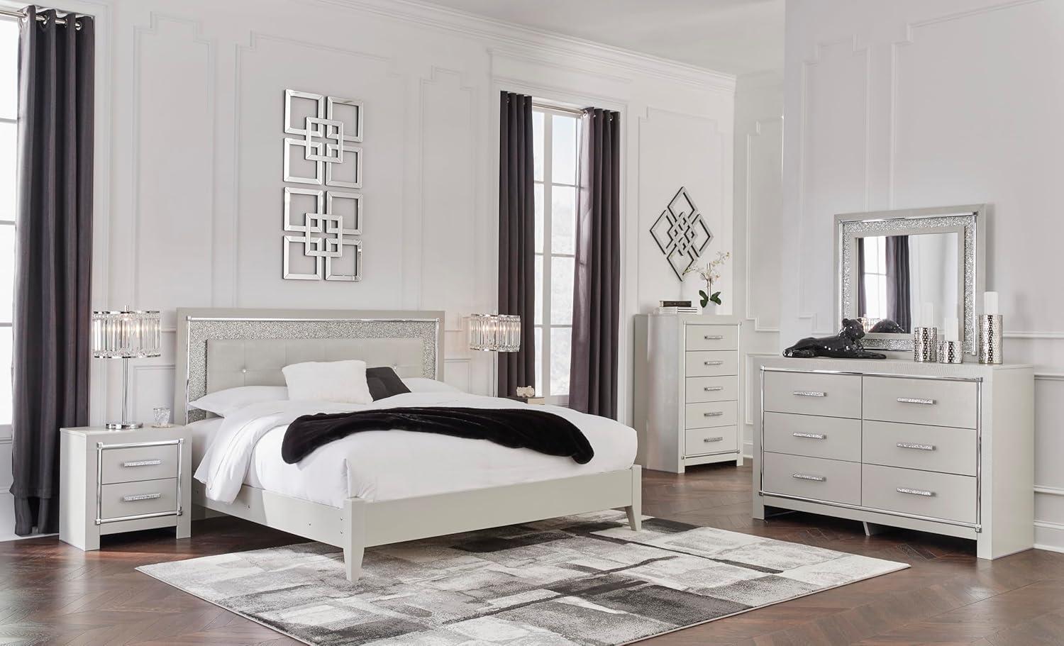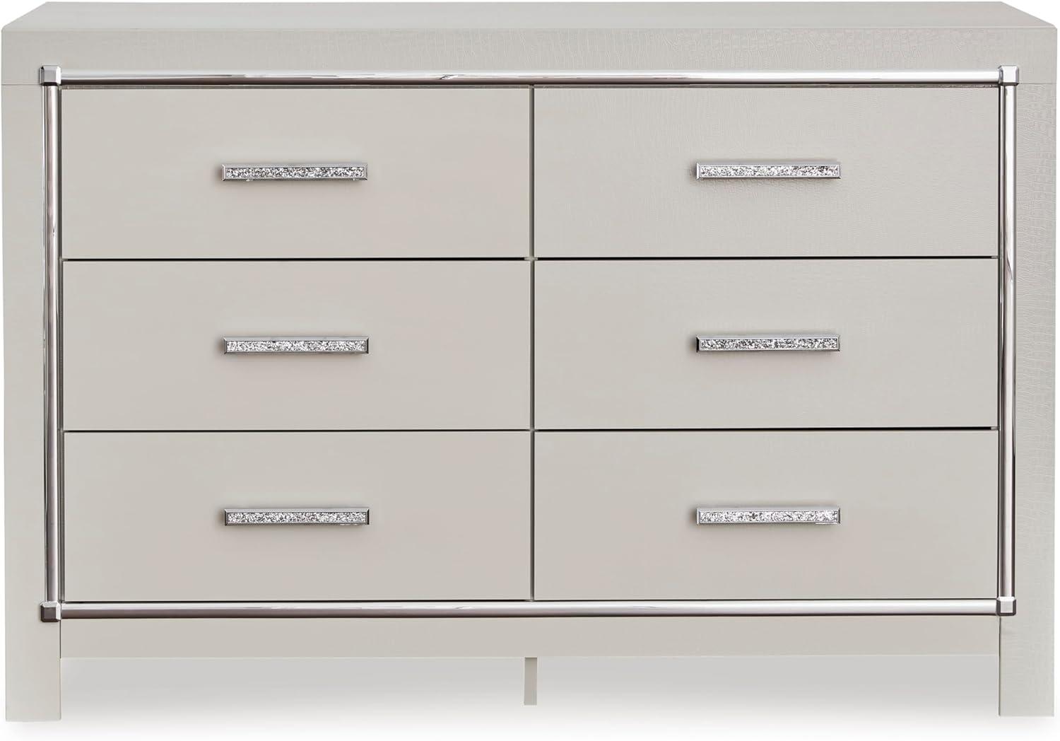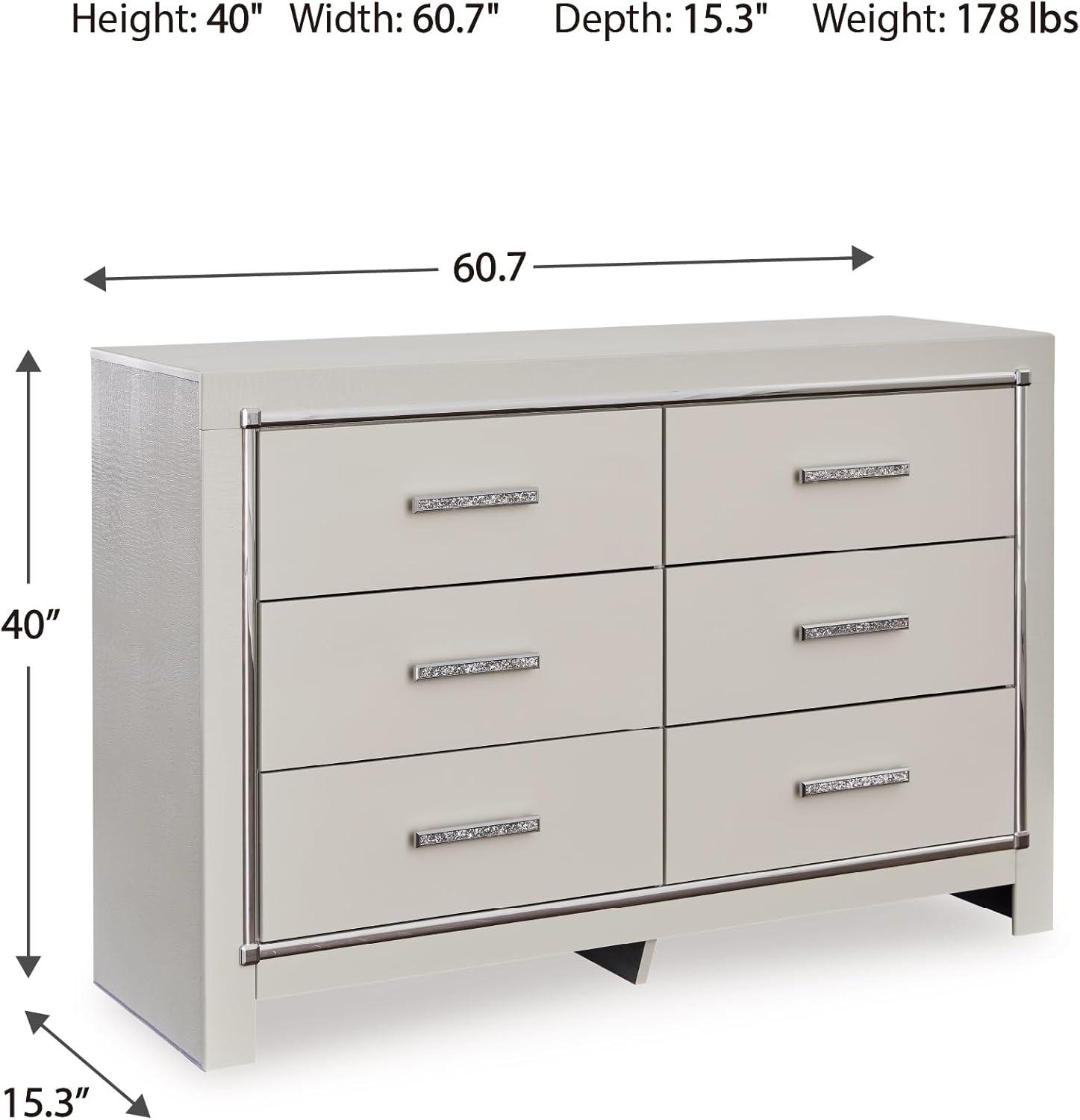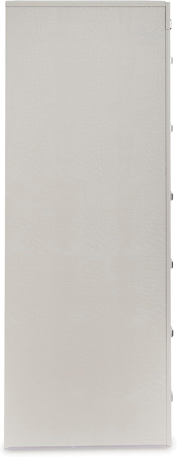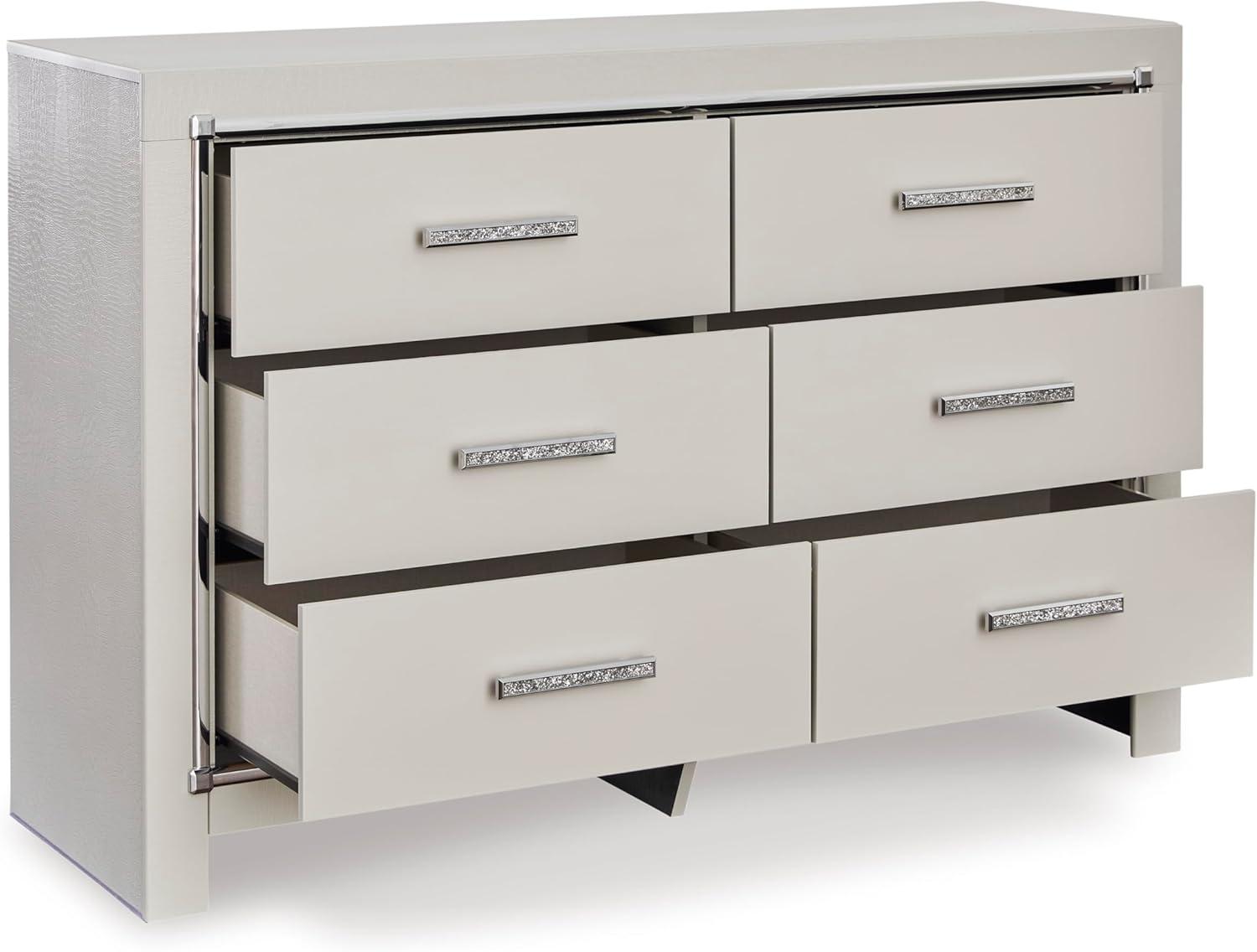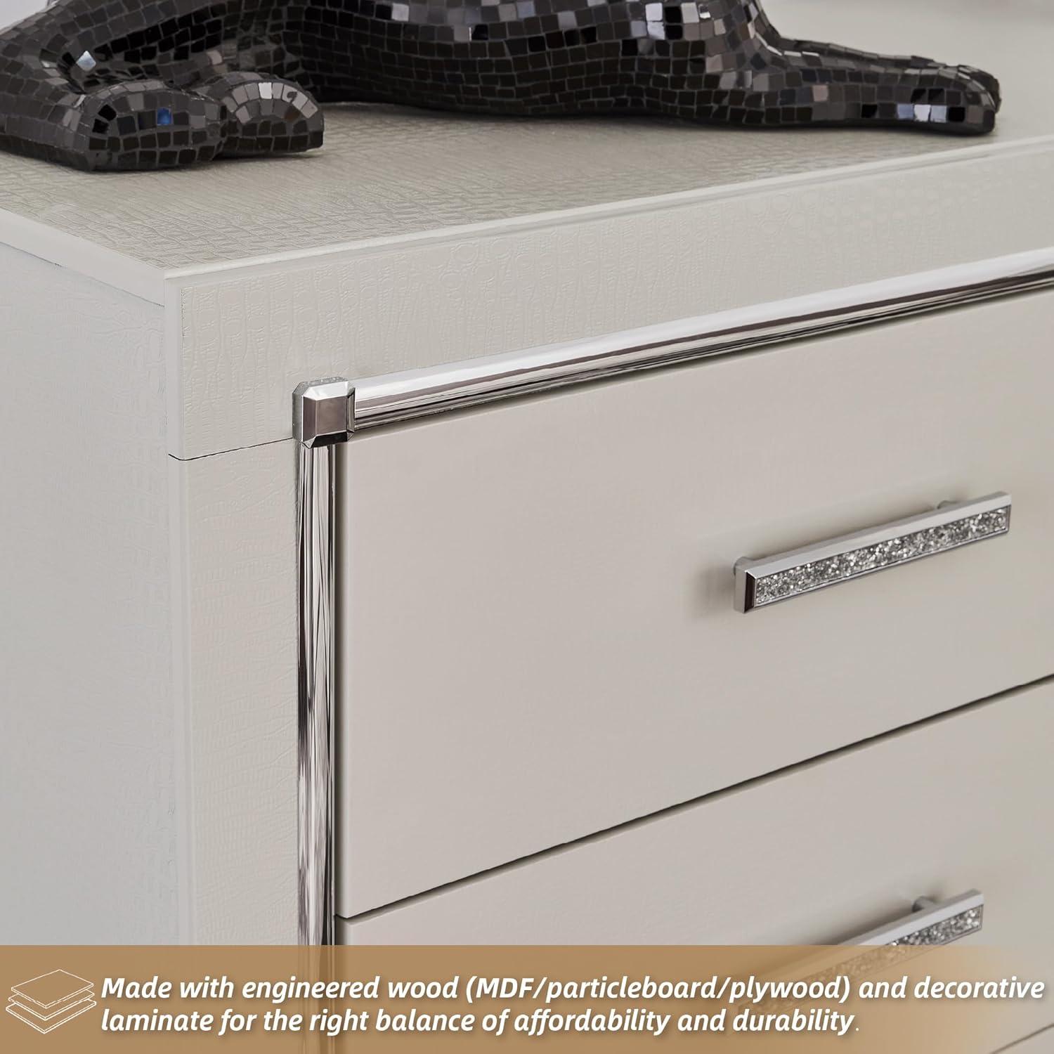 Signature Design by Ashley Lodanna Modern Glam 5 Drawer Chest, Faceted Chrome-tone Pulls and Accents, Wood, 33.75″ Wide x 15.75″ Deep x 51″ High, Gray(Chrome)