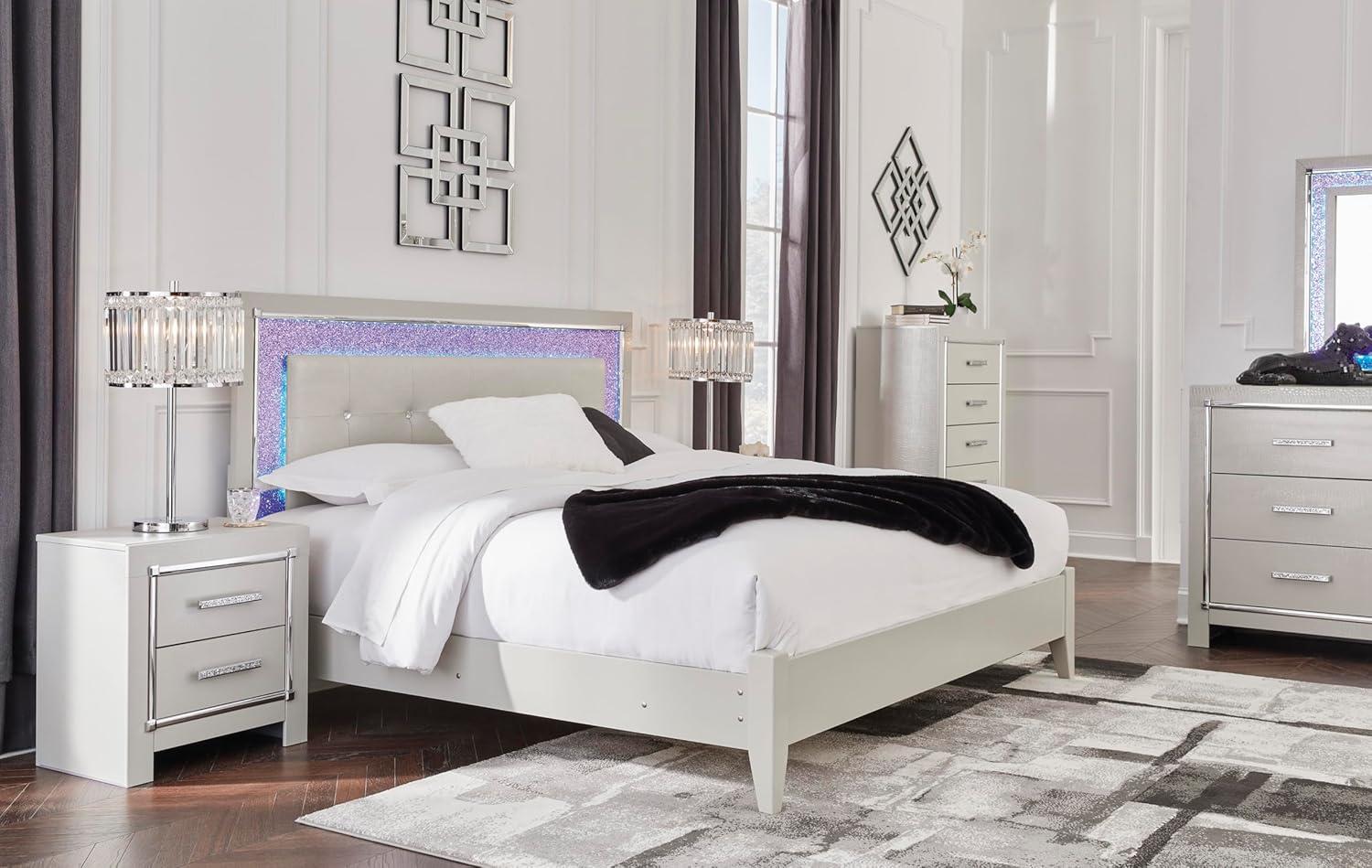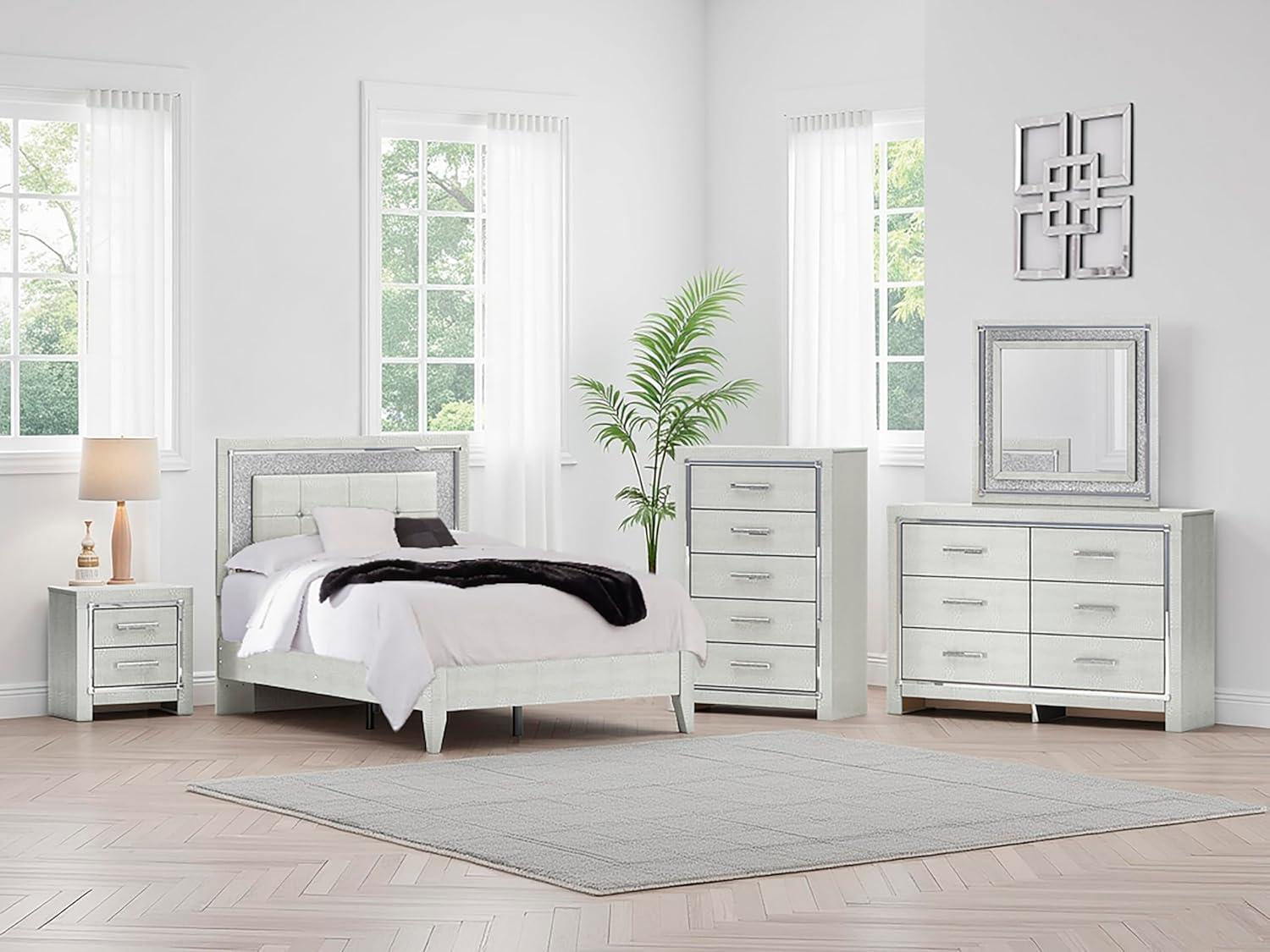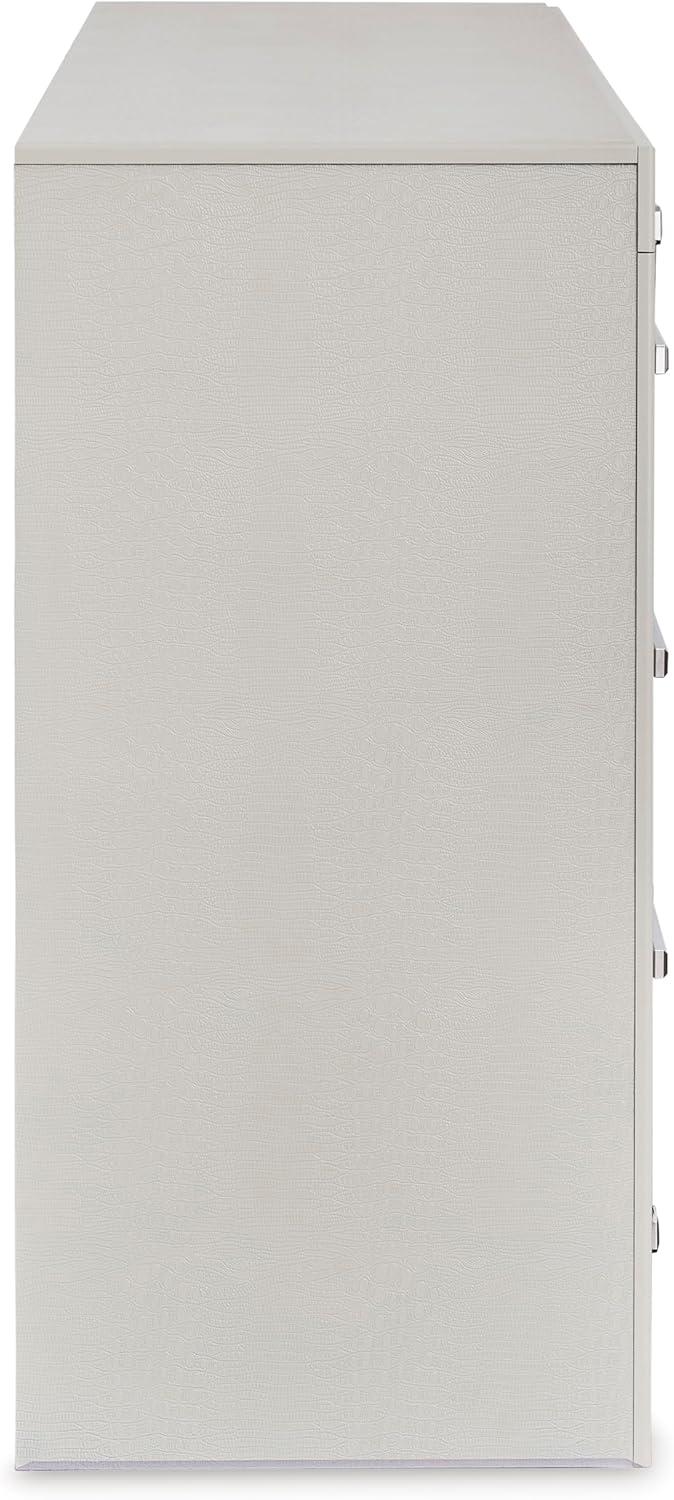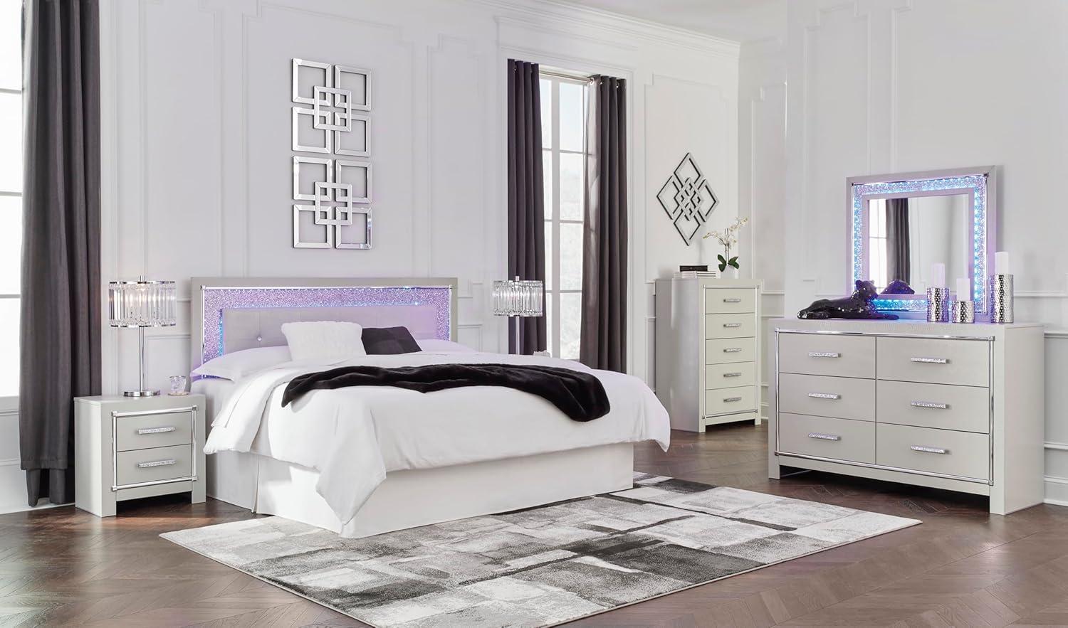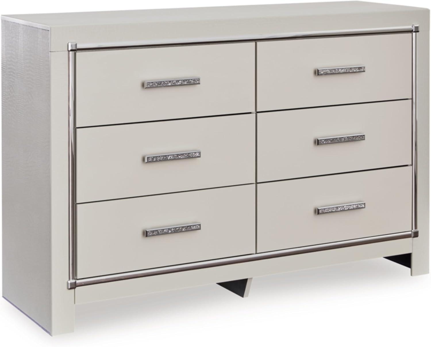 Signature Design by Ashley Lodanna Modern Glam 5 Drawer Chest, Faceted Chrome-tone Pulls and Accents, Wood, 33.75″ Wide x 15.75″ Deep x 51″ High, Gray(Chrome)