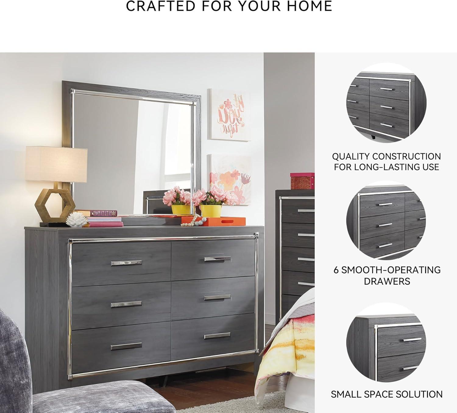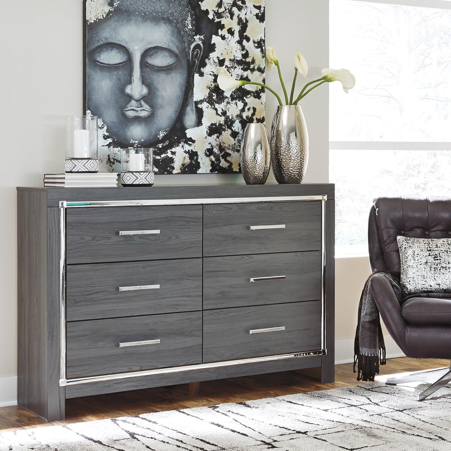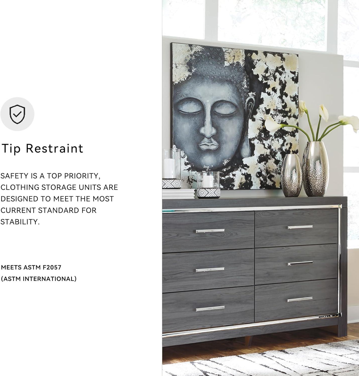Signature Design by Ashley Lodanna Modern Glam 6 Drawer Dresser with Faceted Chrome Accents, Gray Wood Grain(Grey)