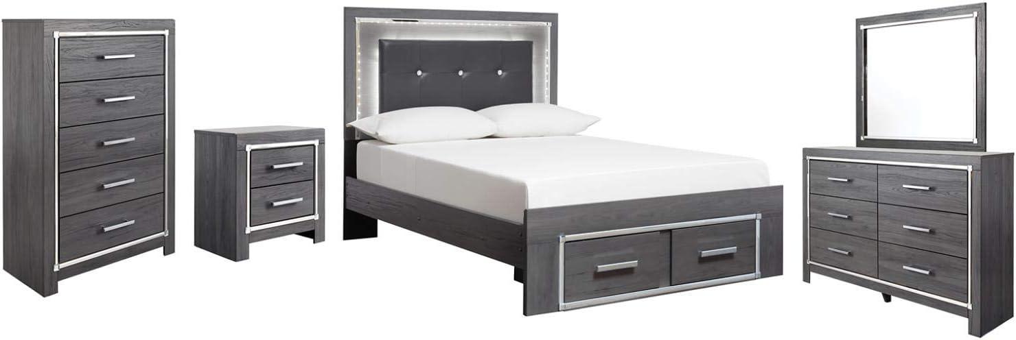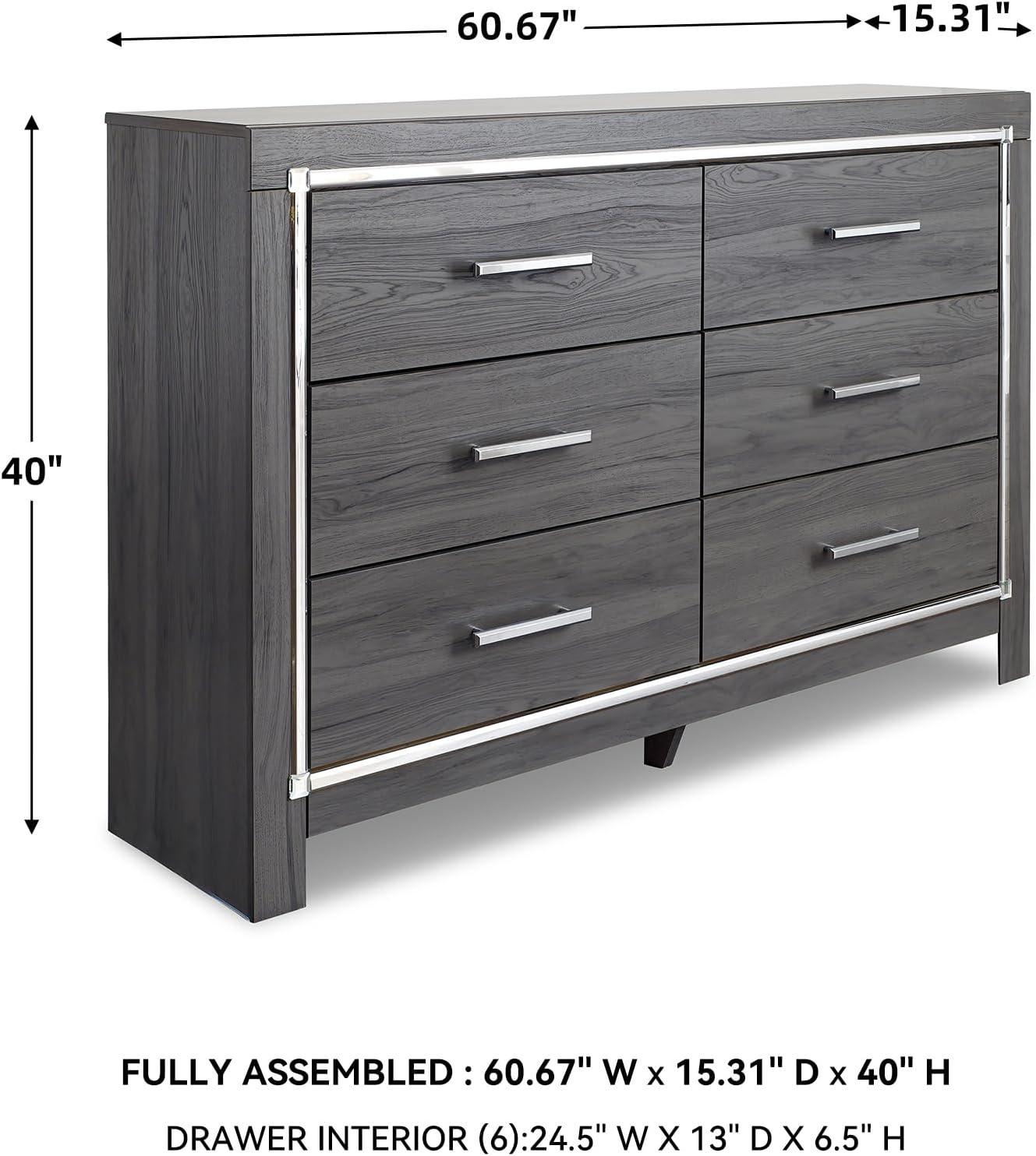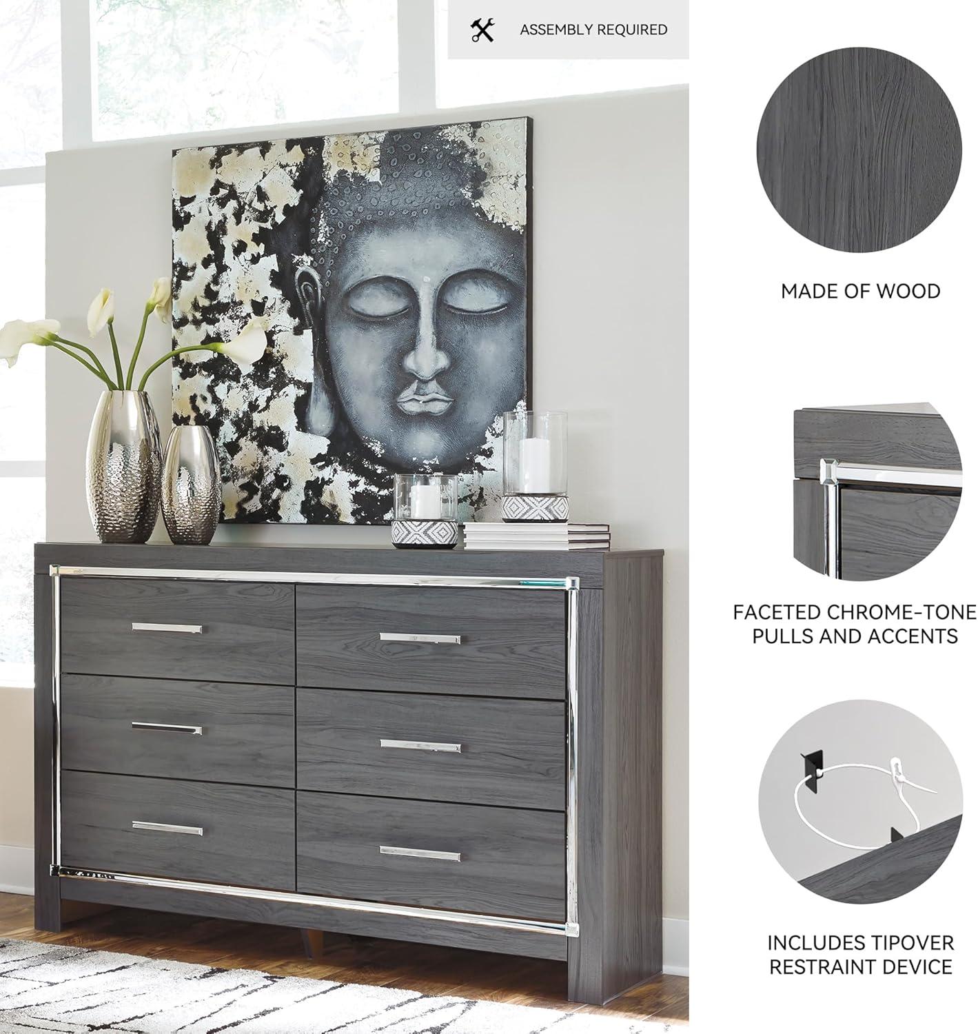 Signature Design by Ashley Lodanna Modern Glam 6 Drawer Dresser with Faceted Chrome Accents, Gray Wood Grain(Grey)