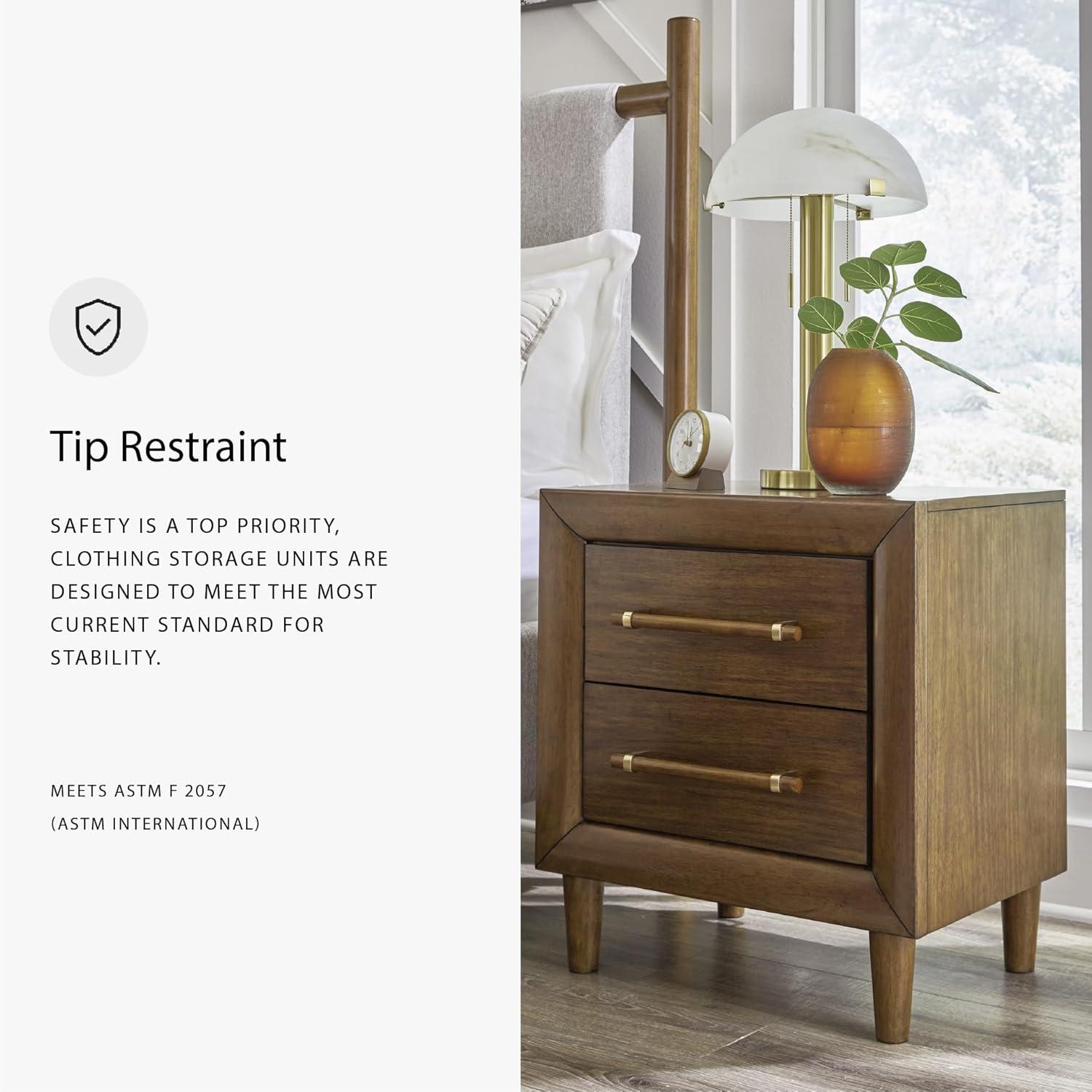Signature Design by Ashley Lyncott 2 Drawer Nightstand, Power Supply, USB-A and USB-C Ports, Hardwood Solids, 24.63″ W x 17″ D x 26.88″ H, Medium Brown