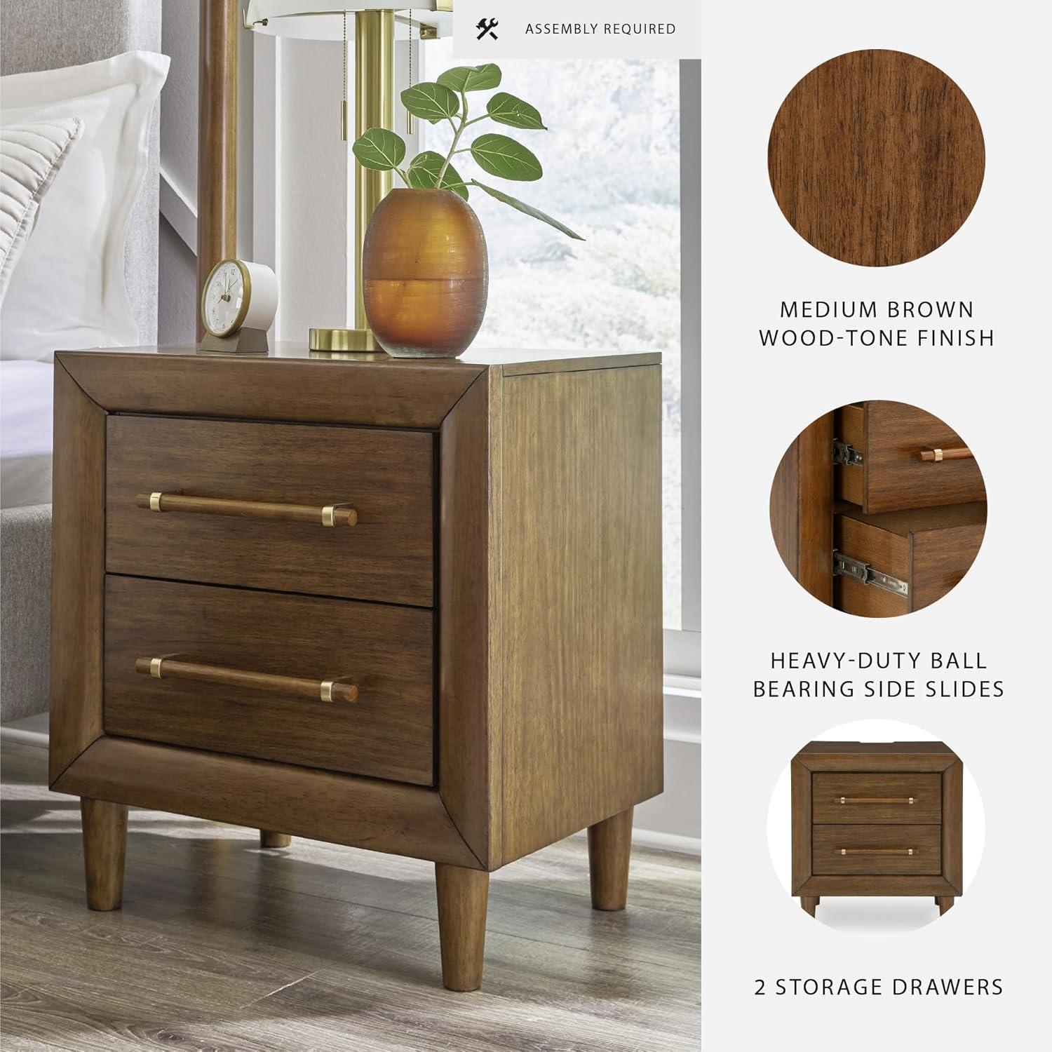 2-DRAWER NIGHTSTAND: This nightstand is perfect for contemporary or mid-century interiors. Its wood-tone finish is versatile and timeless. Drawers with exquisite framing and elongated wooden pulls