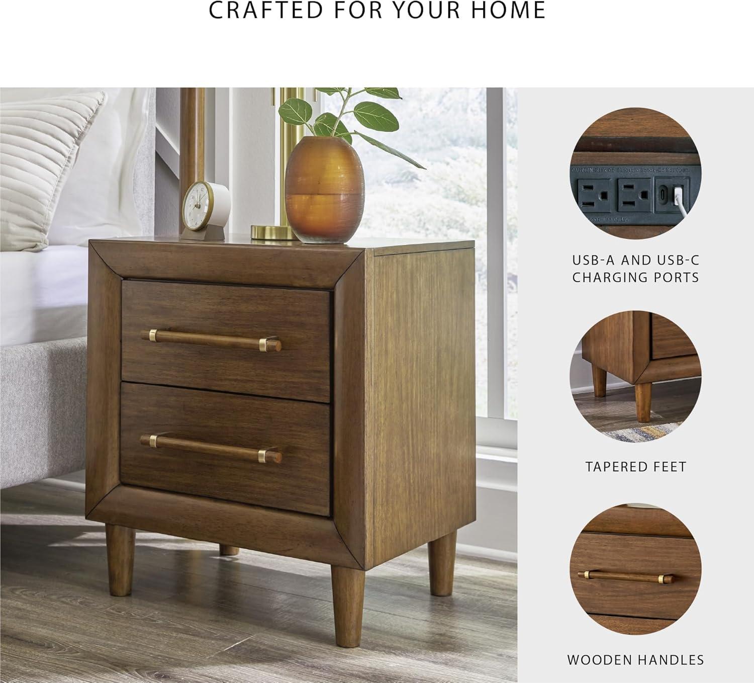 This nightstand is perfect for contemporary or mid-century interiors. Its wood-tone finish is versatile and timeless. Drawers with exquisite framing and elongated wooden pulls enhance the overall aesthetic, while USB charging keeps you connected. Whether you want to refresh your entire bedroom or add a few key pieces, this is the ideal choice.