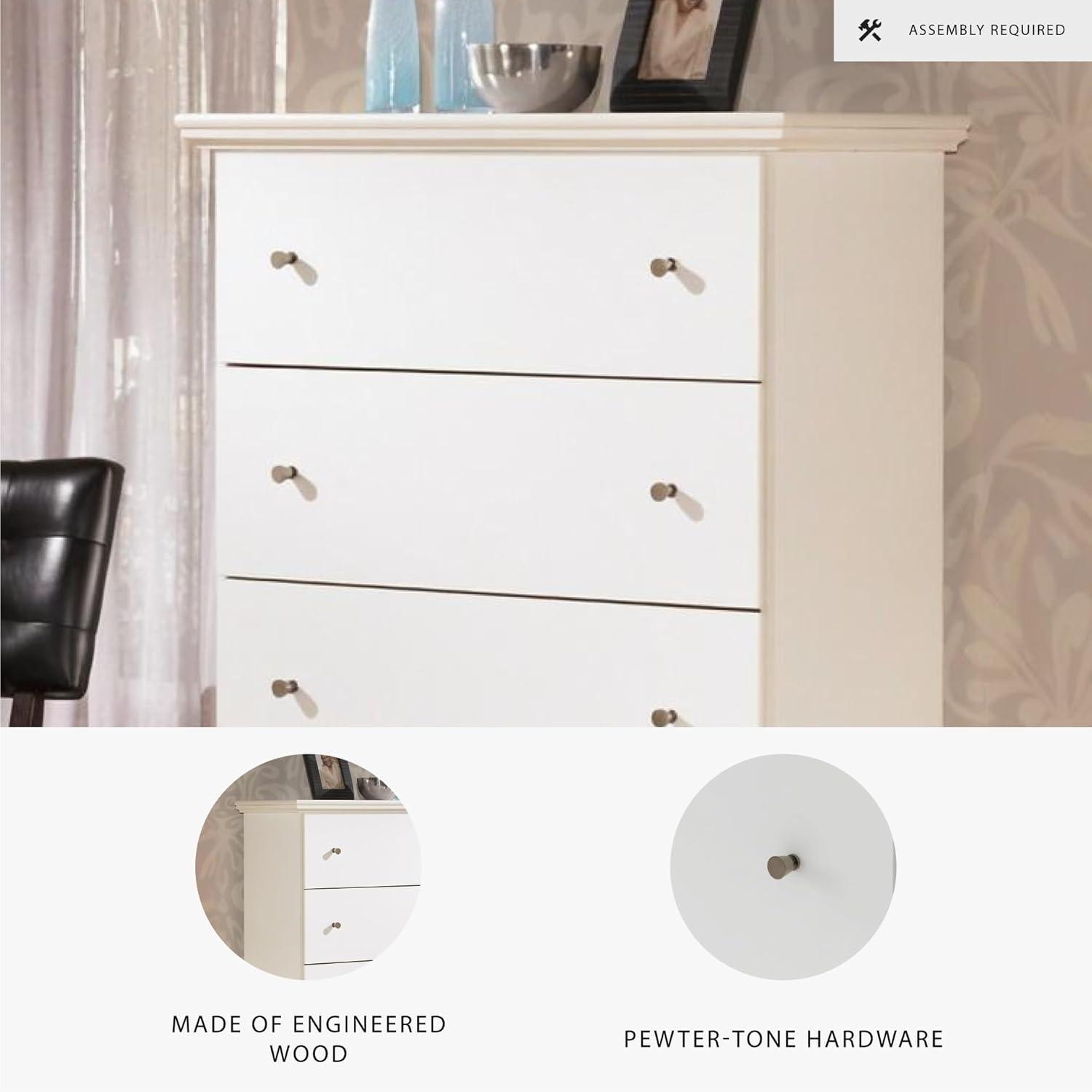 Clean, simple and beautiful. This chest provides ample space for clothing, accessories and spare bed linens. Pewter-tone knobs give a slightly industrial feel, making this piece at home among eclectic decor. Whether you need storage space for clothes, linens or toys, you're sure to find the right fit. Your dream bedroom is closer than you think–our wide selection of finishes and features fulfill your decor needs, from casual to contemporary. And we go the extra mile to package, protect and deliver your purchase in a timely manner. Trust us to bring your space to life with furniture and decor that show off your style and personality.