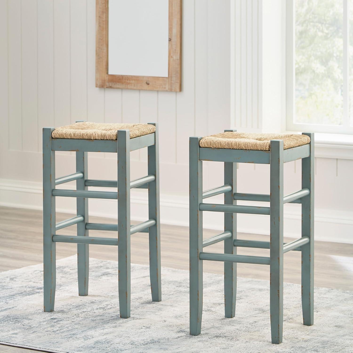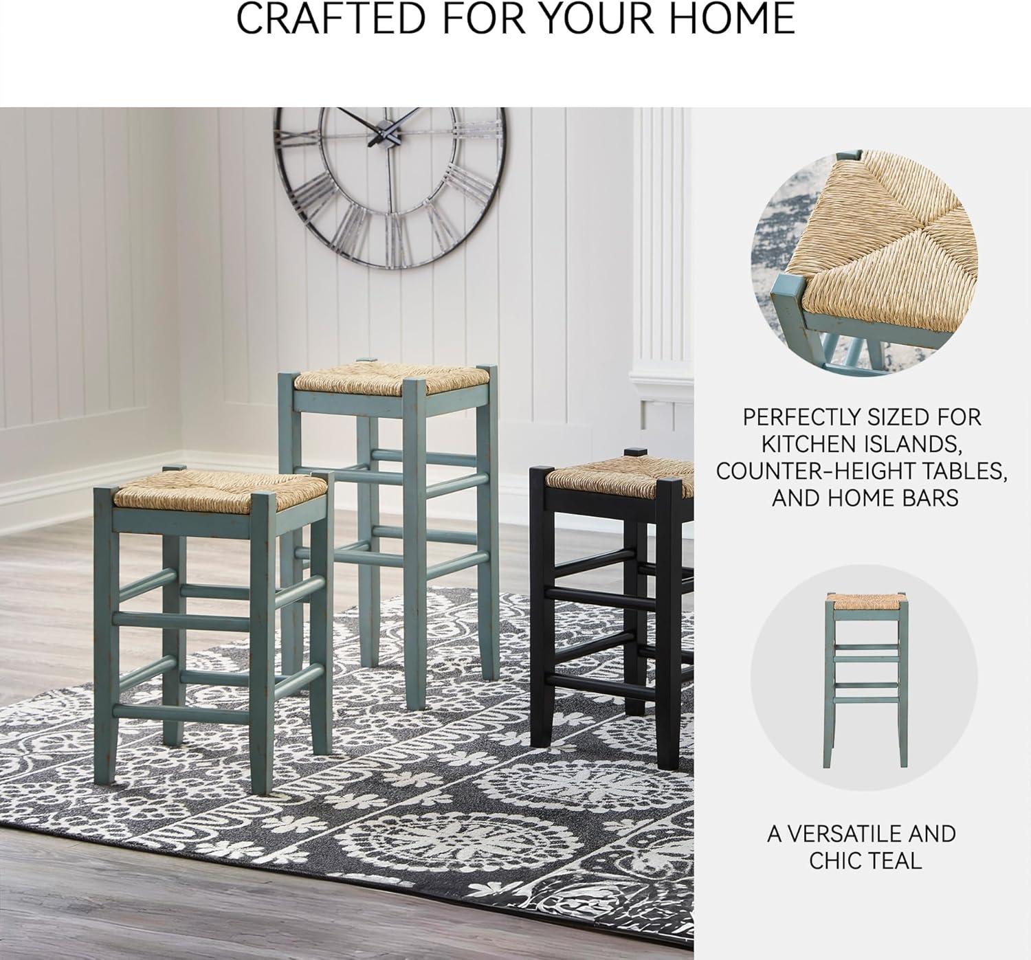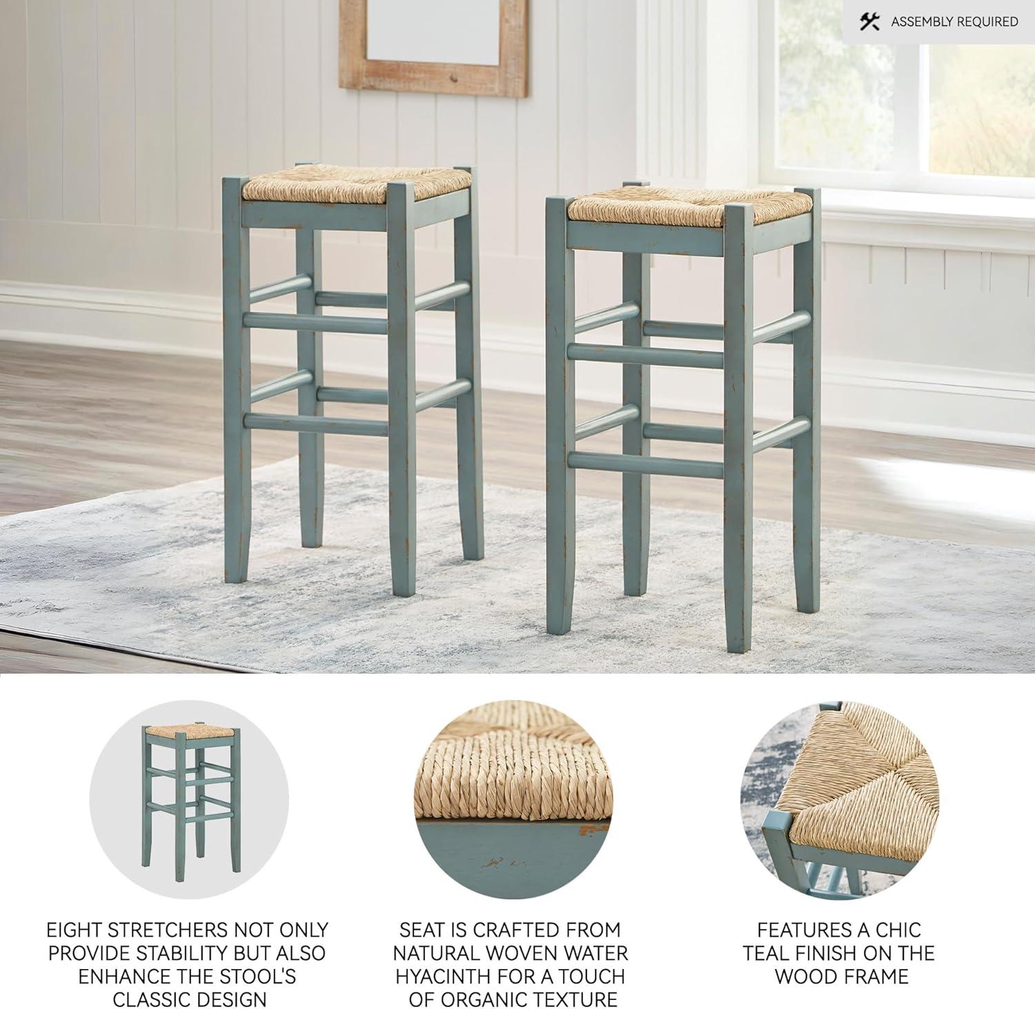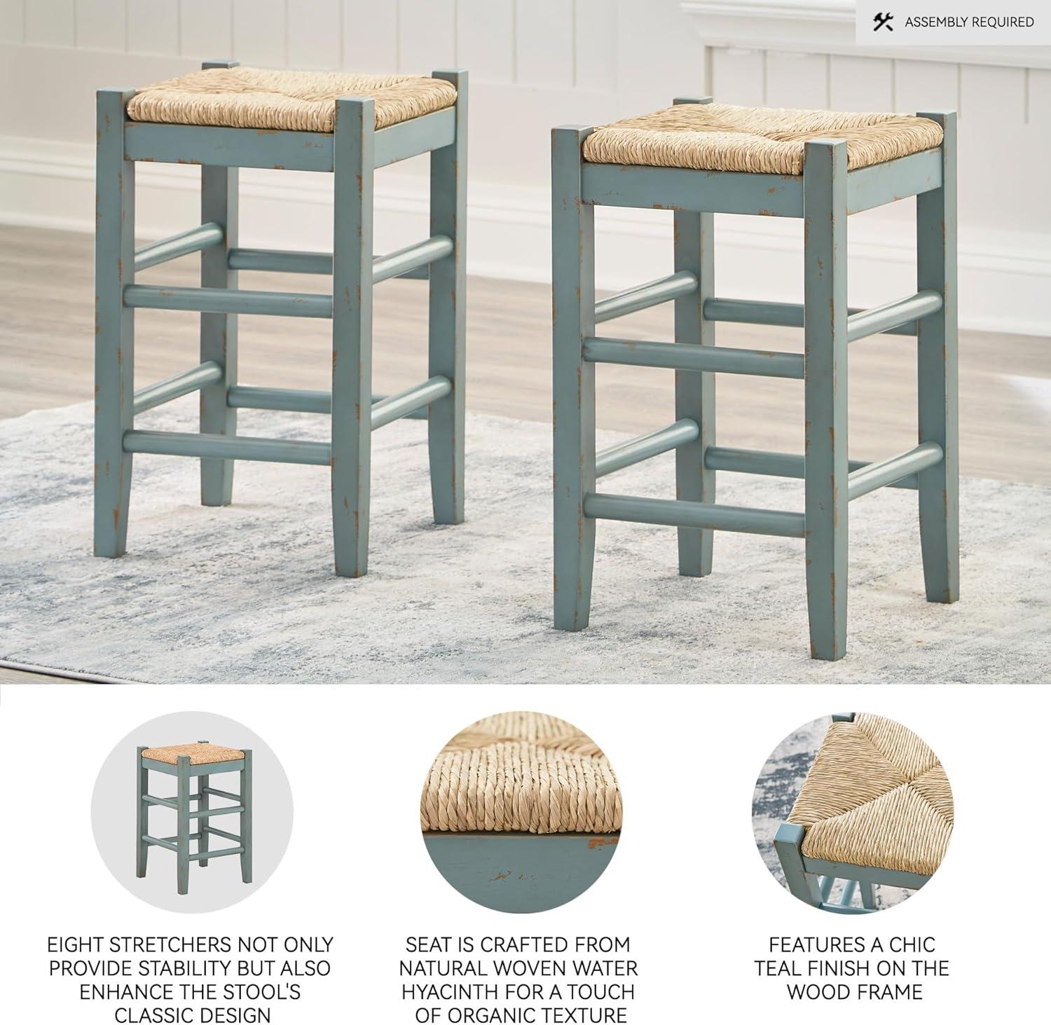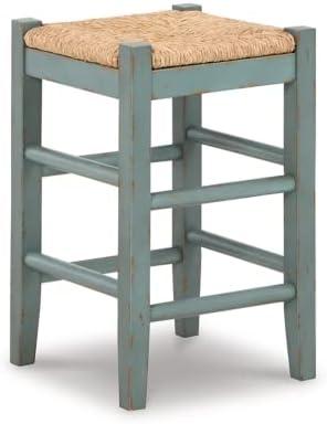 Signature Design by Ashley Mirimyn Farmhouse 23.63″ Counter Height Bar Stool with Woven Wicker Seats, 2 Count, Green & Light Brown(Teal)