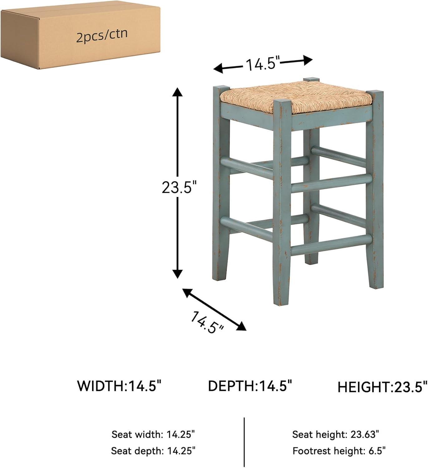Bring the vintage casual vibe you love to the kitchen with this counter height bar stool. A stylish seating solution in a blue rubbed-through finish, this charming stool completes your dining space with ease. The woven synthetic wicker seat and wood stretchers create an effortlessly beautiful look with endless possibilities. From the minimalist to the brash, we offer bar stools in a range of styles so you can always find the perfect piece for your space. Combining the latest trends and technology with unmatched prices and quality, we're your one-stop destination for dining furniture, entertaining essentials and more. And we go the extra mile to package, protect and deliver your purchase in a timely manner. The trusted source for stylish furniture, lighting, rugs, accessories and mattresses for every taste and budget, our wide assortment brings your space to life with furniture and decor that show off your style personality.