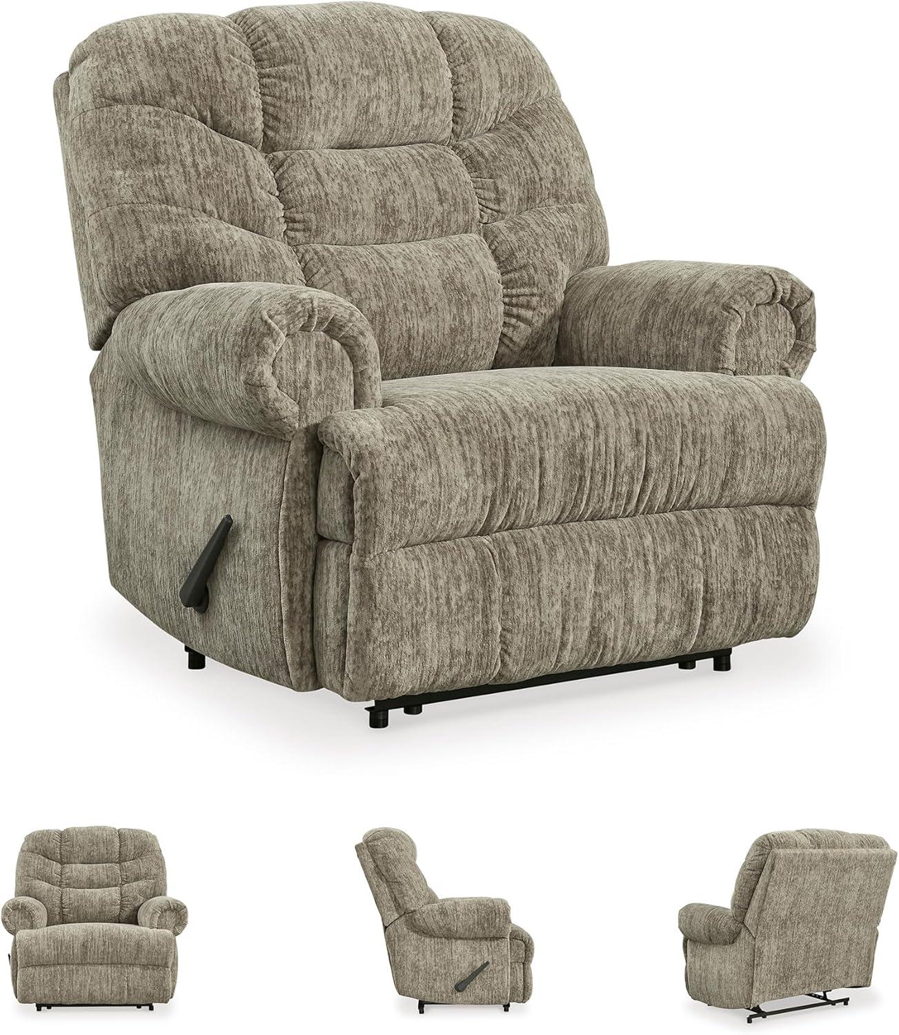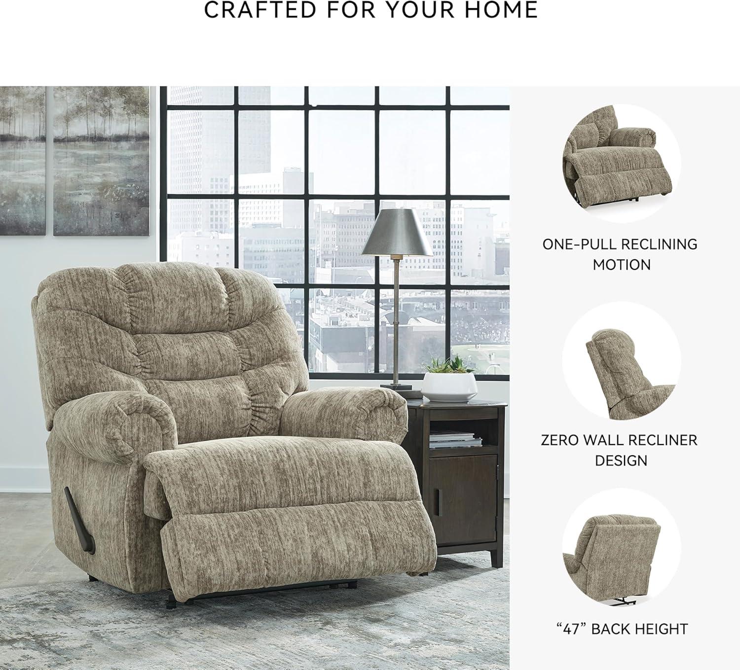 Signature Design by Ashley Movie Man Classic Tufted Velvet Manual Zero Wall Recliner, Dark Brown(Grey)