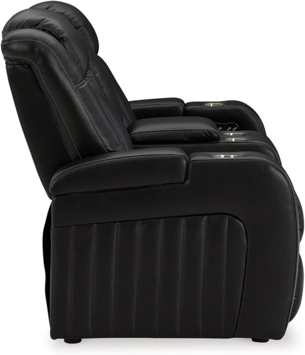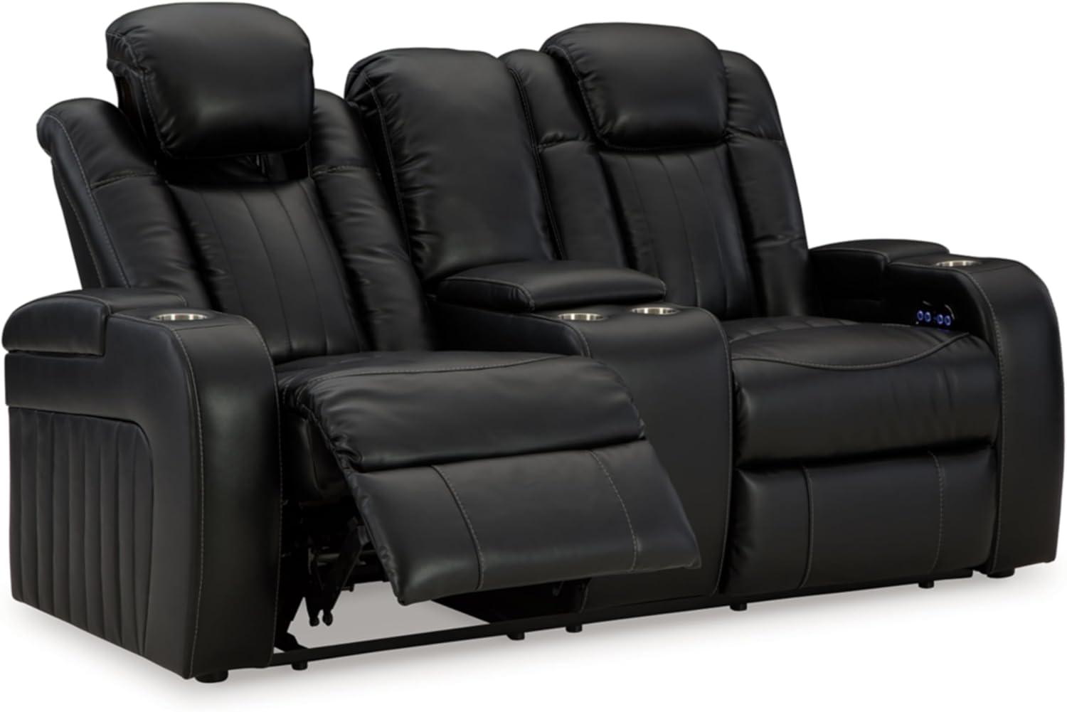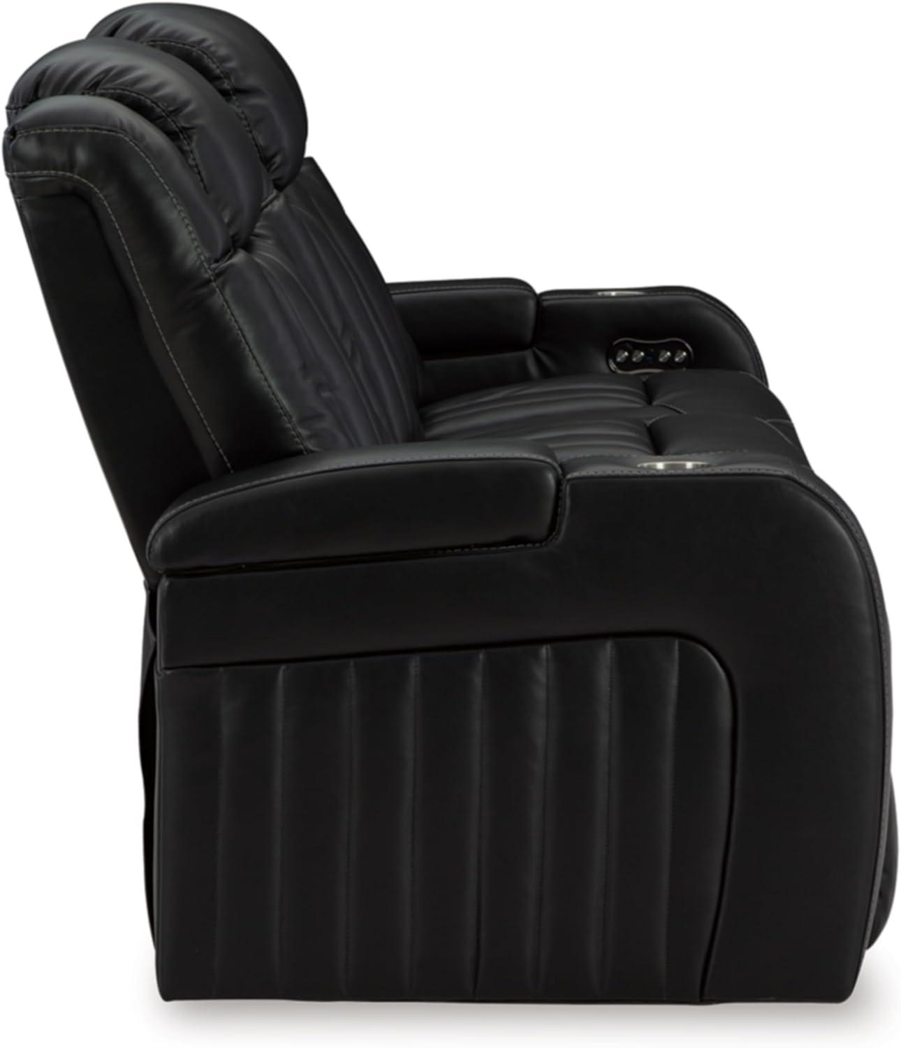Signature Design by Ashley Next-Gen DuraPella Power Reclining Sofa – Wireless & USB Charging, Zero-Gravity, Adjustable Headrest, Water-Repellent Faux Leather, Drop-Down Table, Beige/Brown, 86”(Black)