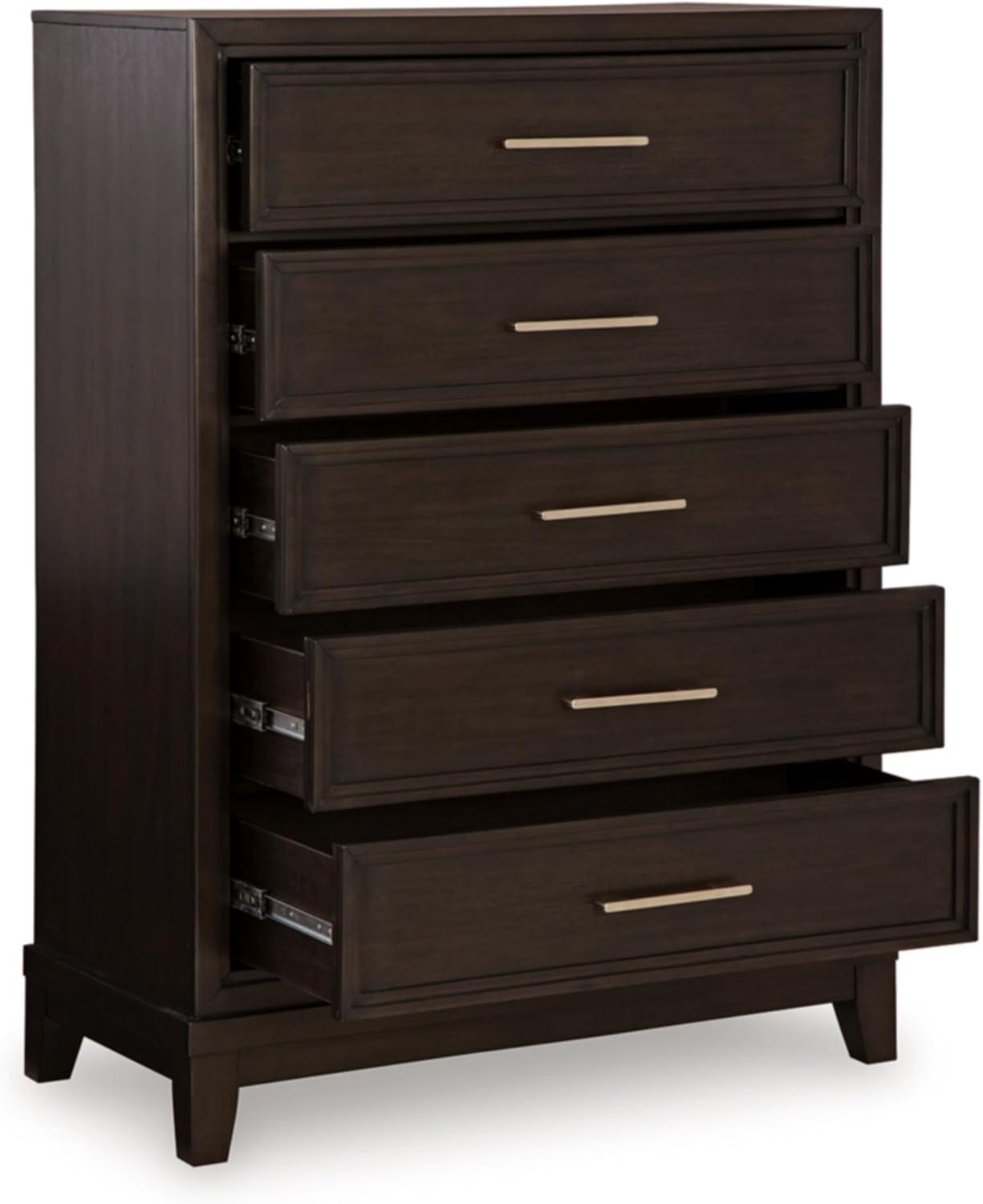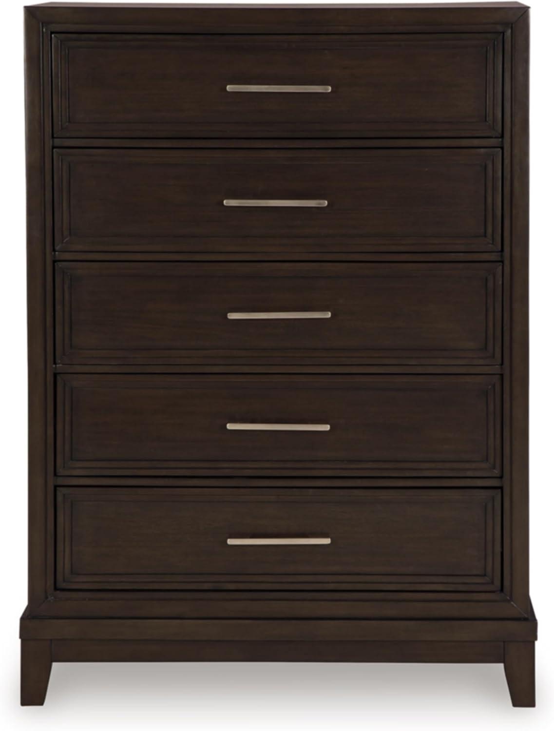 Signature Design by Ashley Neymorton Traditional 5-Drawer Chest of Drawers with Felt Lining, Dark Brown