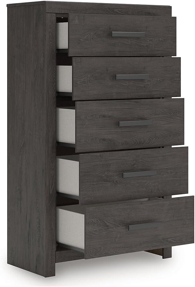 Signature Design by Ashley Prendonea Modern 5-Drawer Chest with Easy Glide and Safety Stop for Bedroom, Gray