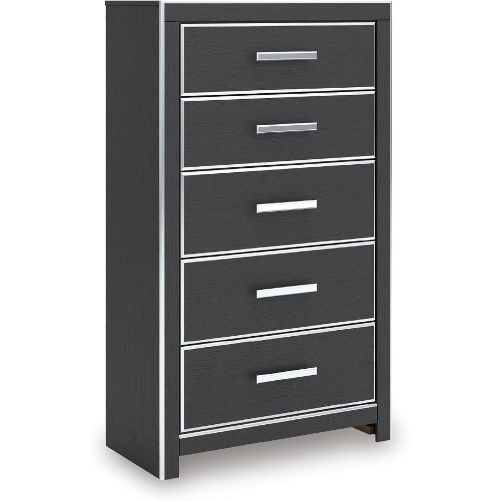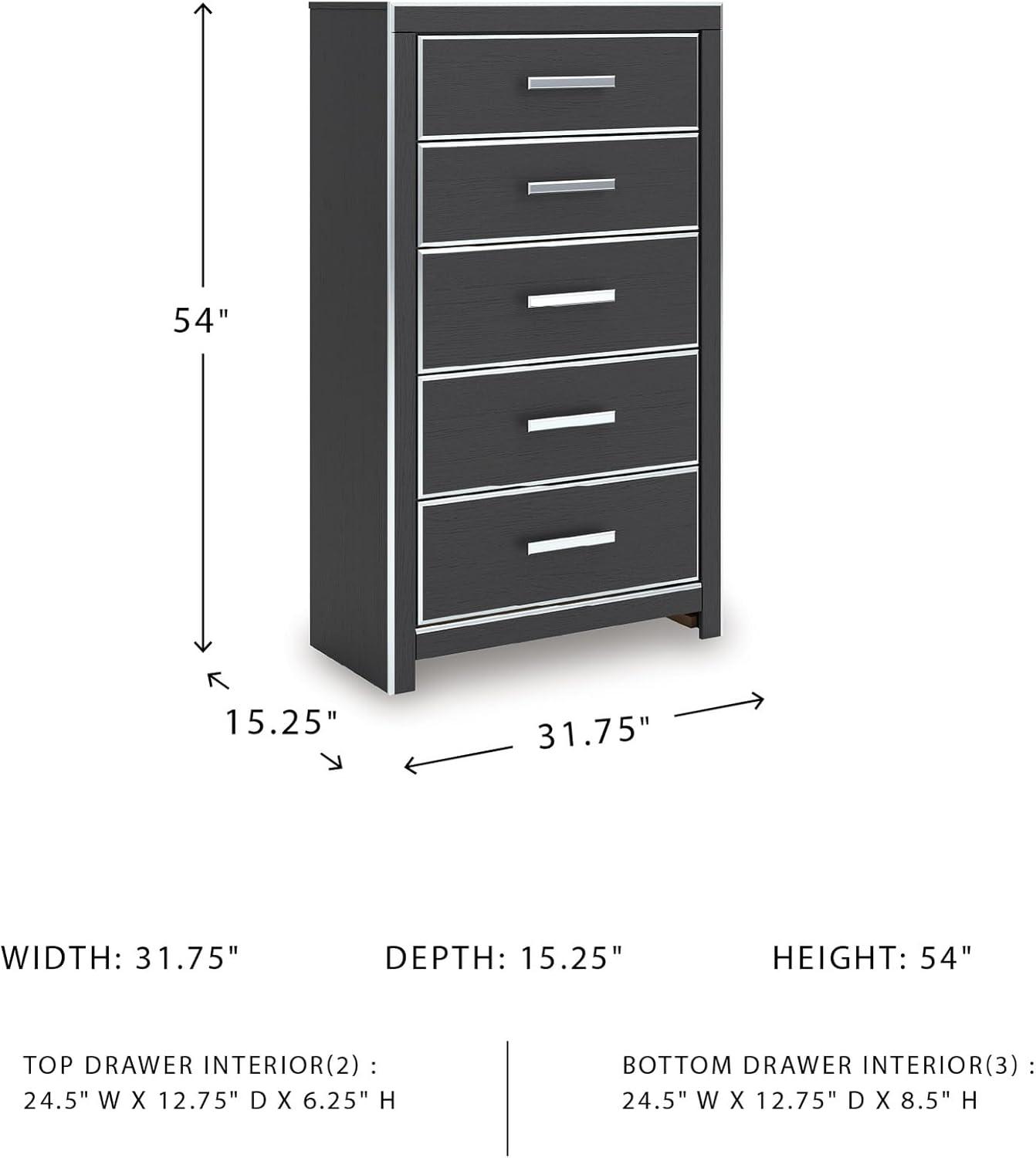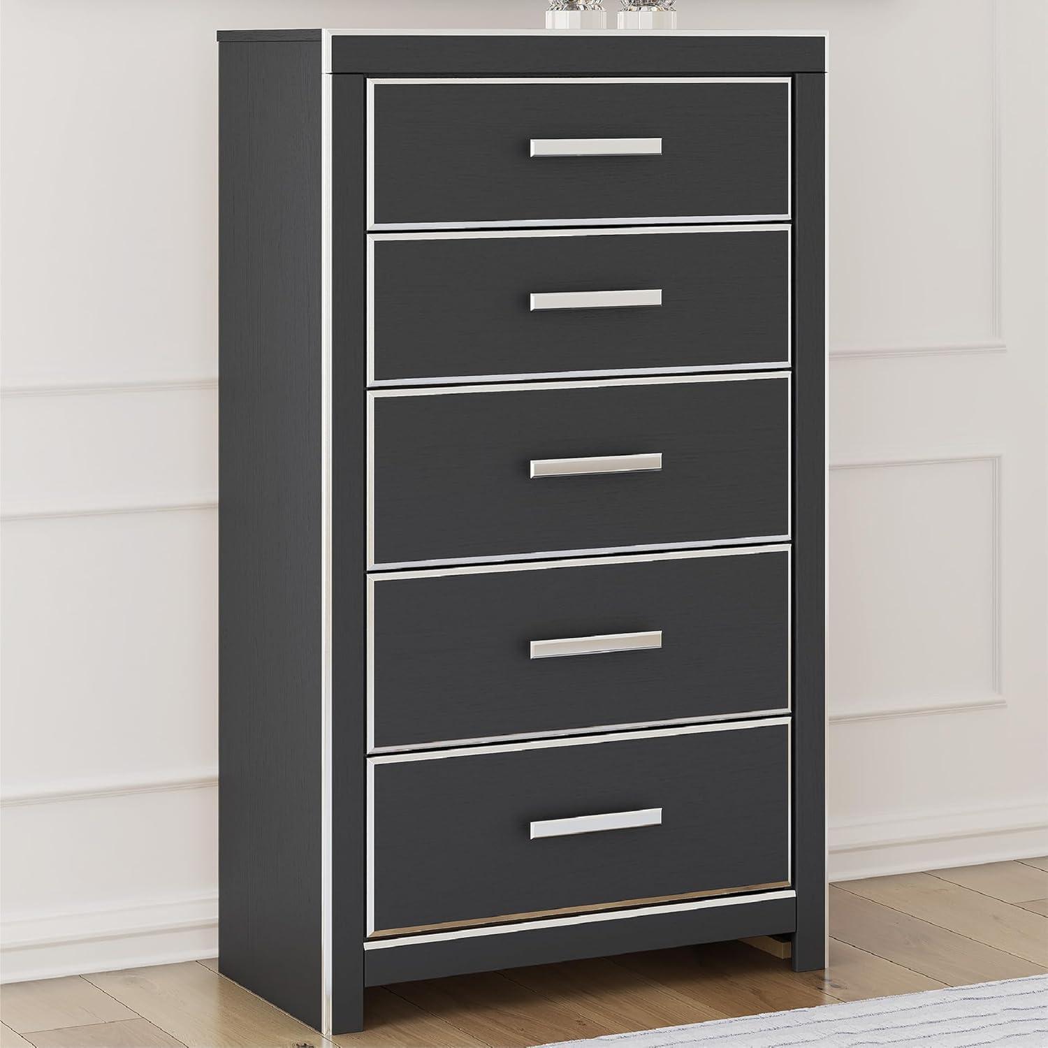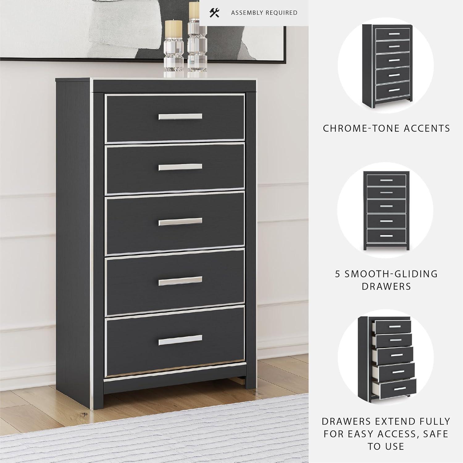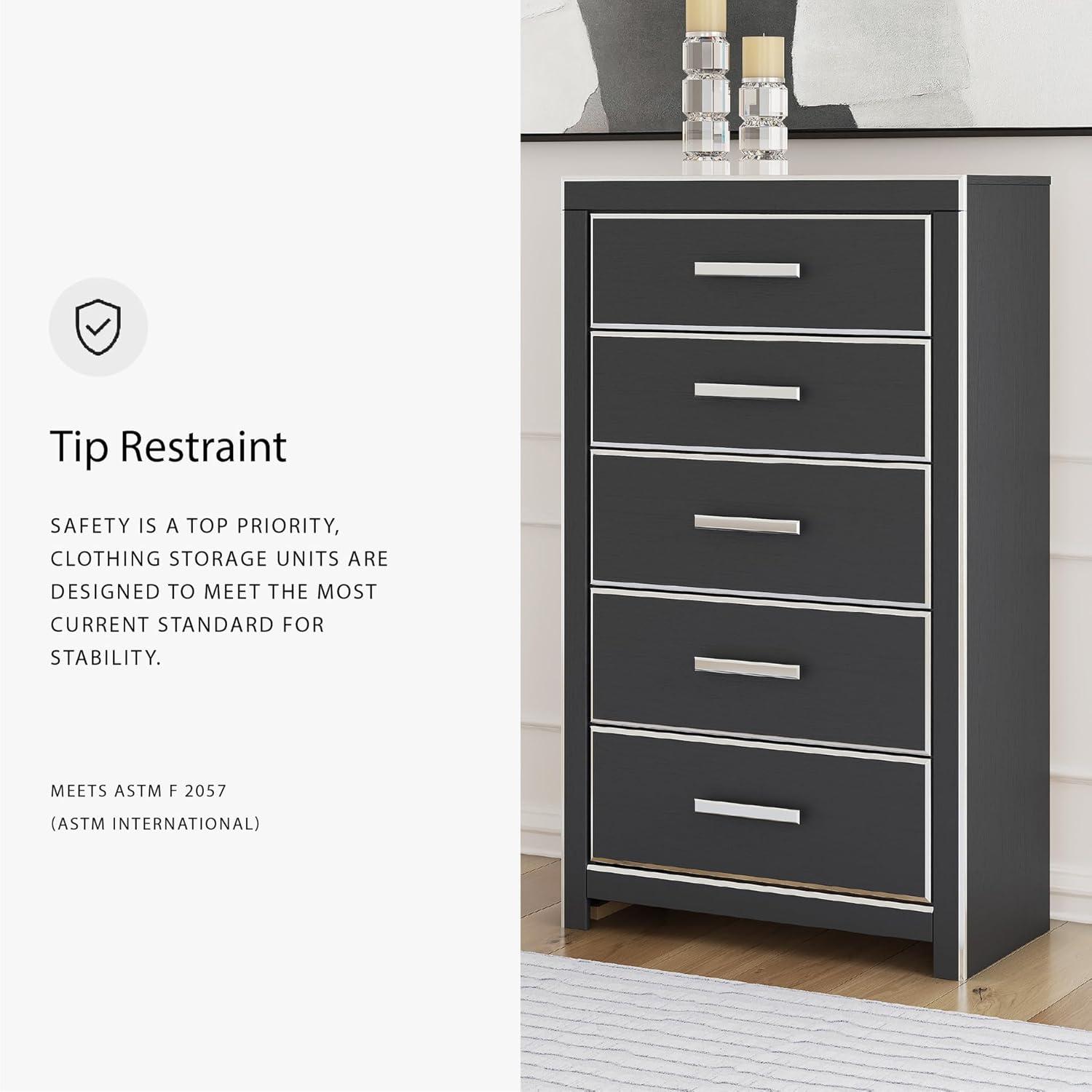 Signature Design by Ashley Ravalori Contemporary 5-Drawer Chest with Wood Finish, Black