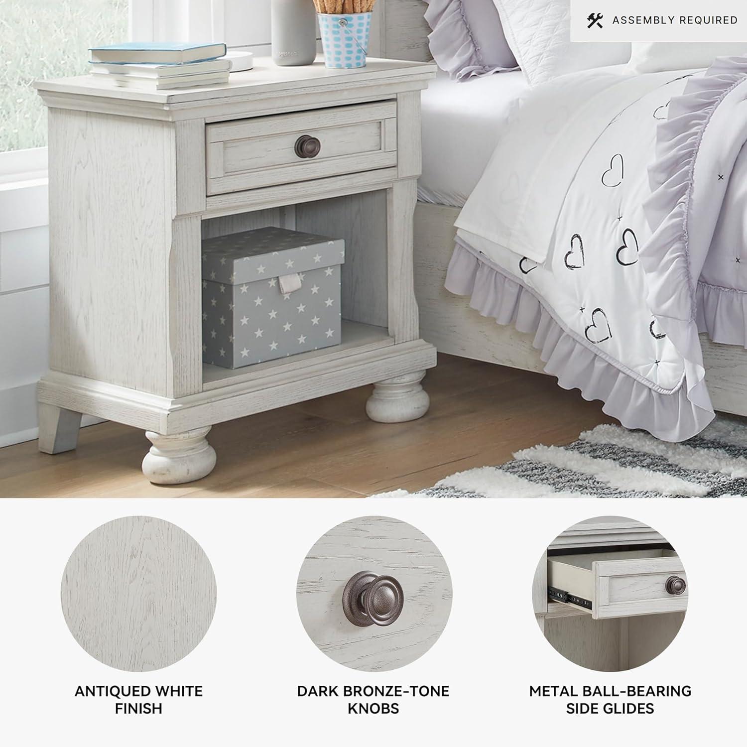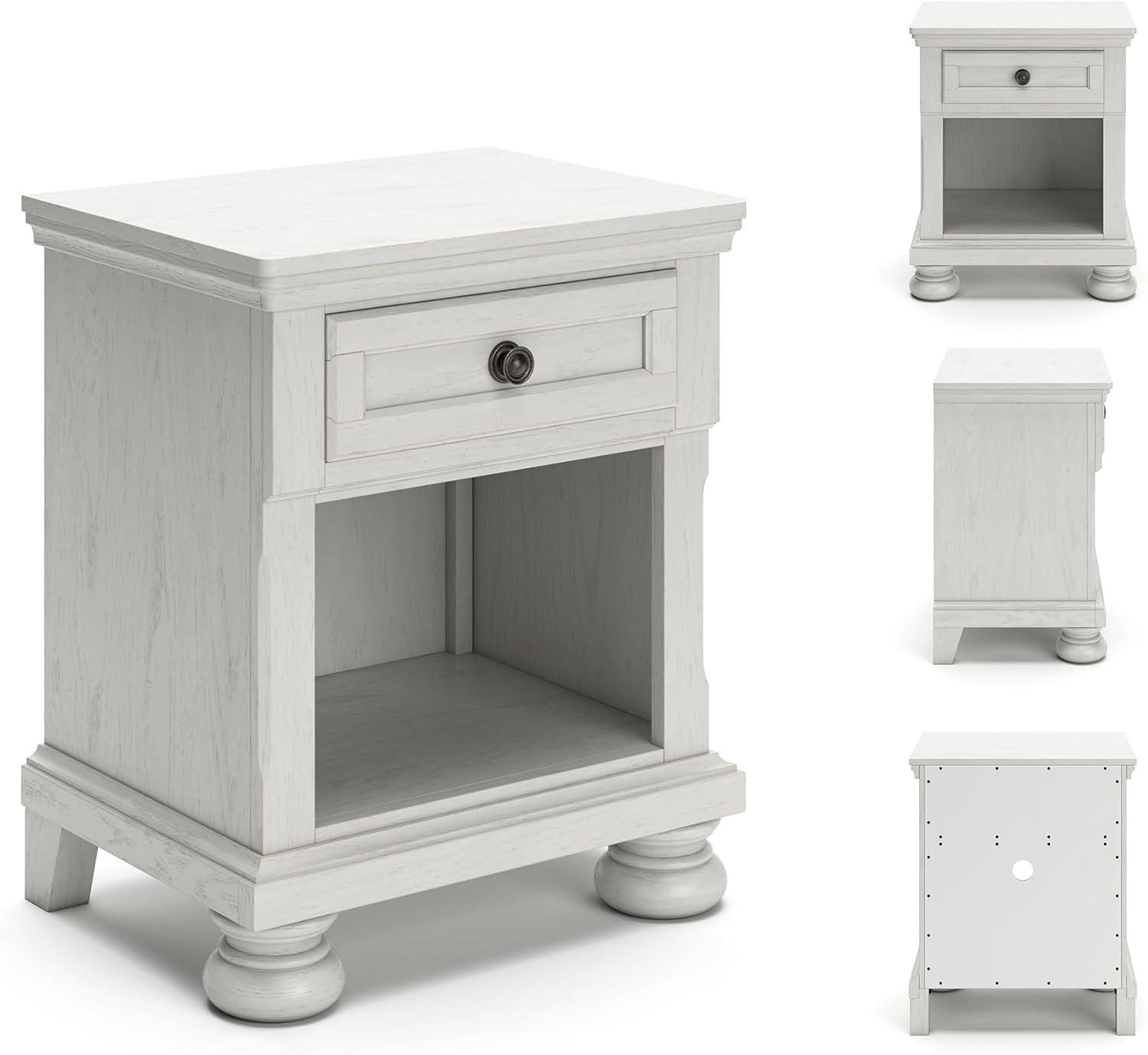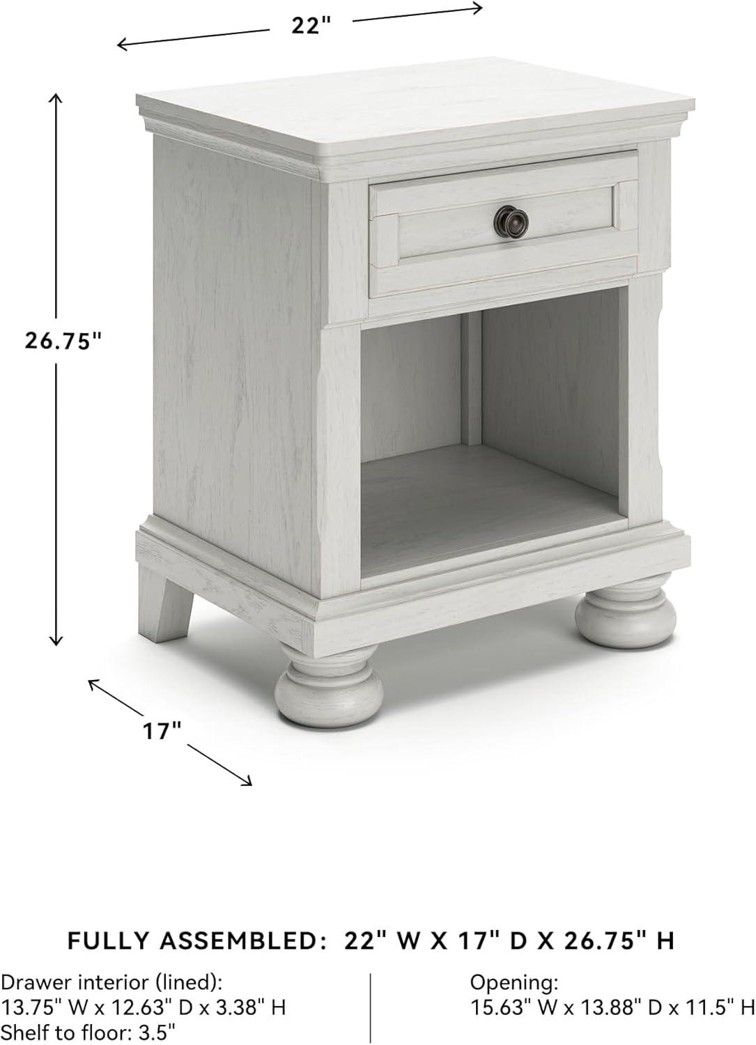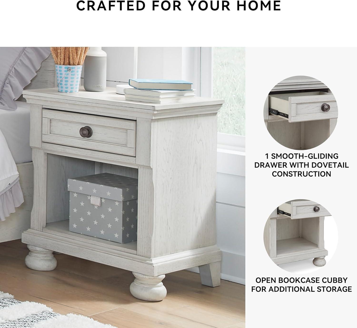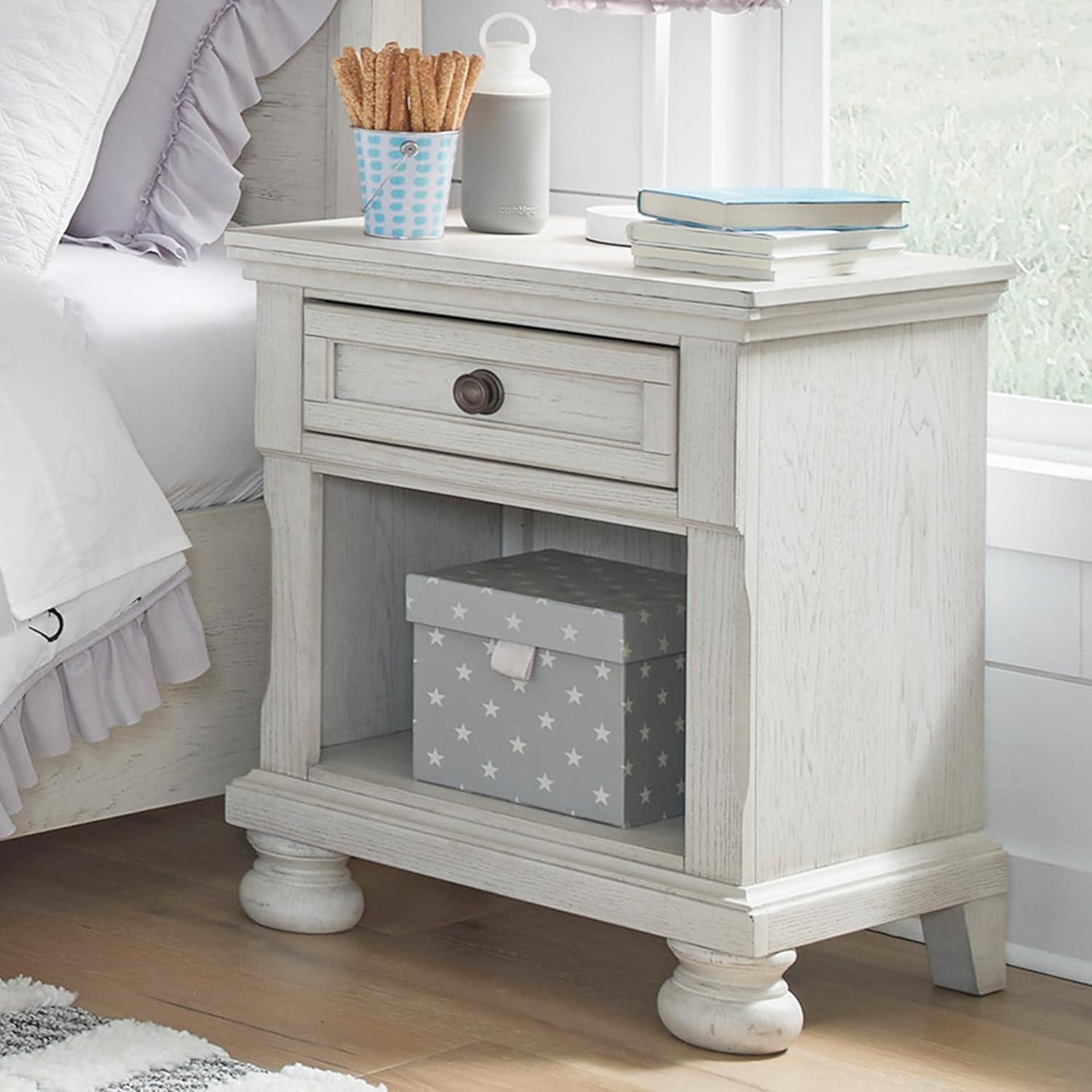 Signature Design by Ashley Robbinsdale Coastal 1-Drawer Nightstand with Cubby Storage, 26.75″ Tall, White(White)