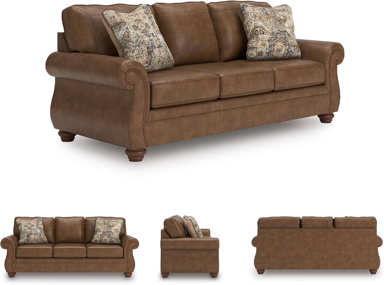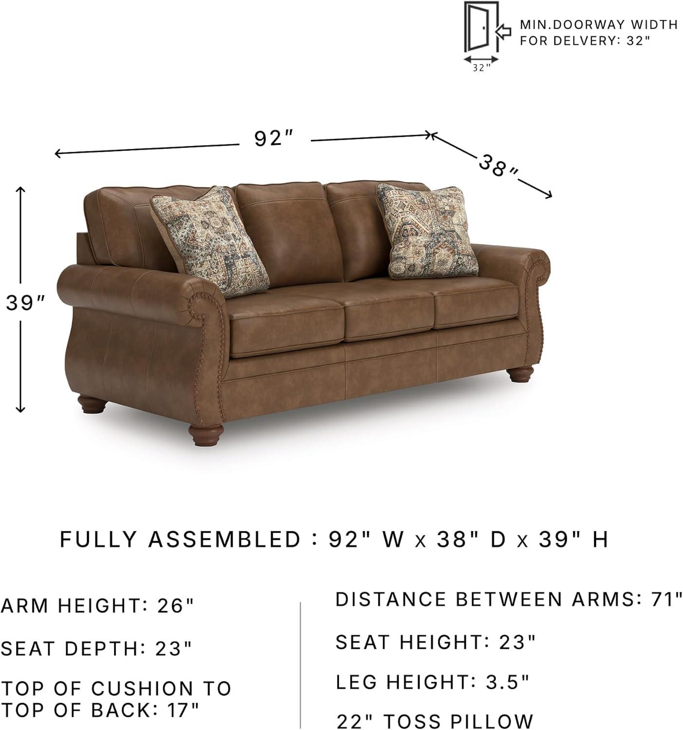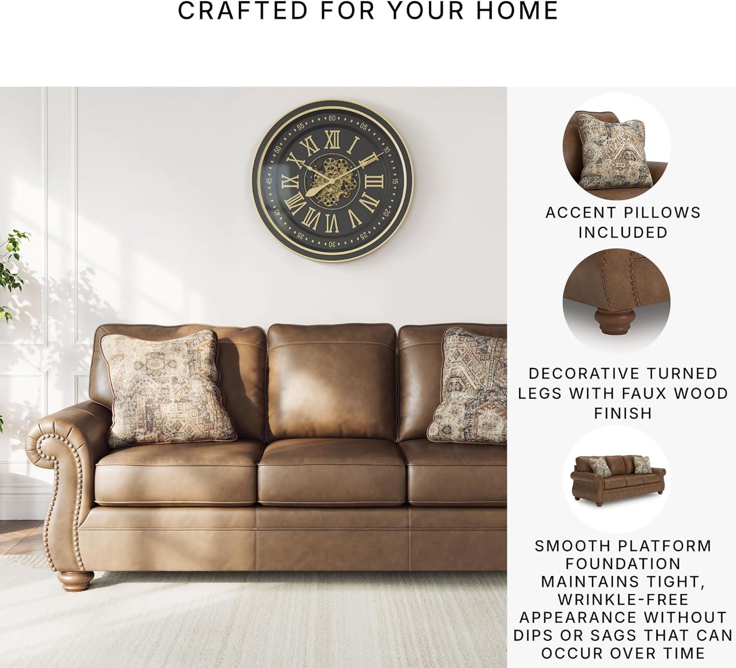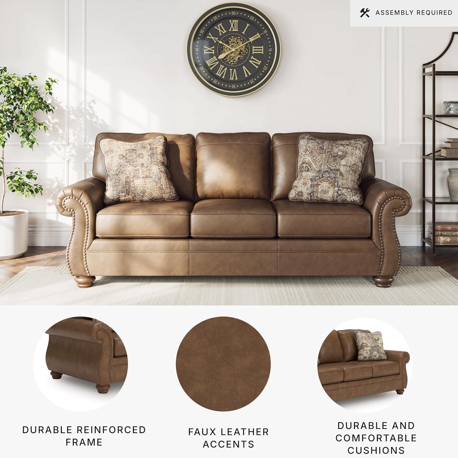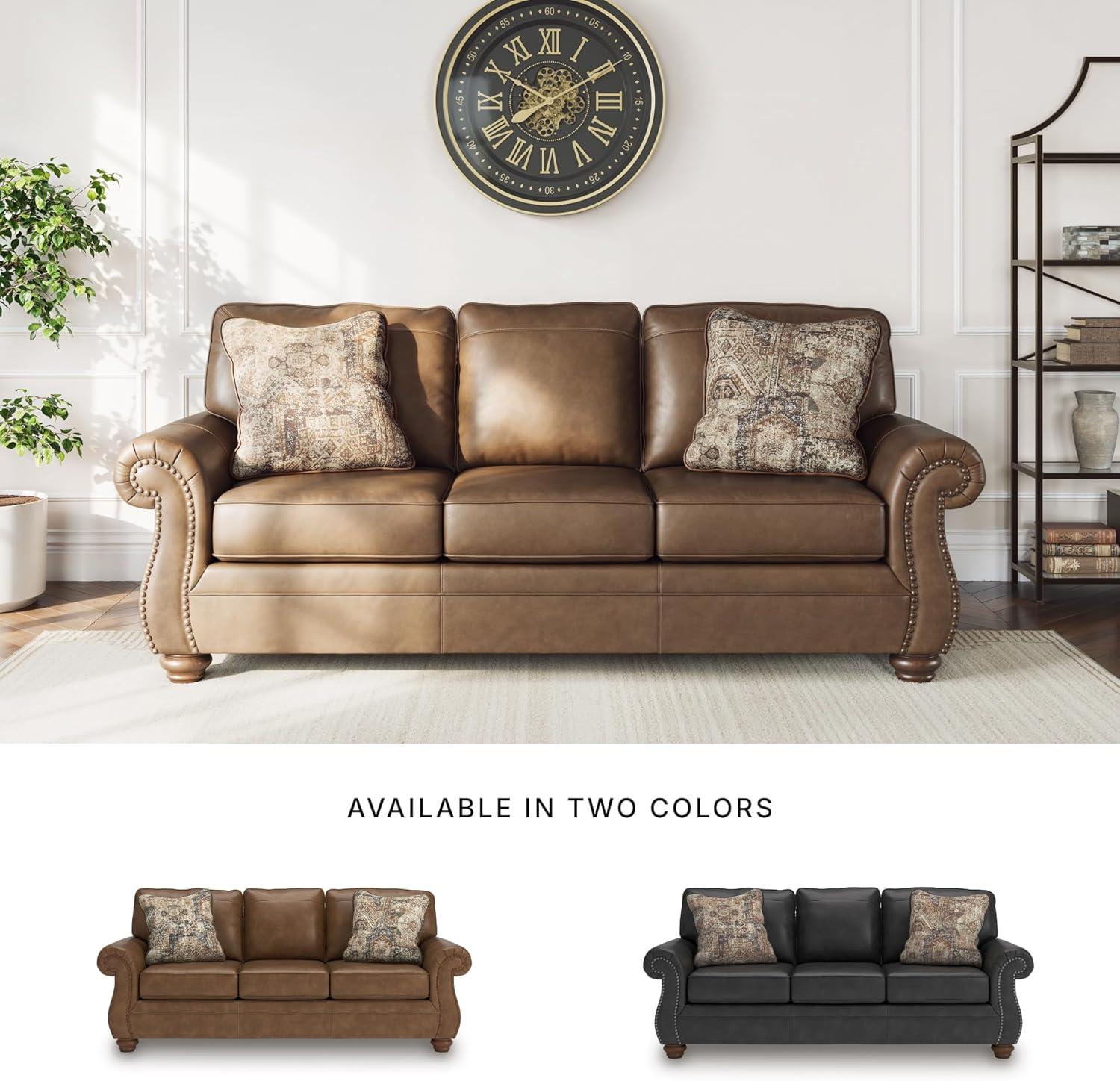 Signature Design by Ashley Shadsburne Rustic Faux Leather Sofa with Nailhead Trim and 2 Chenille Throw Pillows, Pillows with Soft Polyfill, Reinforced Frame for Added Stability, Black(Brown)