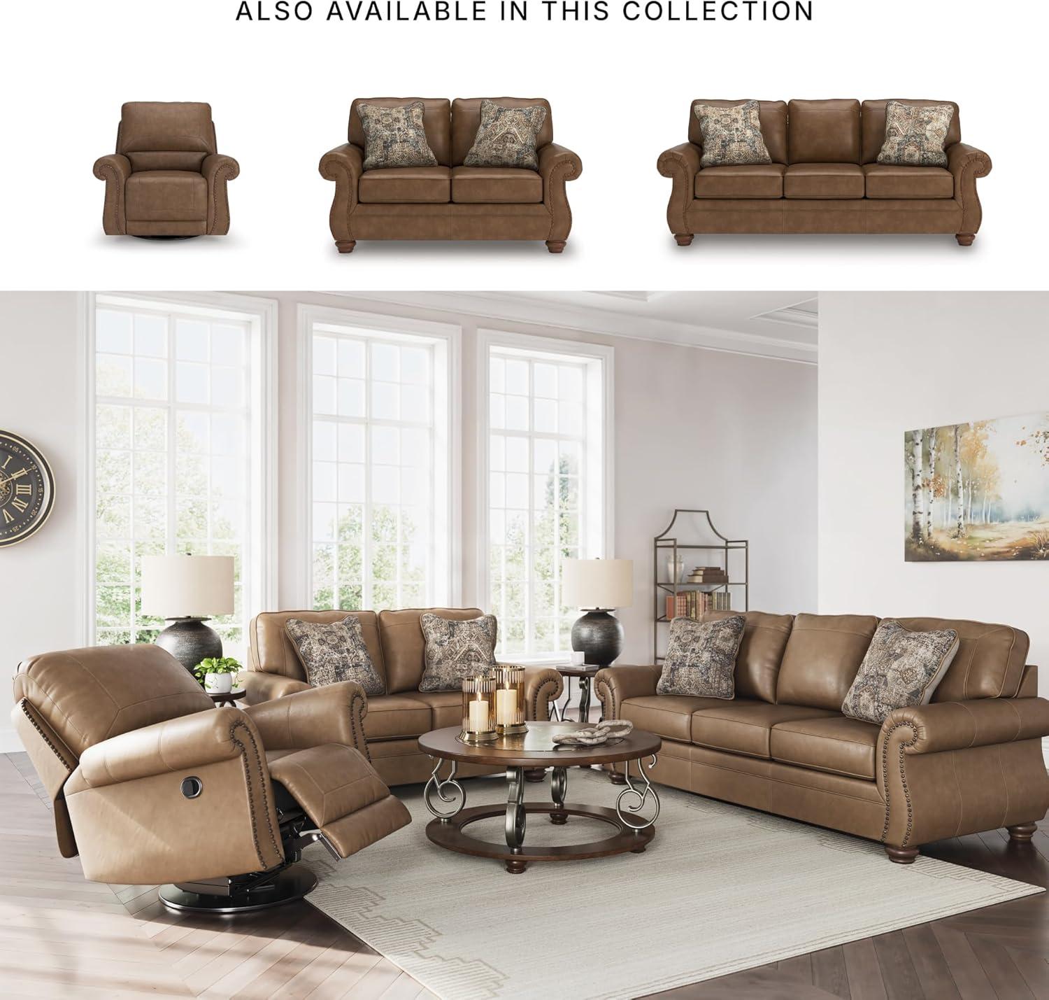 LEATHER SOFA: Everyone can have the best seat in the house with this couch. Its nailhead trim puts the finishing touches on the traditional roll arms you love. Comfy, durable cushions are wrapped in a rustic yet sophisticated faux leather
